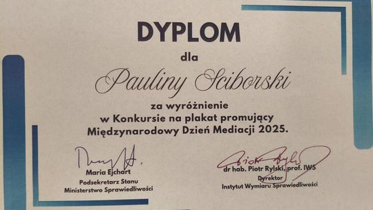 Jednym z najważniejszych elementów obchodów był udział szkoły w ogólnopolskim konkursie plastycznym na plakat promujący Międzynarodowy Dzień Mediacji 2025. Spośród 800 zgłoszonych prac komisja konkursowa wyłoniła 12 laureatów oraz 10 wyróżnień. W gronie wyróżnionych znalazła się uczennica PSP w Łanach - Paulina Ściborski, której plakat został doceniony za pomysłowość, estetykę i trafne ujęcie tematu.