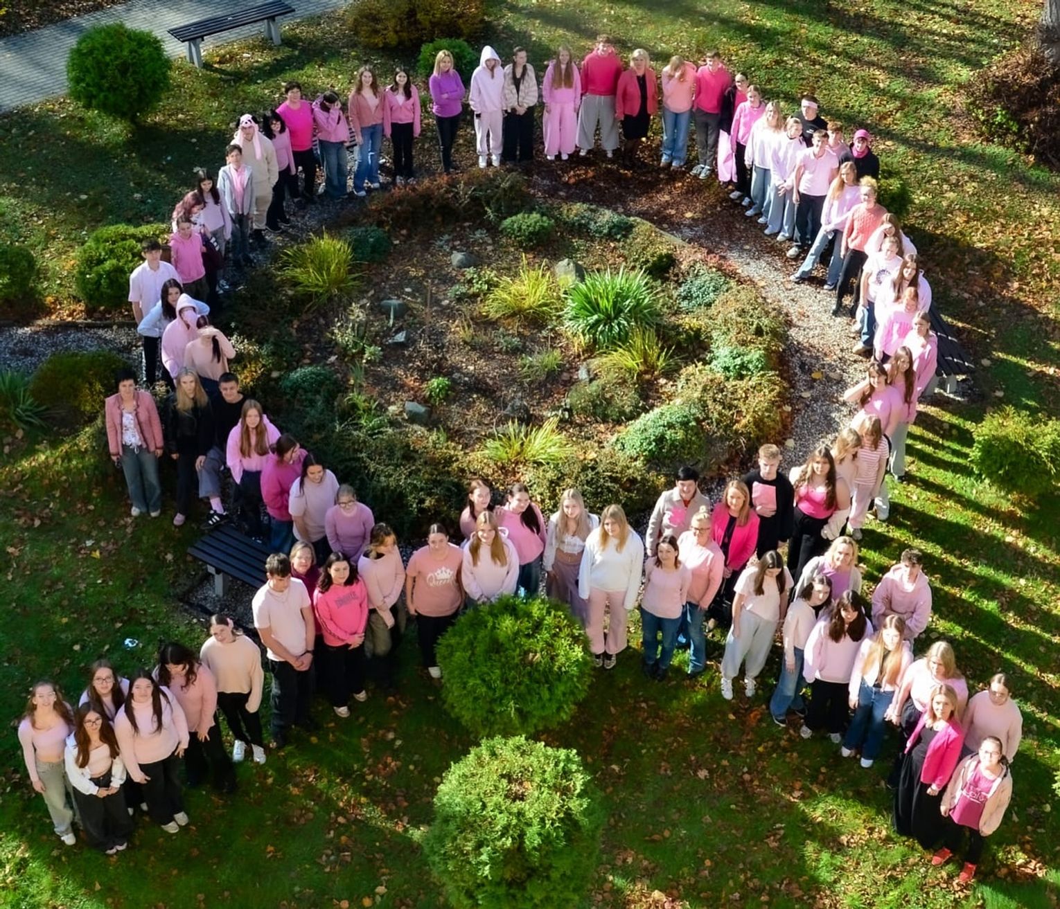 Kulminacyjnym momentem wydarzenia było wspólne zdjęcie całej społeczności szkolnej, która utworzyła symboliczną różową wstążeczkę - znak solidarności, wsparcia i troski o zdrowie. Akcja przebiegła w radosnej atmosferze, łącząc profilaktykę z integracją społeczności szkolnej. Uczelnia podziękowała wszystkim uczestnikom za udział, pozytywną energię i wspólne tworzenie dobra!