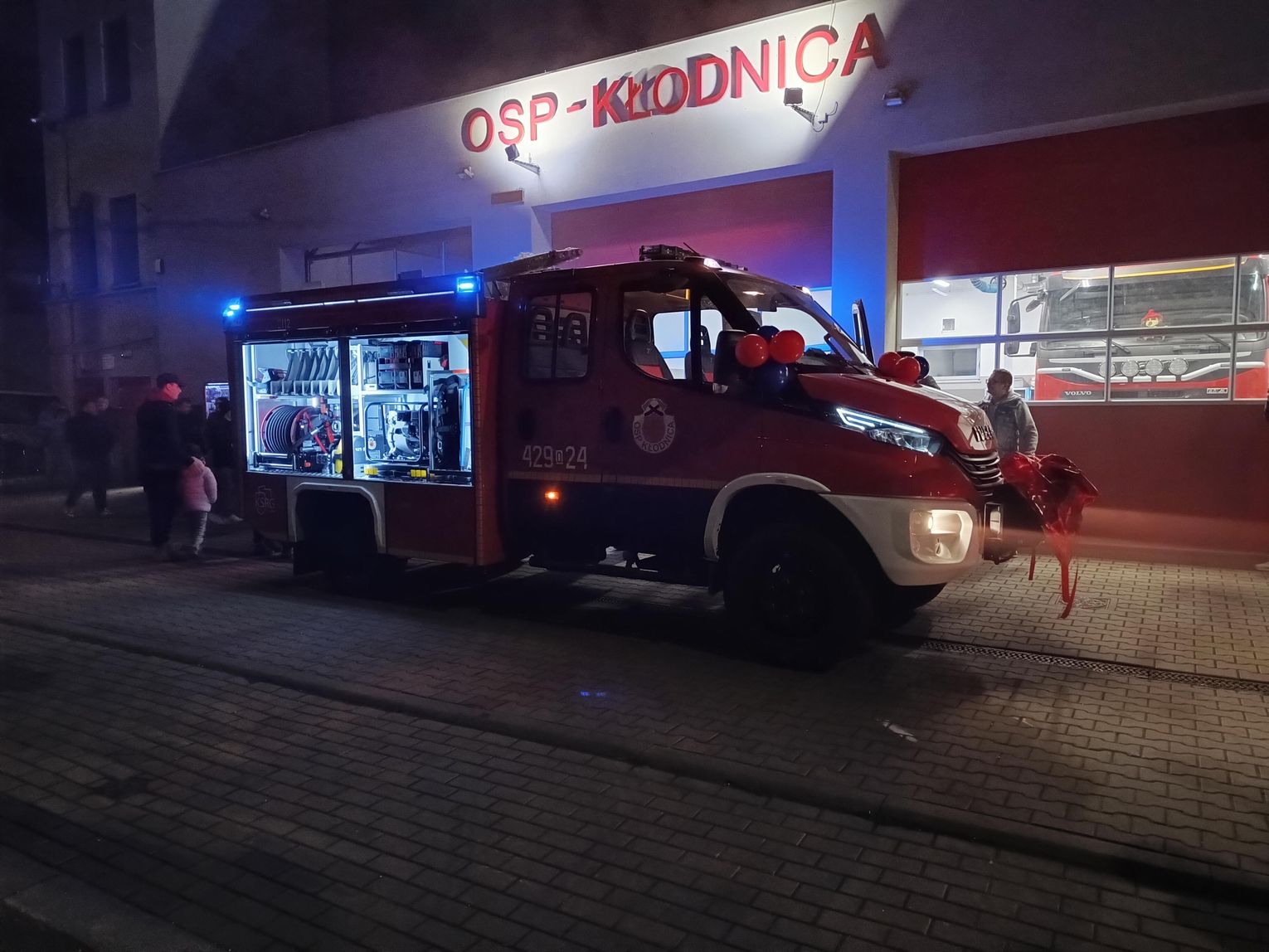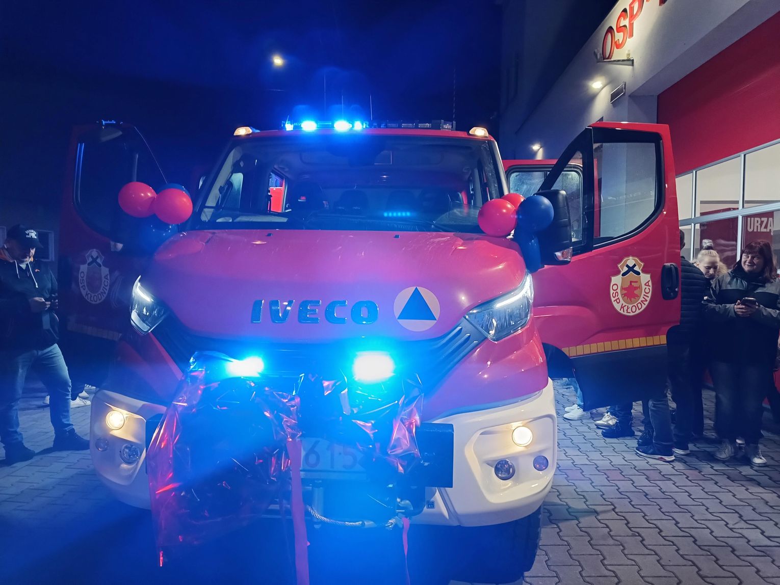 Nowy lekki samochód ratowniczo-gaśniczy na podwoziu Iveco Daily z napędem na wszystkie koła, zabudowany przez firmę Moto Truck z Kielc, dotarł do remisy w Kłodnicy 30 października wieczorem. Czekali na niego druhowie z miejscowego OSP i okoliczni mieszkańcy.