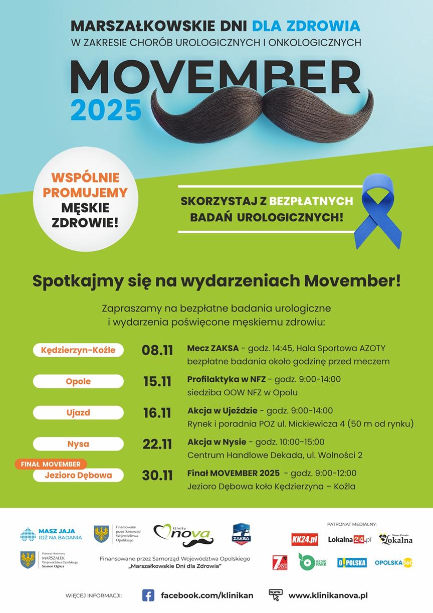 Cykliczna akcja Movember – od angielskich słów moustache (wąsy) i november (listopad) – i polega na zapuszczeniu wąsów w listopadzie. To znak solidarności z chorującymi na męskie nowotwory, a także propagowania konieczności regularnych badań w kierunku raka prostaty, nowotworów jąder oraz raka pęcherza moczowego. Ten ostatni jest najczęstszą chorobą nowotworową dróg moczowych. Dotyczy głównie osób starszych ( 60-70rż), 3-4 razy częściej u mężczyzn niż u kobiet, a ryzyko zachorowania wzrasta z wiekiem. Nowotwory pęcherza wywodzą się najczęściej z komórek nabłonka przejściowego i mają różny potencjał złośliwości.