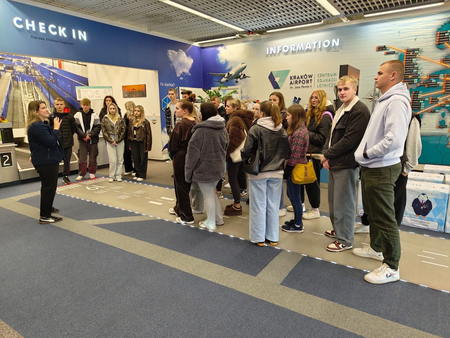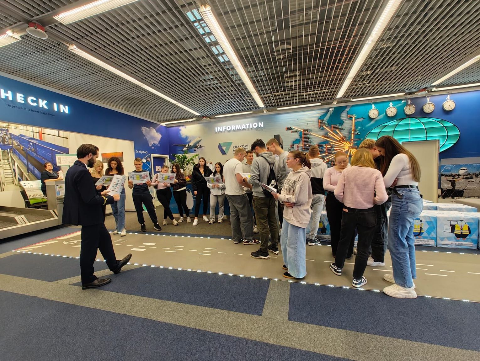 Zajęcia odbyły się 05 listopada 2025 i pozwoliły odpowiedzieć na wiele pytań dotyczących funkcjonowania cargo i obsługi pasażerów. Miejscem zajęć był Międzynarodowy Port Lotniczy im. Jana Pawła II w Krakowie-Balicach. Grupa z ZS nr 1 odwiedziła też tamtejsze Centrum Edukacji Lotniczej.