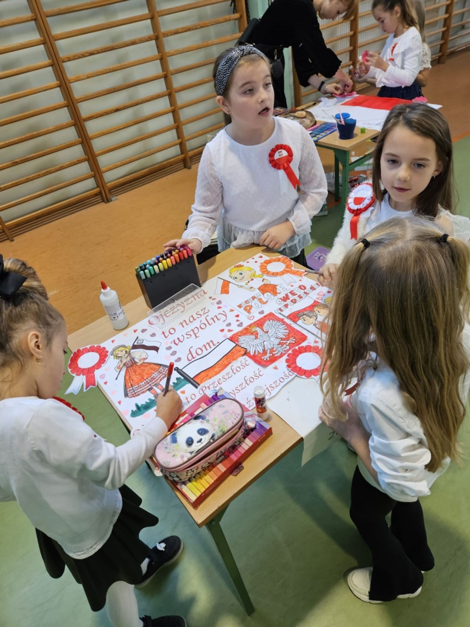 W części plastycznej powstały prace pełne symboliki narodowej, które ozdobiły szkolne korytarze i wprowadziły atmosferę refleksji. Muzyczne prezentacje zaskoczyły różnorodnością - od pieśni patriotycznych po aranżacje instrumentalne na flażolety, saksofony czy ukulele. W części historycznej uczniowie wykazali się imponującą znajomością faktów i kontekstu odzyskania niepodległości, a sportowe konkurencje - rozgrywane w biało-czerwonych barwach - przyniosły mnóstwo emocji, śmiechu i wzajemnego wsparcia.