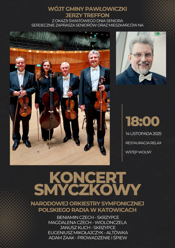 To wydarzenie dedykowane jest seniorom, ale otwarte dla wszystkich mieszkańców. Spotkanie z muzyką na żywo będzie okazją do refleksji, wzruszeń i międzypokoleniowej integracji. W otoczeniu ciepłych brzmień instrumentów smyczkowych uczestnicy będą mogli spędzić wieczór pełen harmonii i kultury.
