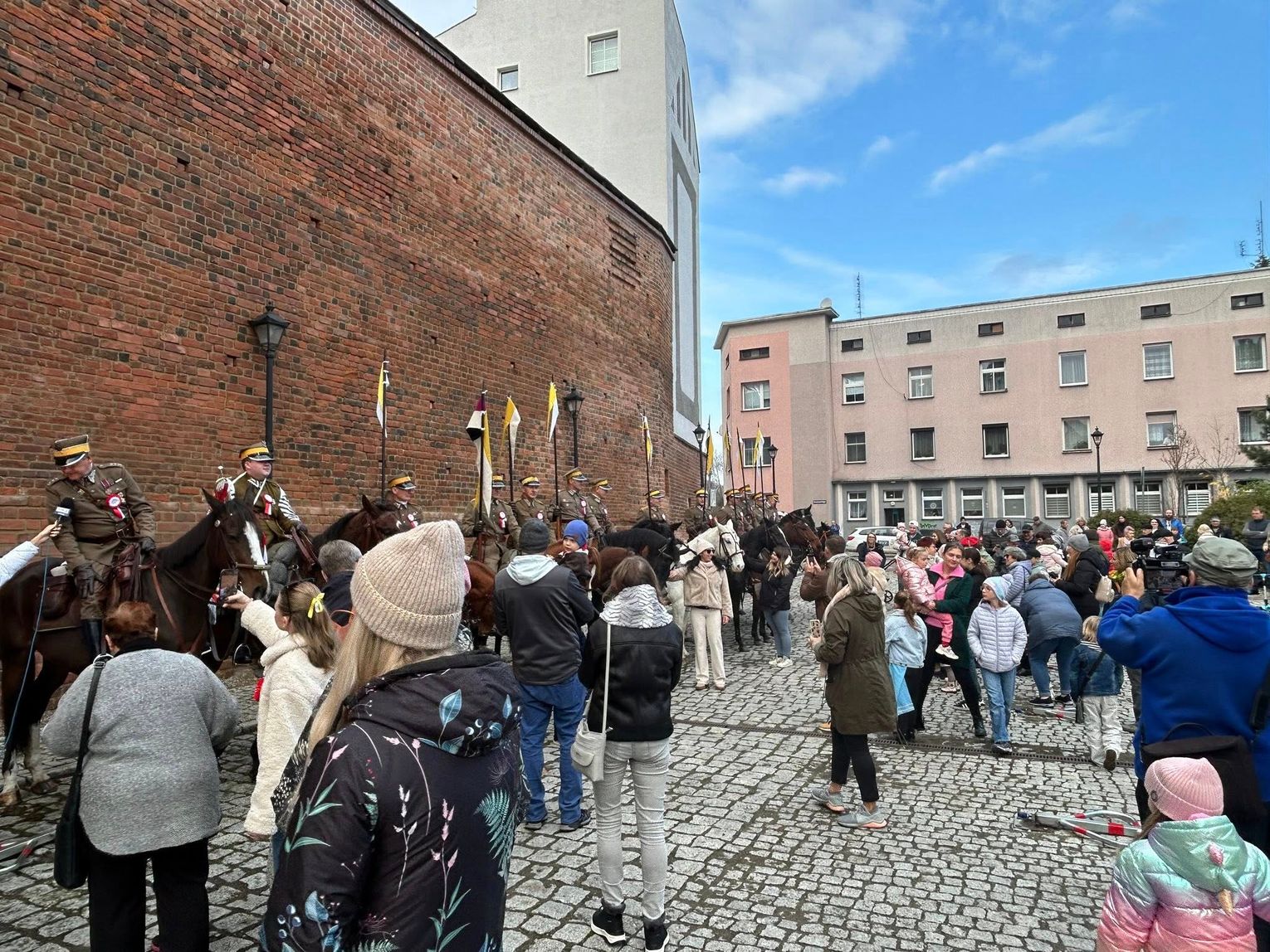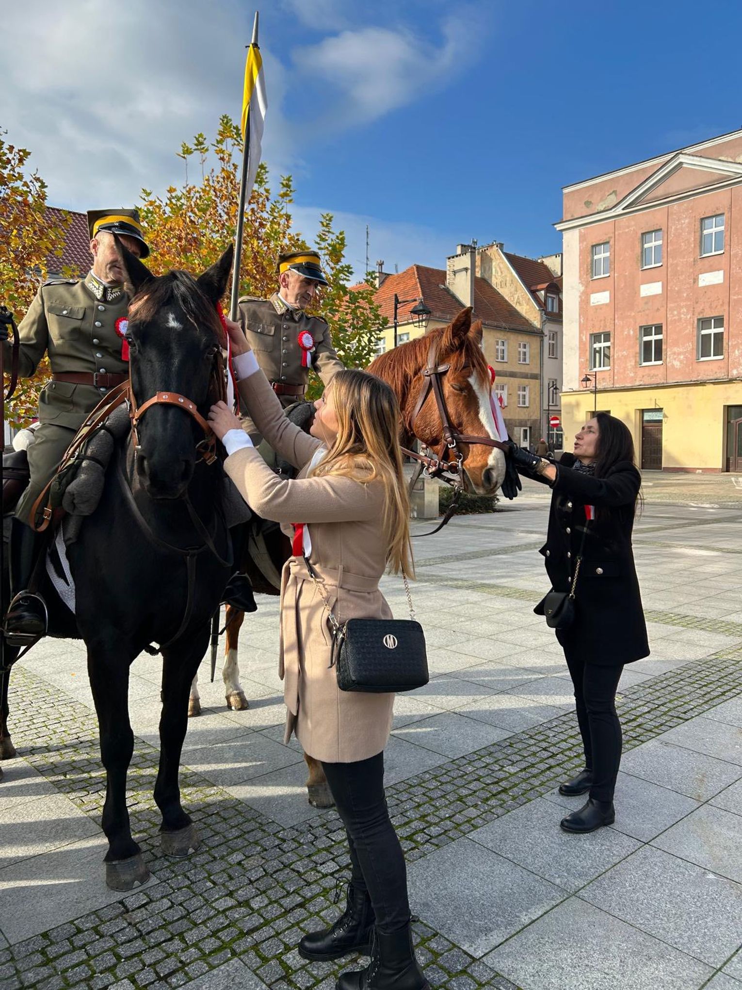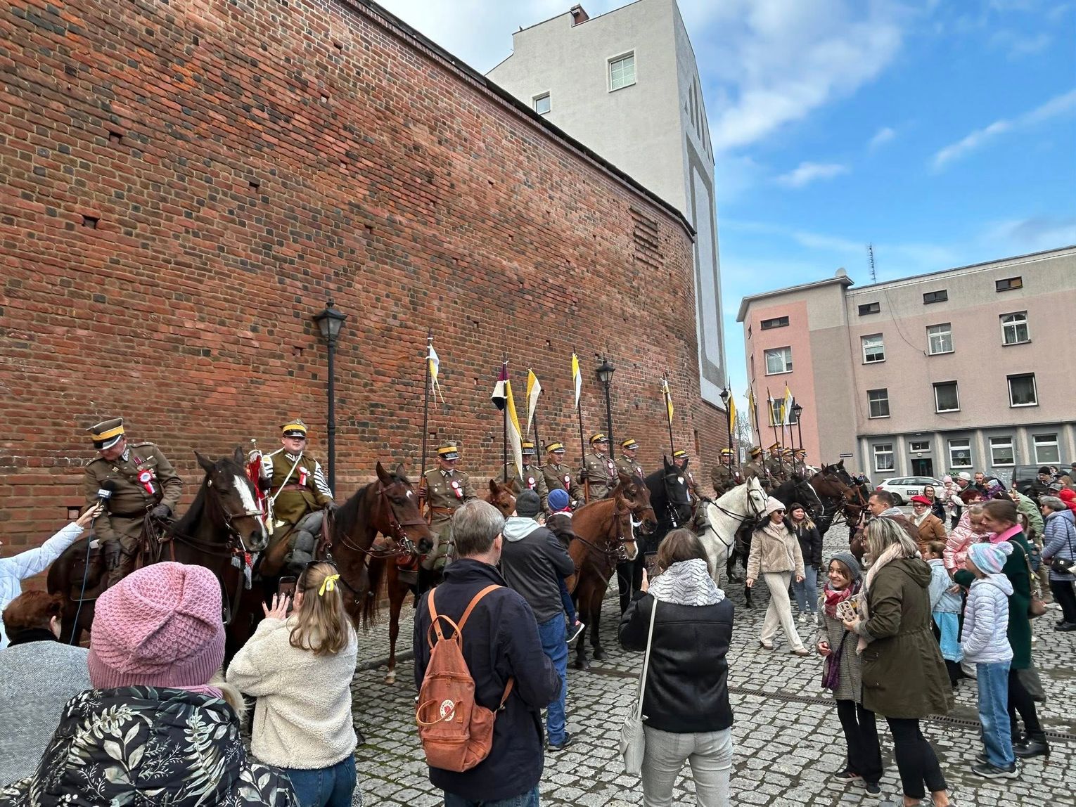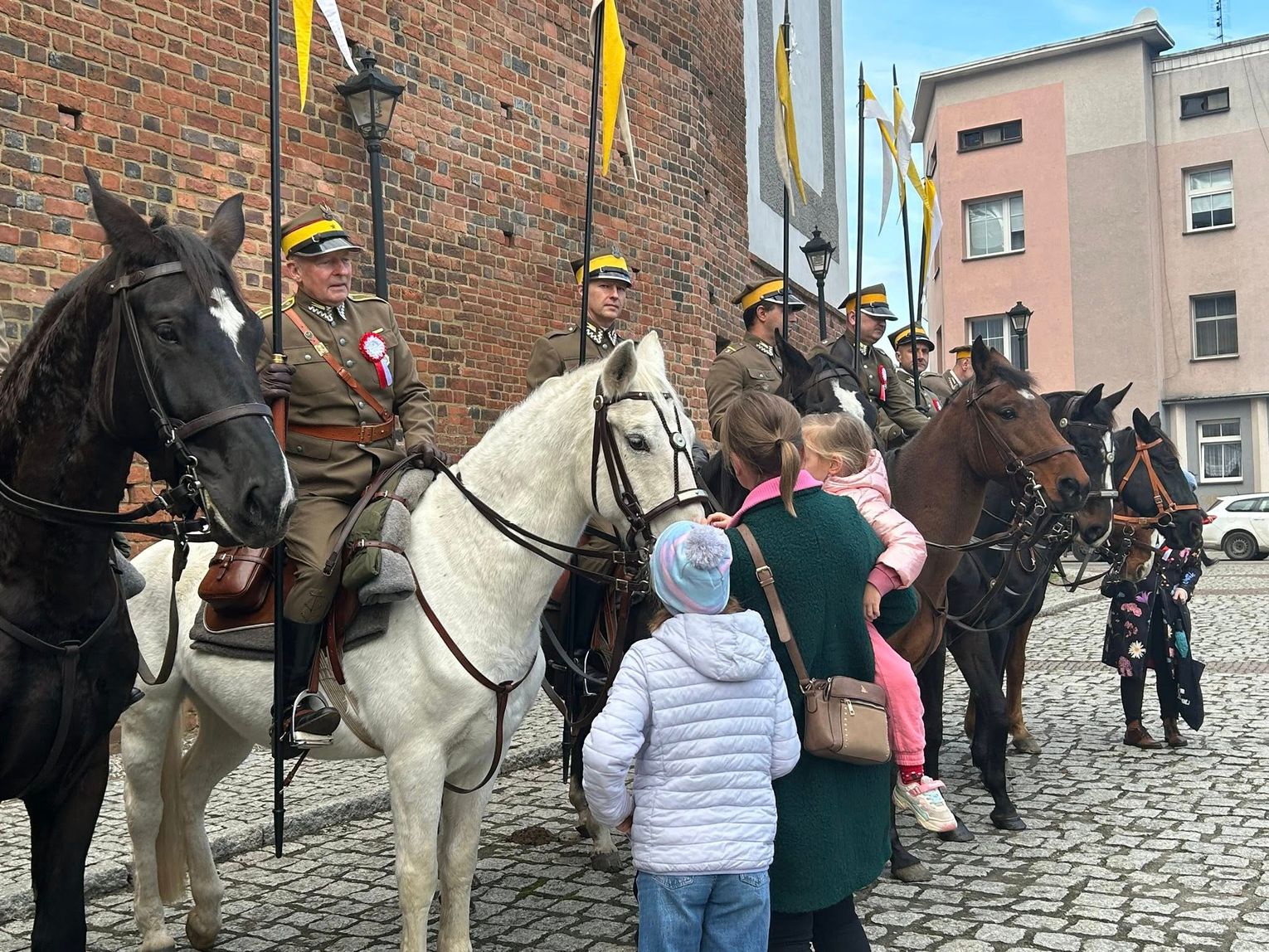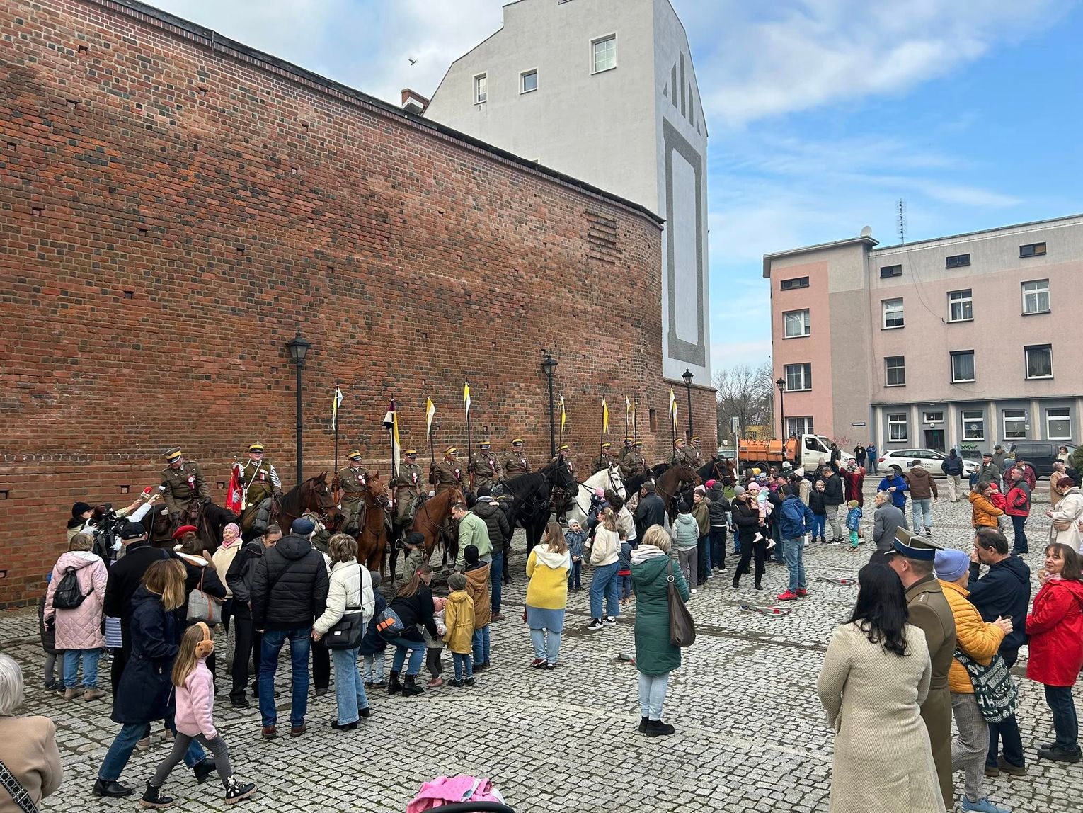 Na rynku nastąpiło symboliczne uhonorowanie ułanów i ich koni biało-czerwonymi kotylionami – gestem wdzięczności i uznania za kultywowanie polskiego dziedzictwa i patriotycznych wartości.
