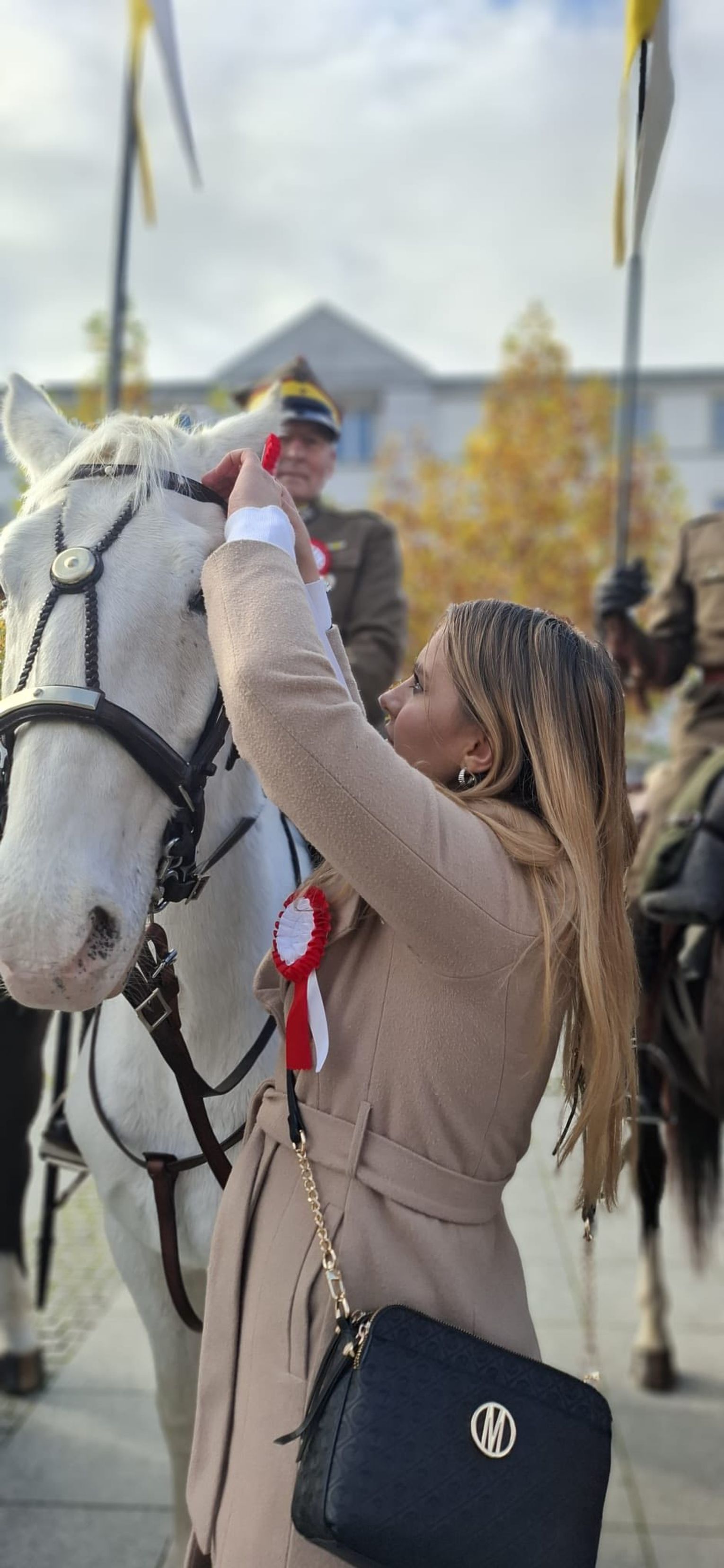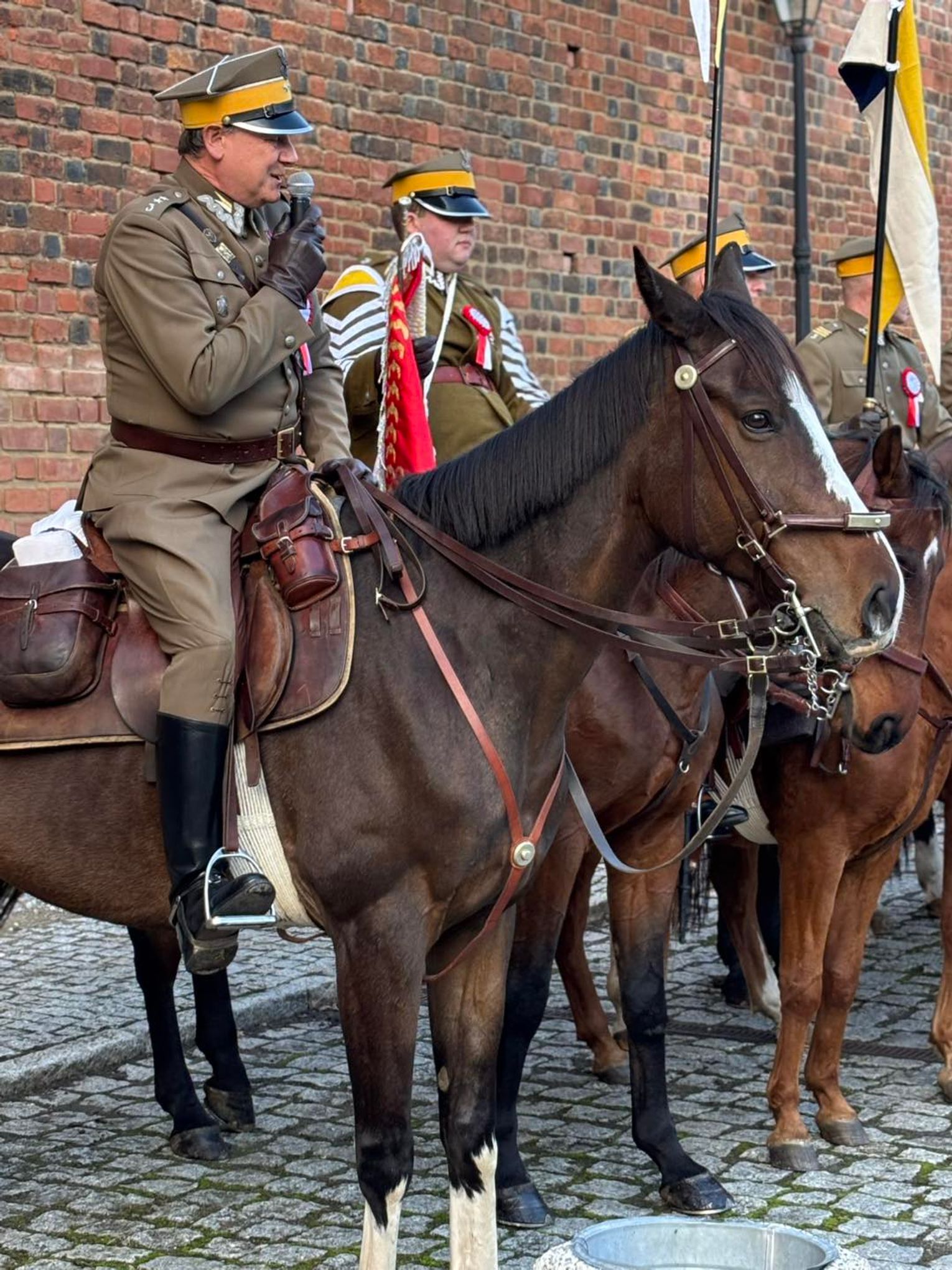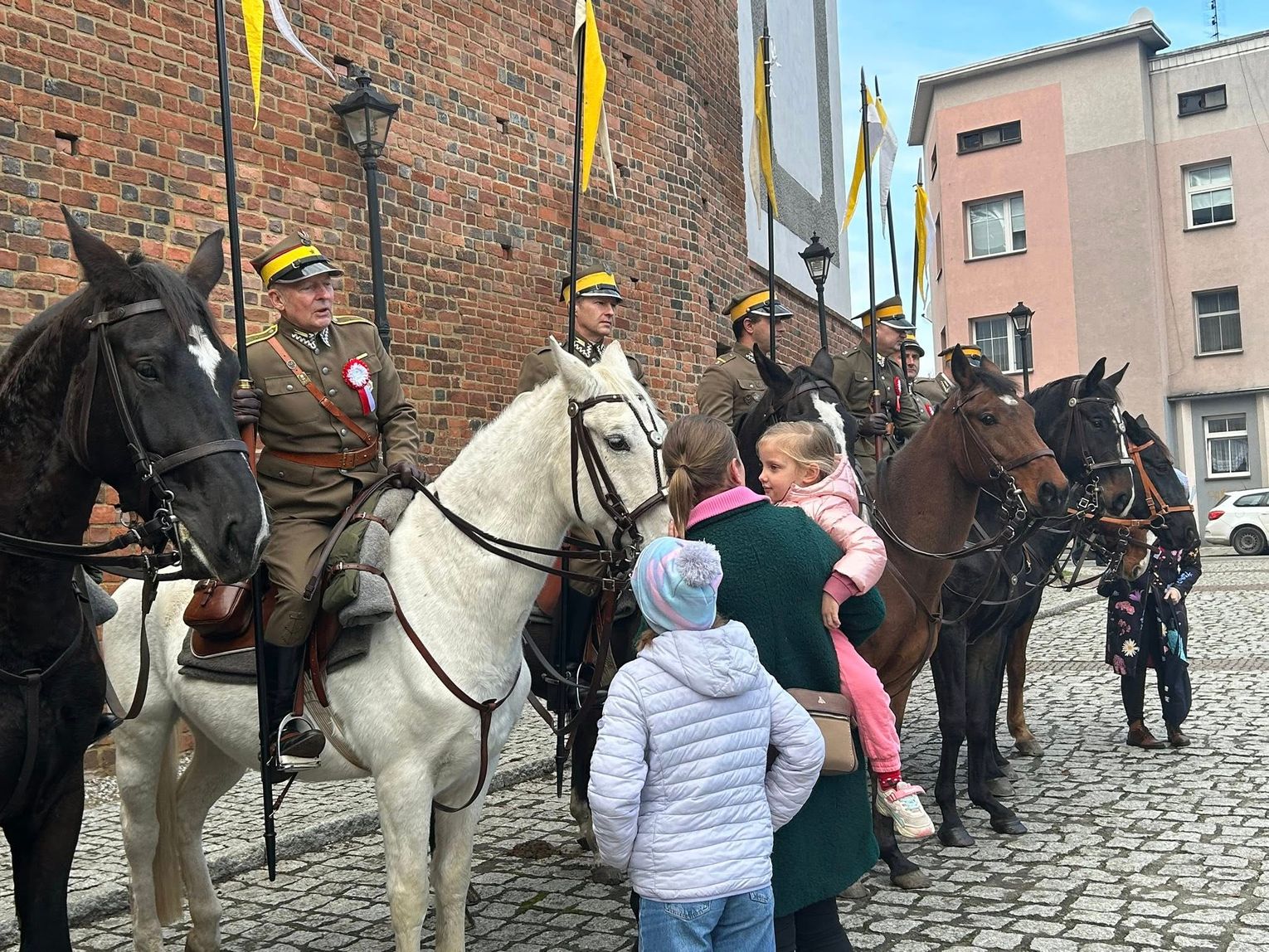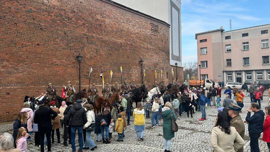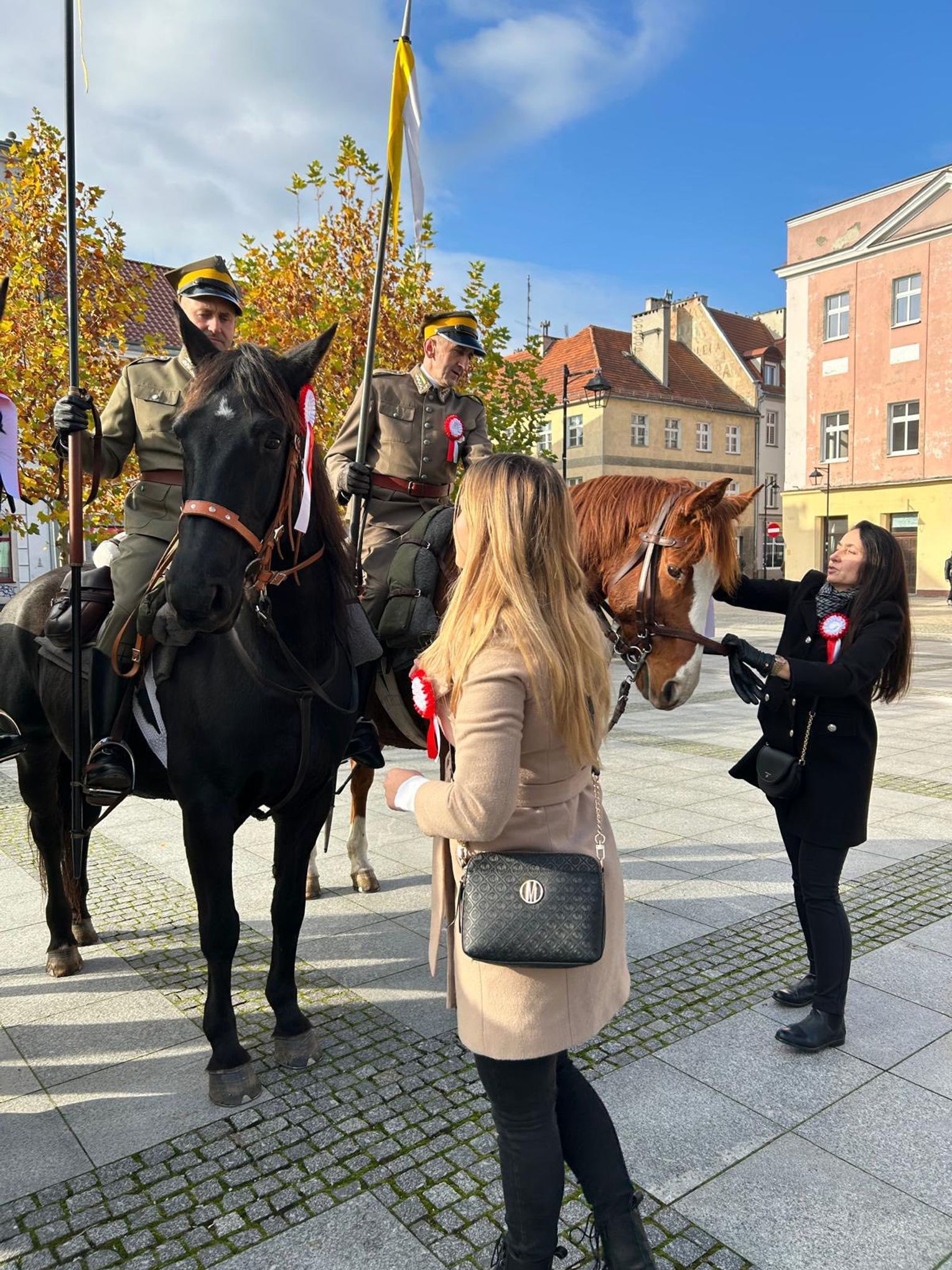 Na rynku nastąpiło symboliczne uhonorowanie ułanów i ich koni biało-czerwonymi kotylionami – gestem wdzięczności i uznania za kultywowanie polskiego dziedzictwa i patriotycznych wartości.