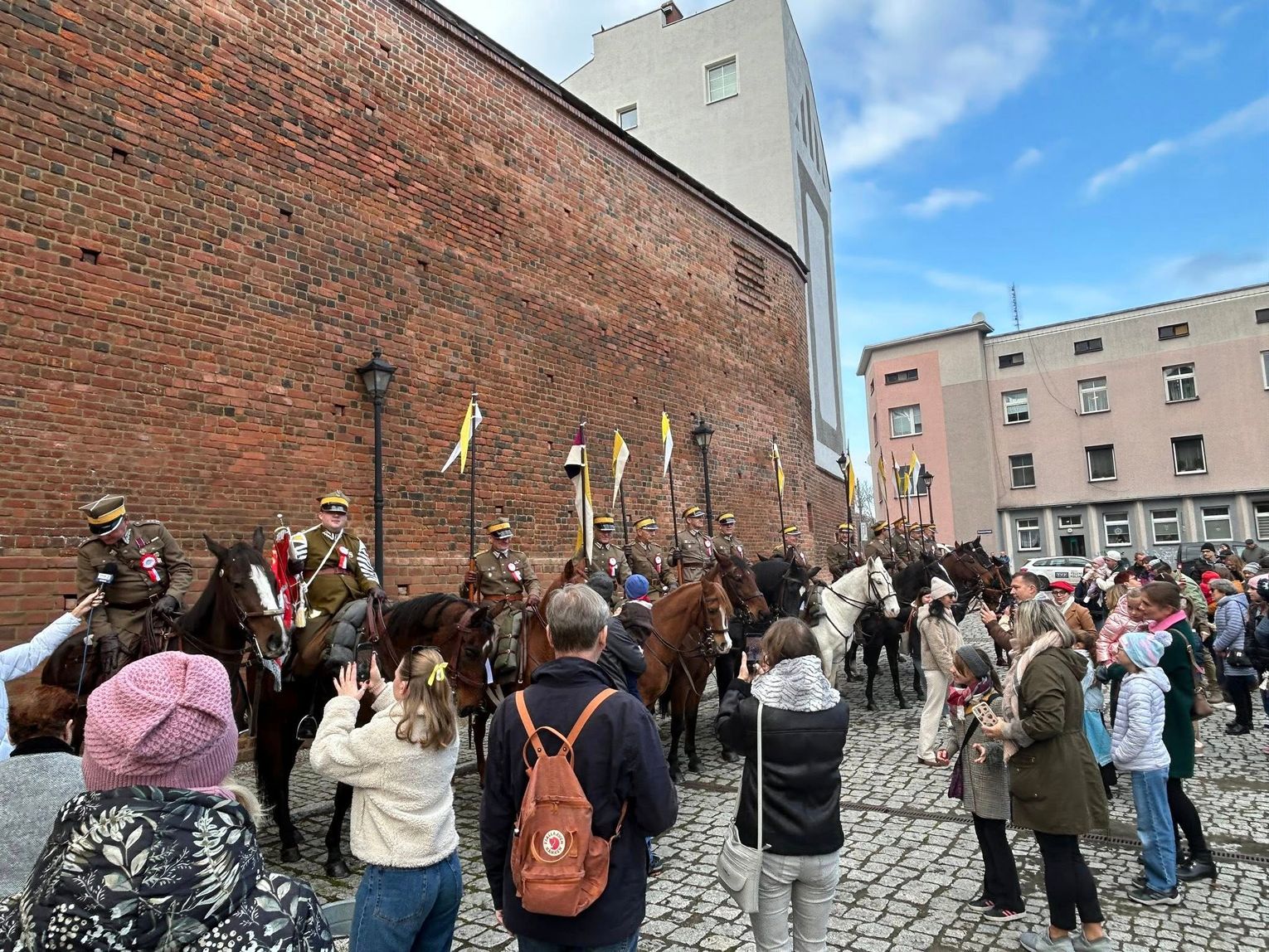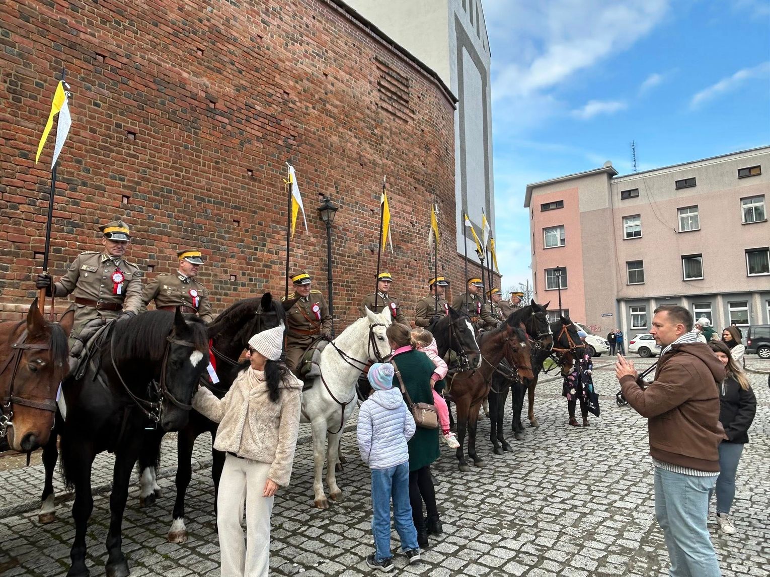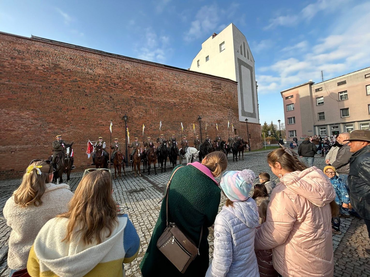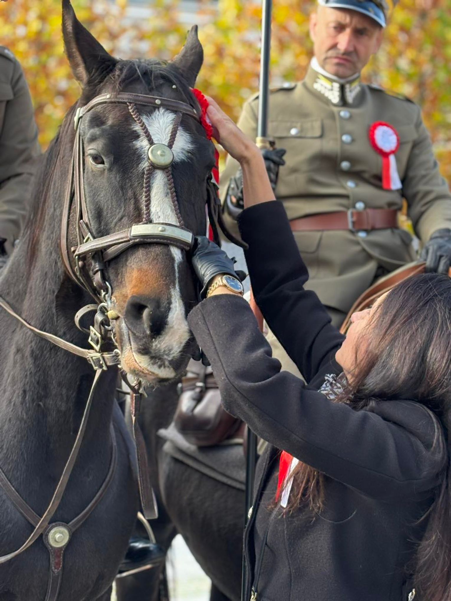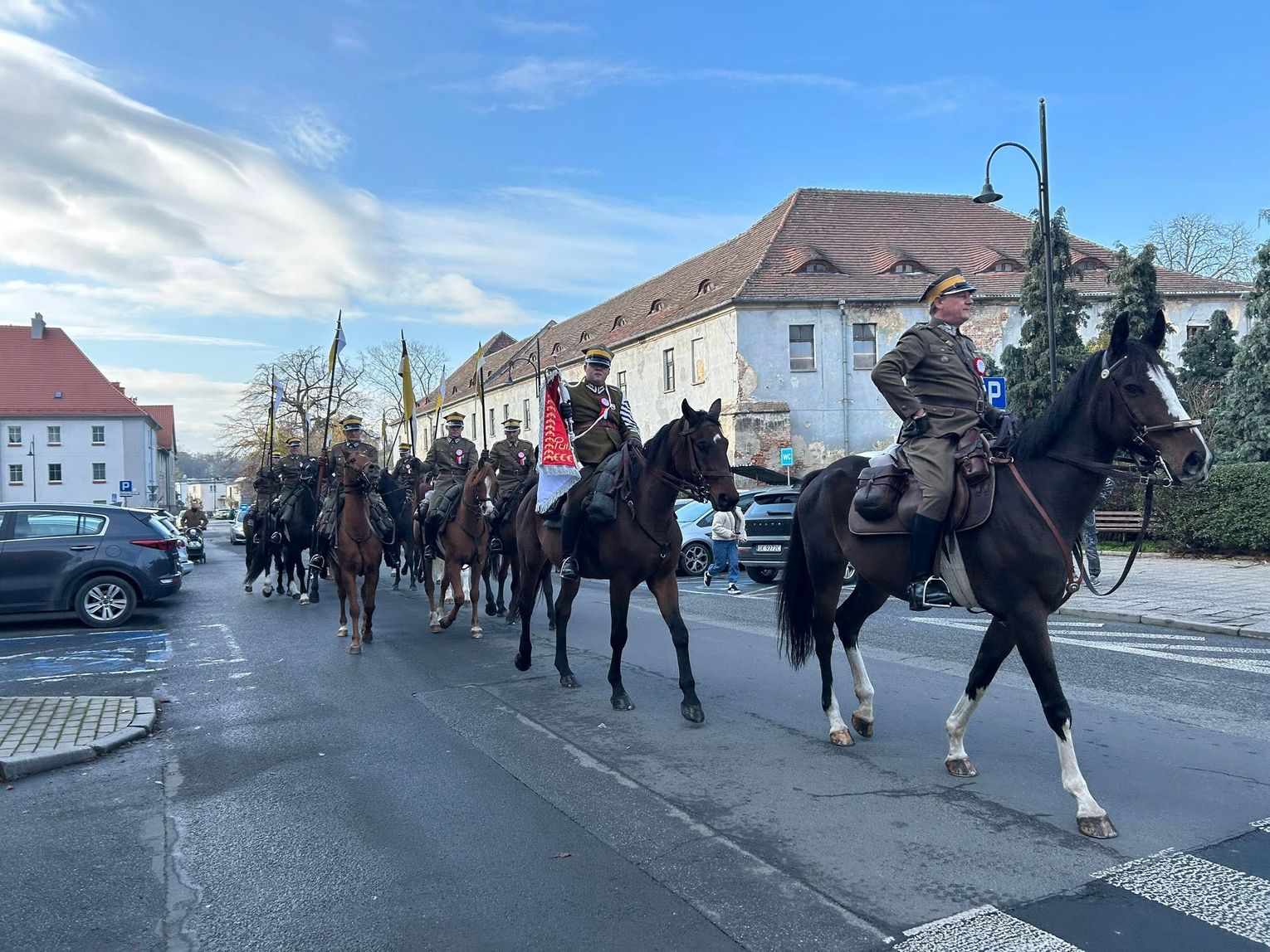Na rynku nastąpiło symboliczne uhonorowanie ułanów i ich koni biało-czerwonymi kotylionami – gestem wdzięczności i uznania za kultywowanie polskiego dziedzictwa i patriotycznych wartości.