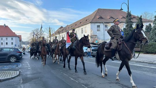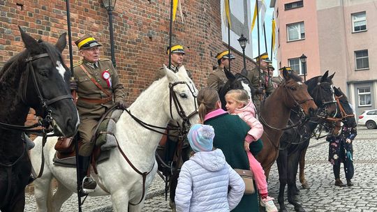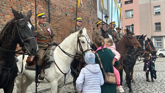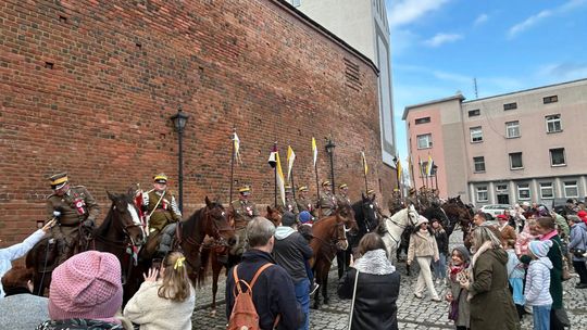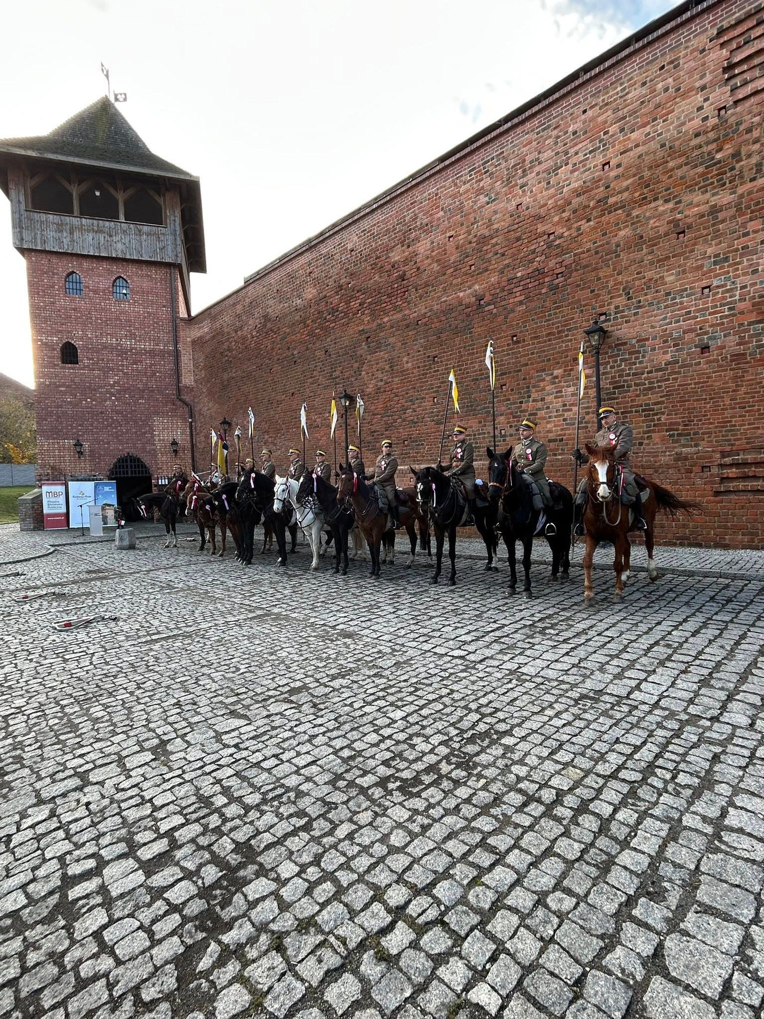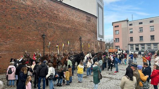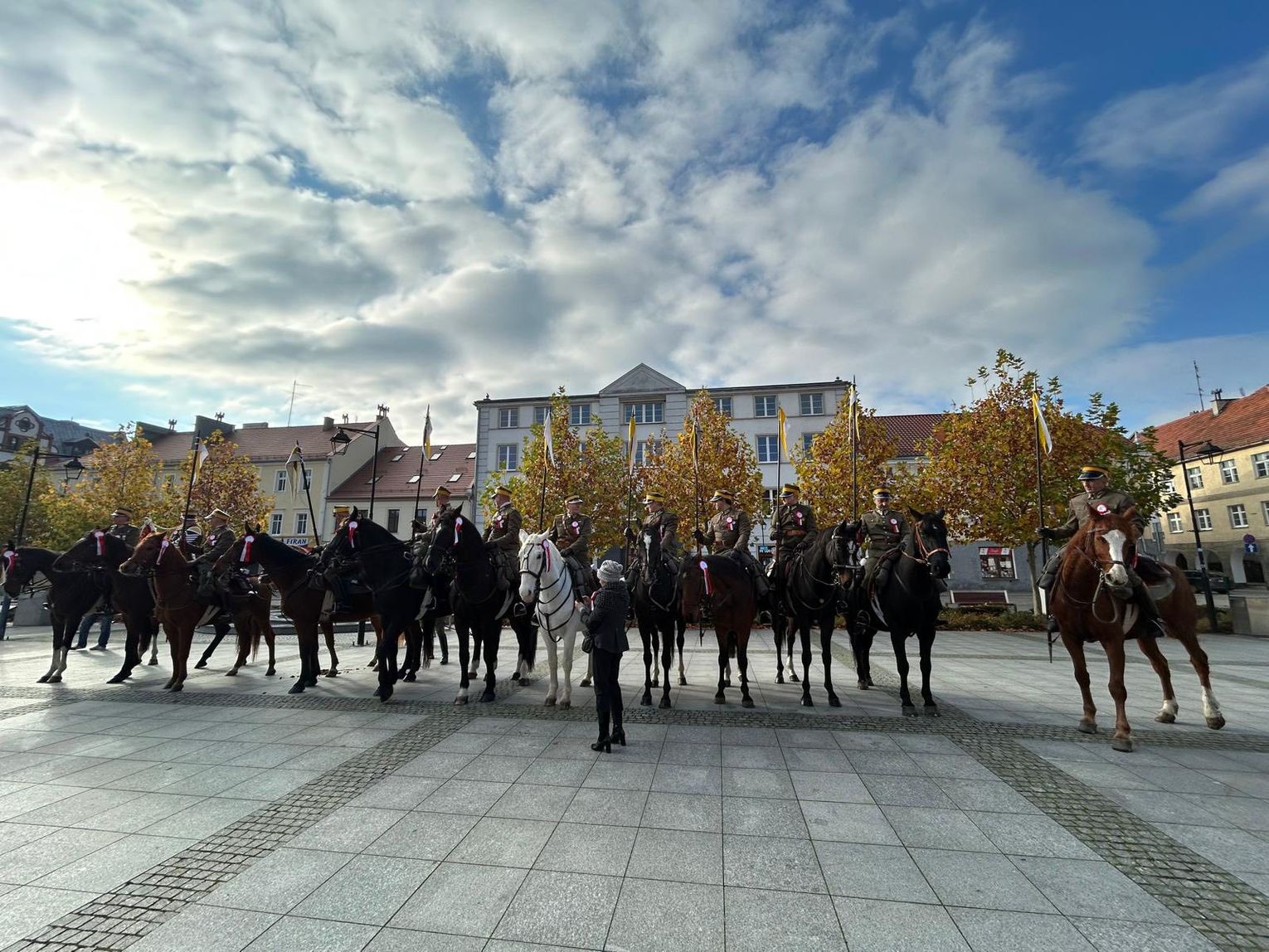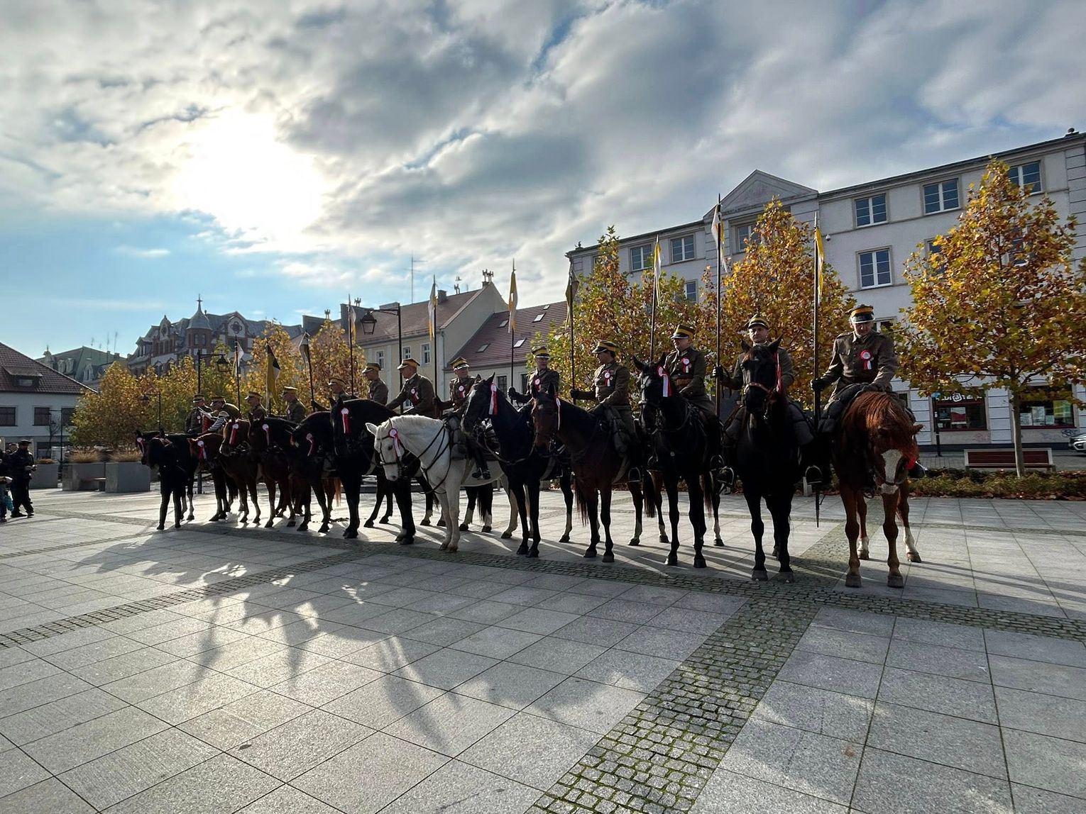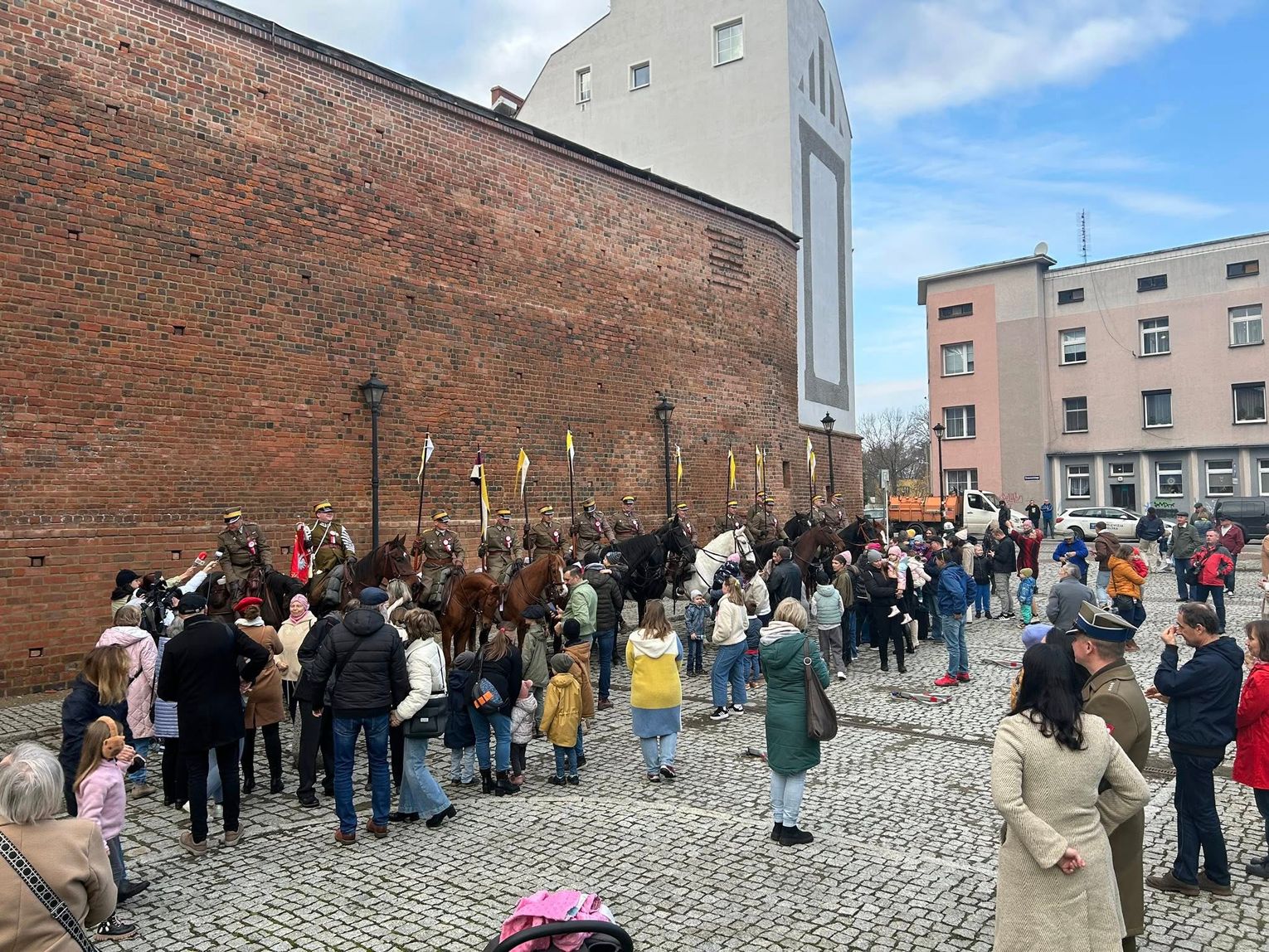 Na rynku nastąpiło symboliczne uhonorowanie ułanów i ich koni biało-czerwonymi kotylionami – gestem wdzięczności i uznania za kultywowanie polskiego dziedzictwa i patriotycznych wartości.