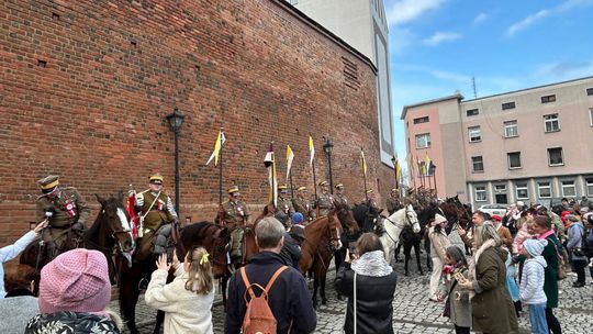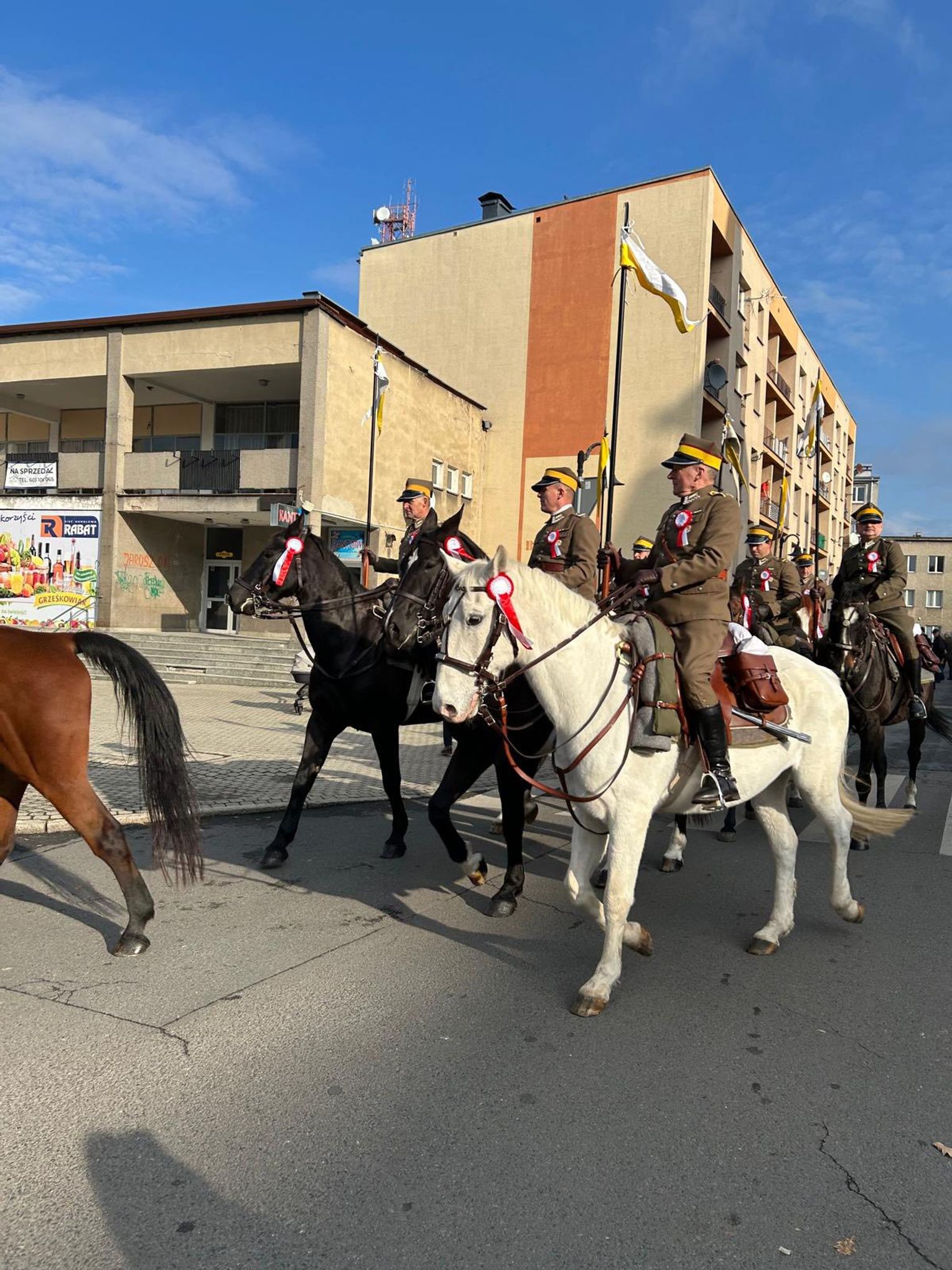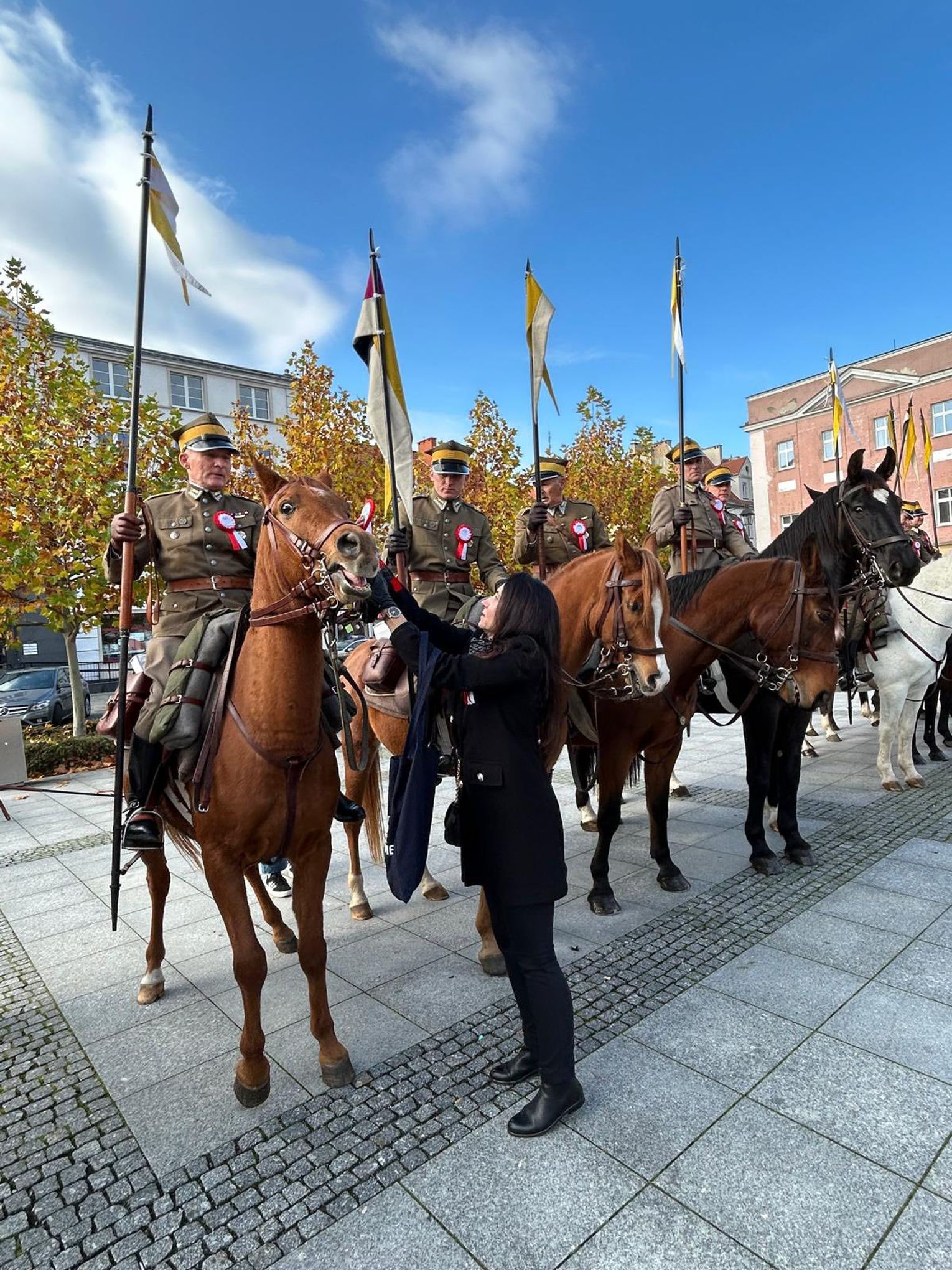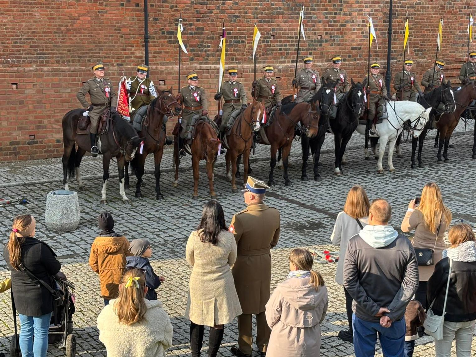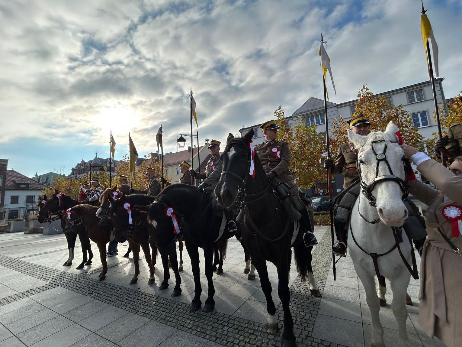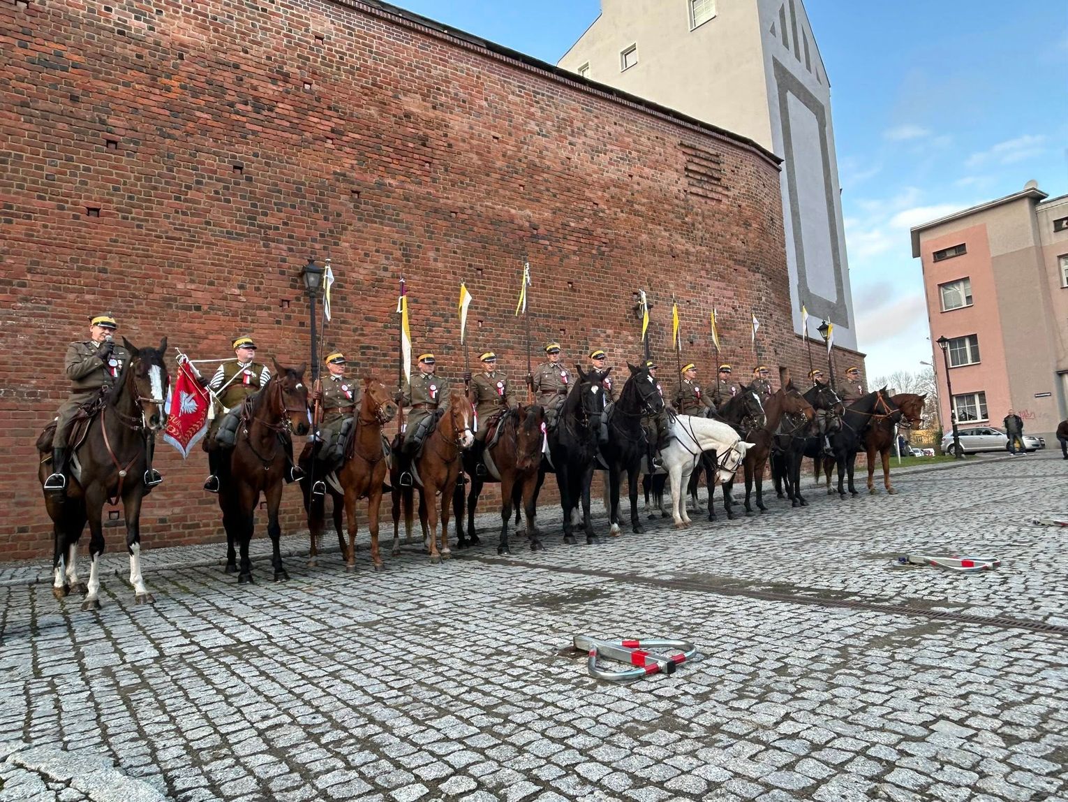 Na rynku nastąpiło symboliczne uhonorowanie ułanów i ich koni biało-czerwonymi kotylionami – gestem wdzięczności i uznania za kultywowanie polskiego dziedzictwa i patriotycznych wartości.