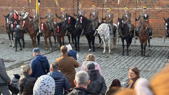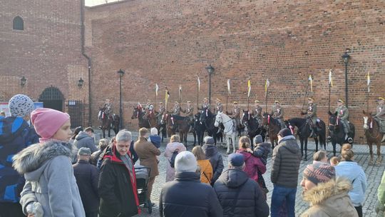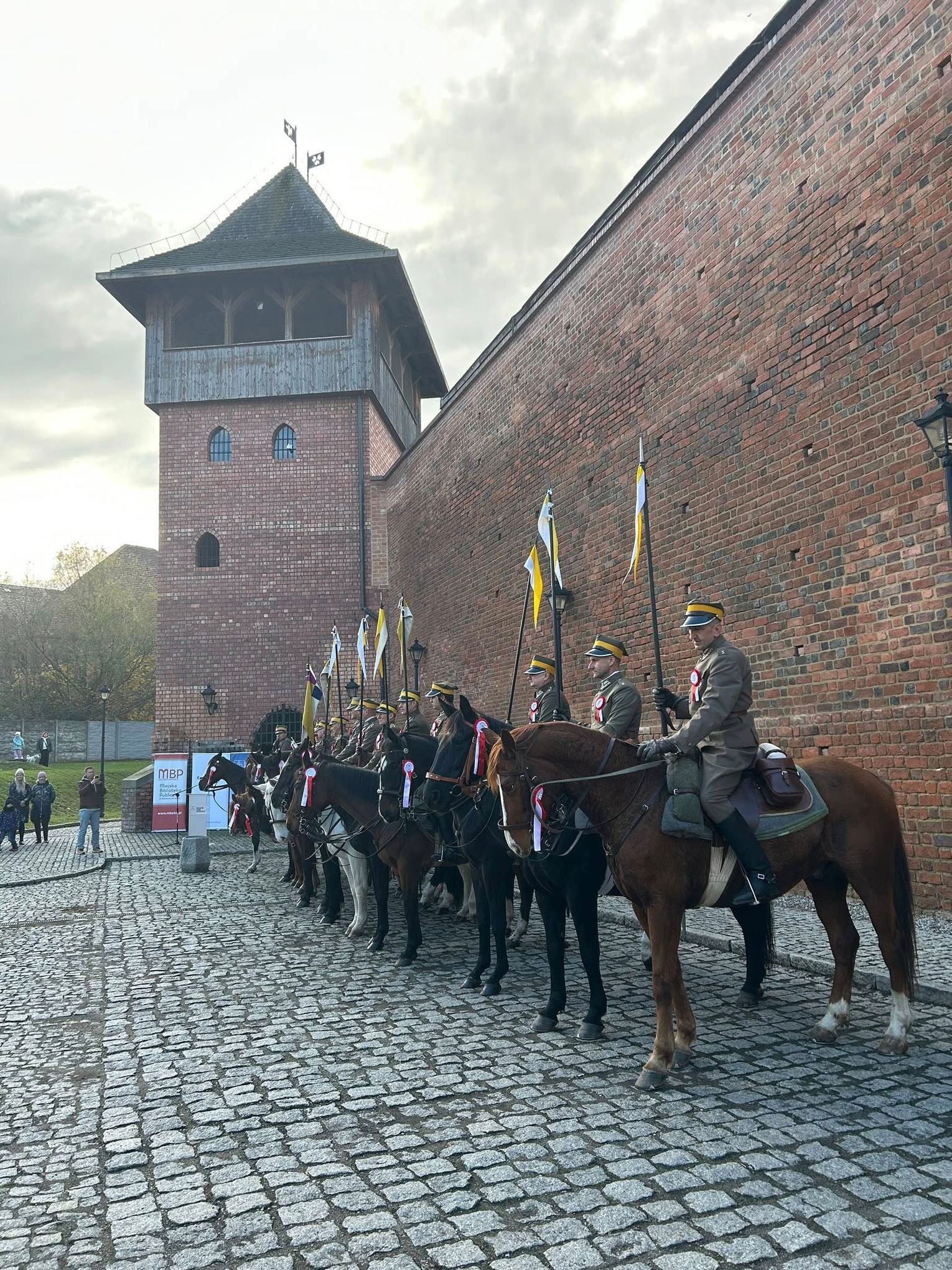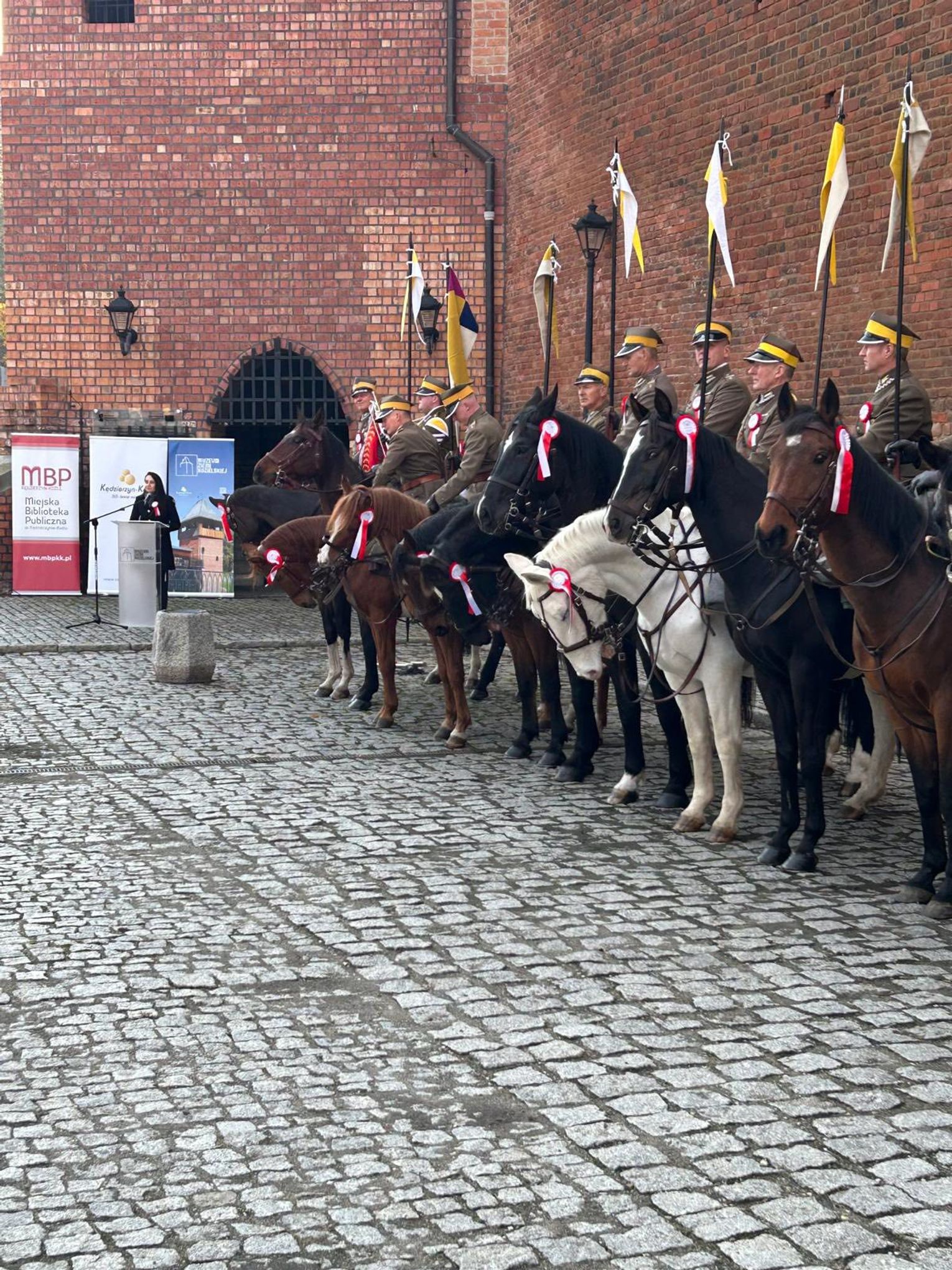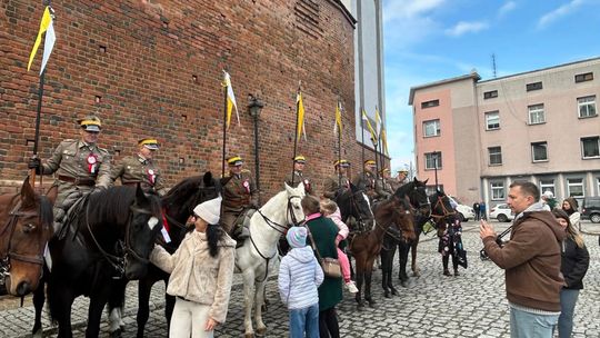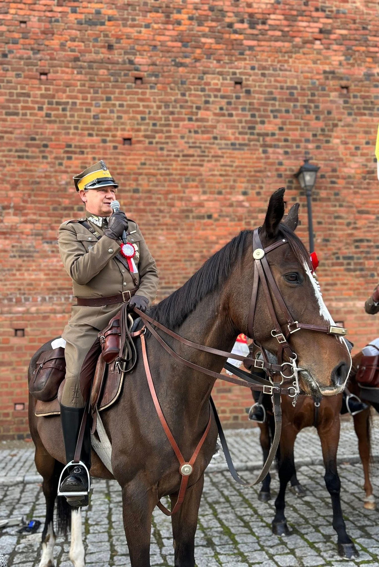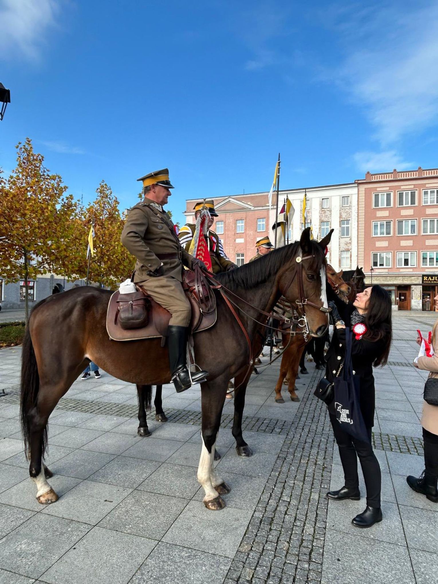 Na rynku nastąpiło symboliczne uhonorowanie ułanów i ich koni biało-czerwonymi kotylionami – gestem wdzięczności i uznania za kultywowanie polskiego dziedzictwa i patriotycznych wartości.