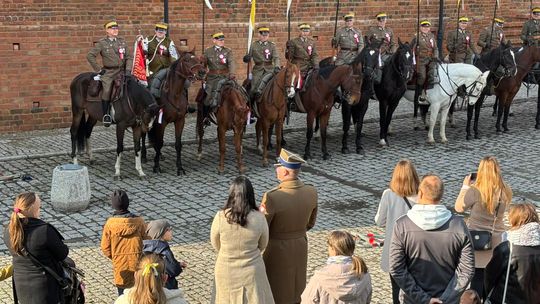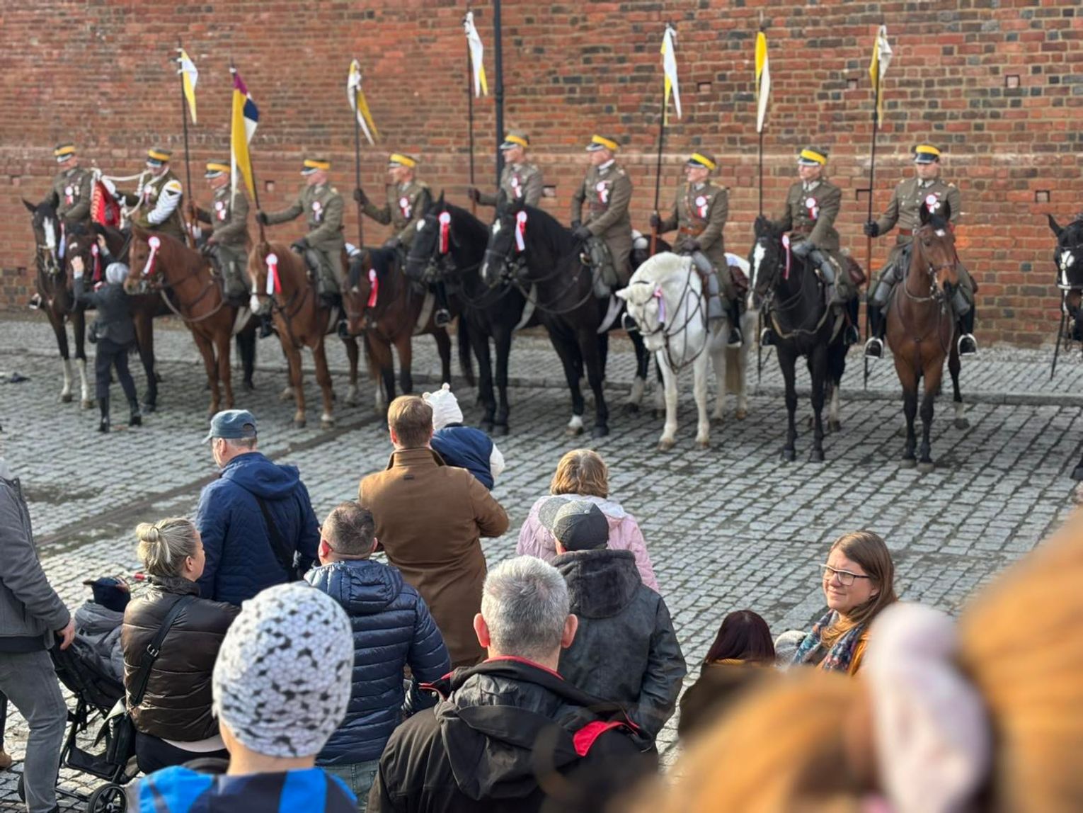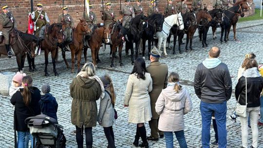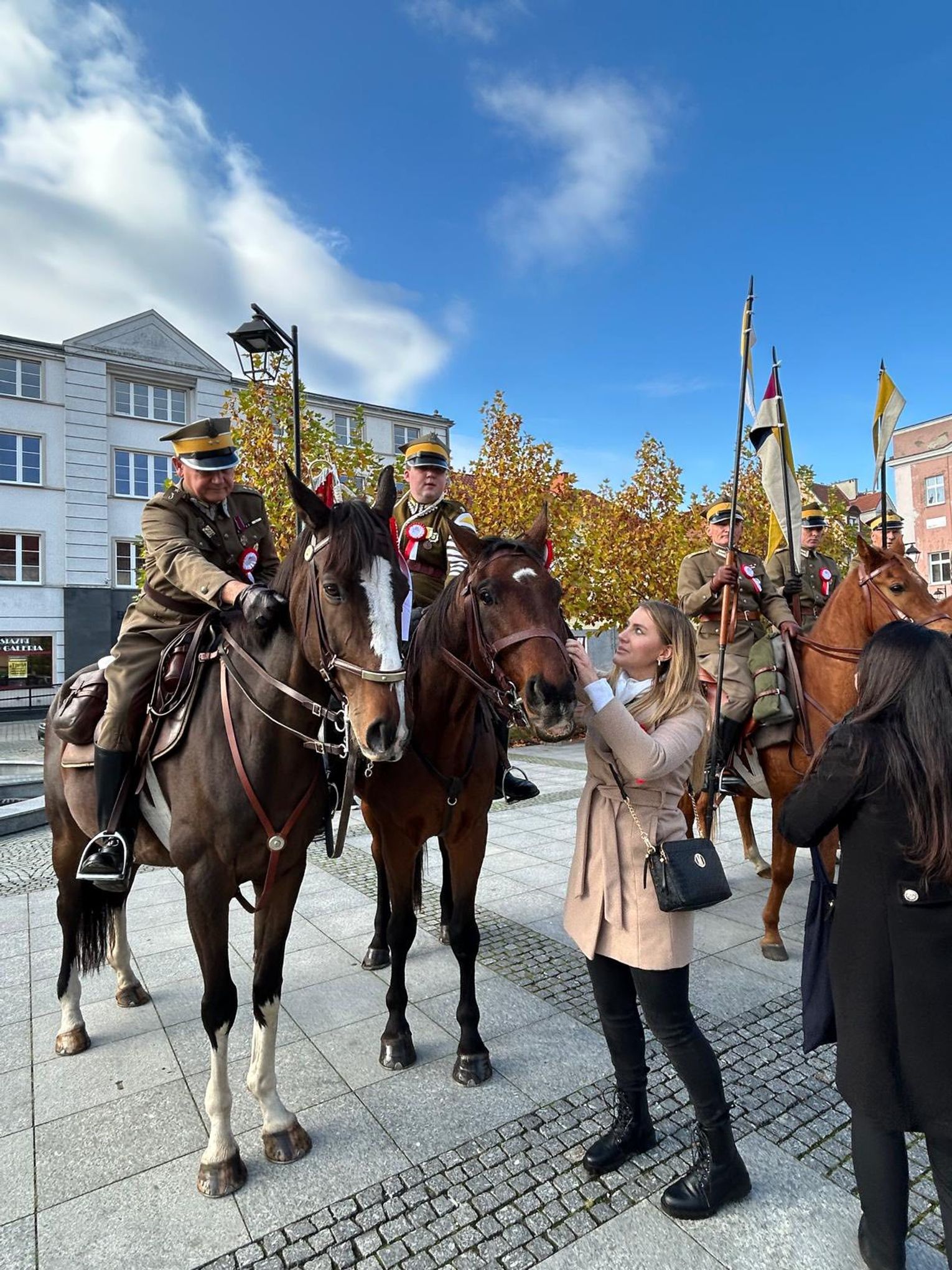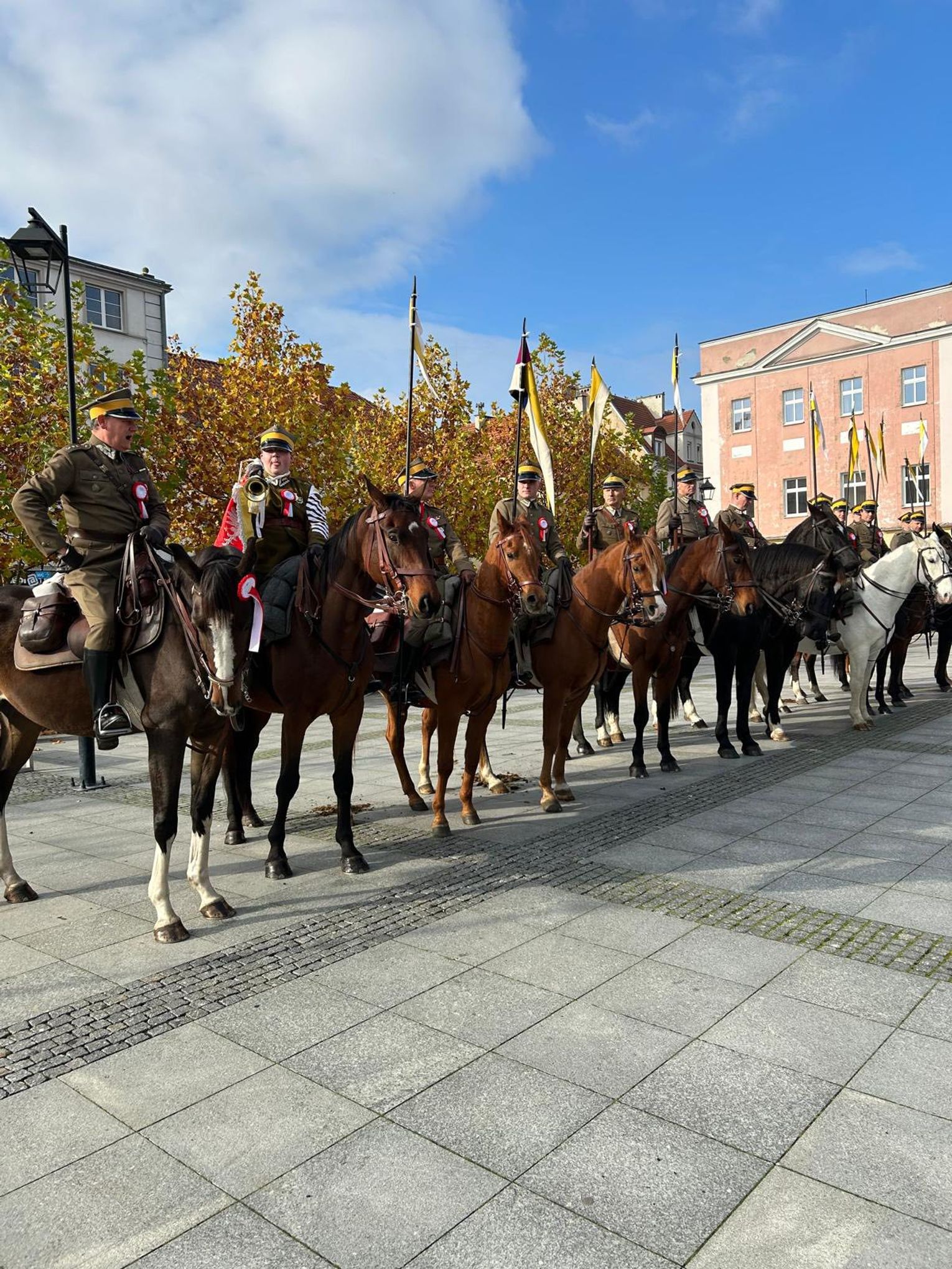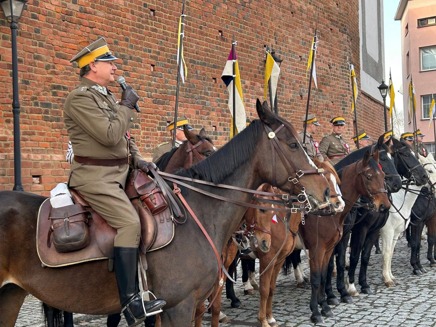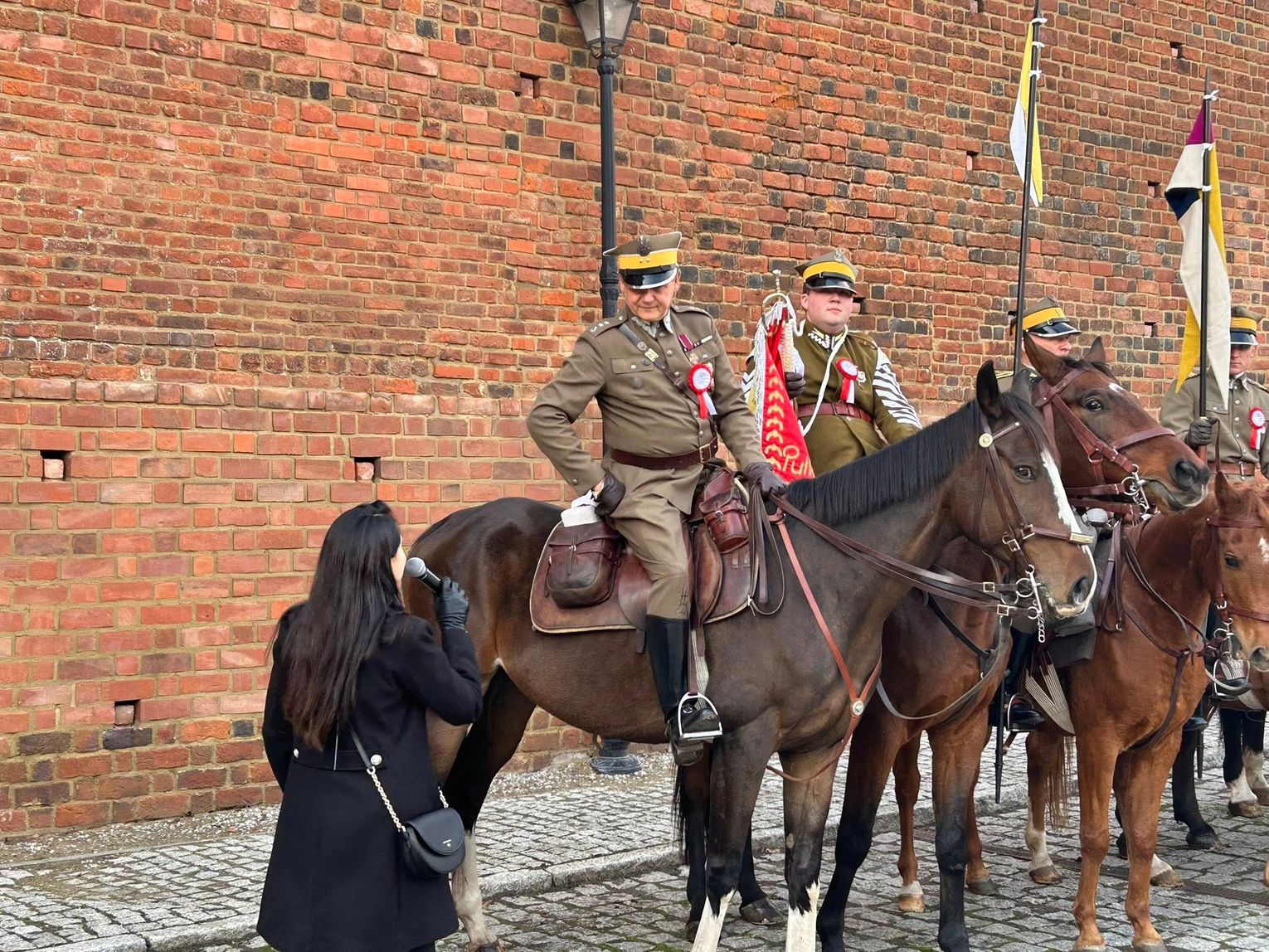 Na rynku nastąpiło symboliczne uhonorowanie ułanów i ich koni biało-czerwonymi kotylionami – gestem wdzięczności i uznania za kultywowanie polskiego dziedzictwa i patriotycznych wartości.
