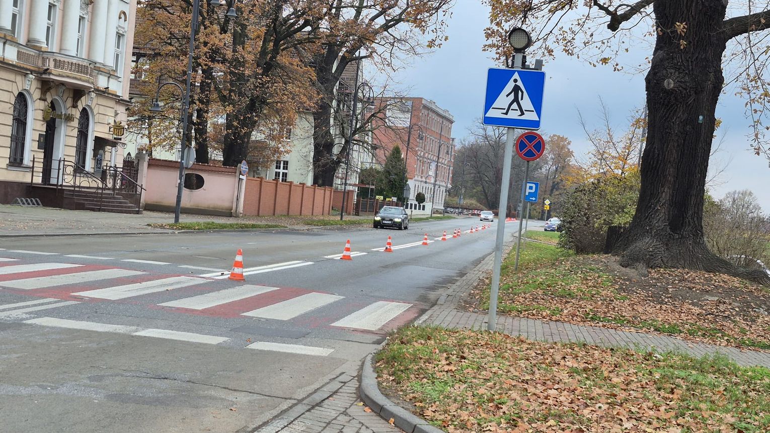 Prace obejmują m.in. odnowienie przejść dla pieszych, linii wyznaczających pasy ruchu, oznaczeń kierunkowych oraz miejsc zatrzymań. Świeże, dobrze widoczne oznakowanie poprawi bezpieczeństwo, zwłaszcza w okresie jesienno-zimowym, gdy zmrok zapada szybko, a warunki na drodze są trudniejsze.