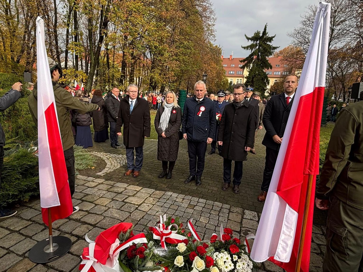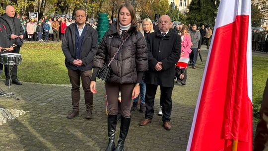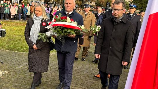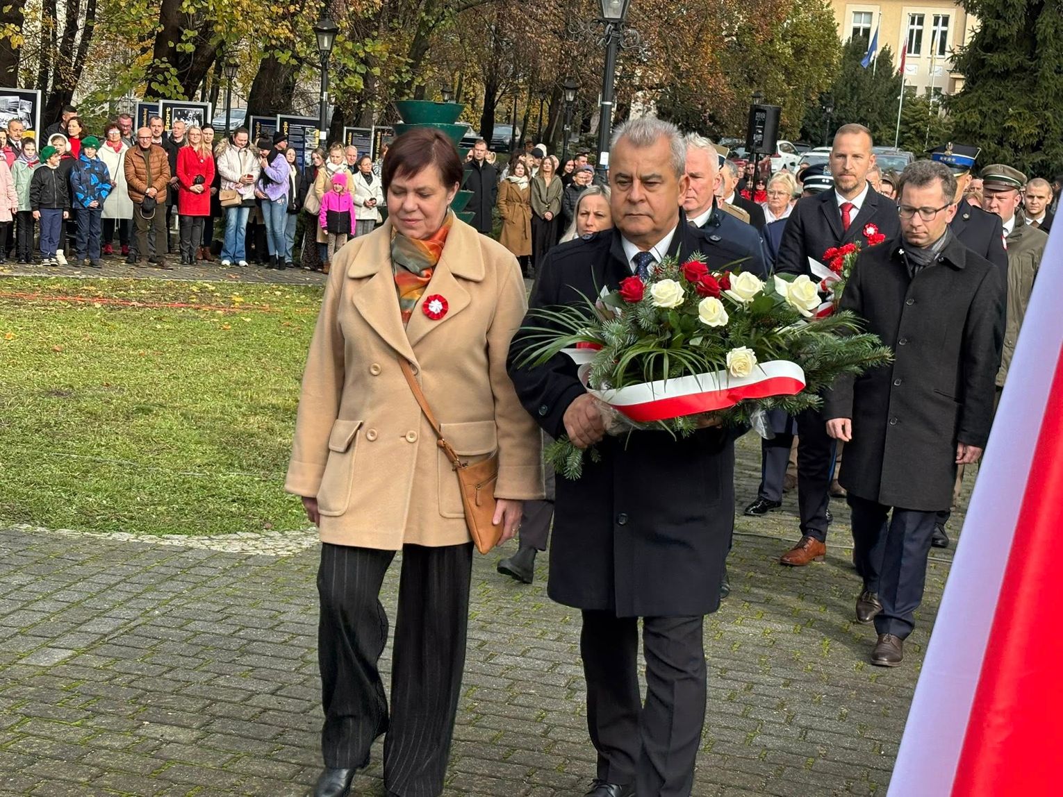 Uroczystości 107 rocznicy odzyskania niepodległości przez Polskę odbyły się przy pomniku Marszałka Józefa Piłsudzkiego, gdzie złożono kwiaty i zapalono znicze. Nie zabrakło też artystycznych akcentów. Uroczystość uświetniły występy dzieci z PSP nr 20 oraz pieśni patriotyczne w wykonaniu chóru „Echo Kresów”.