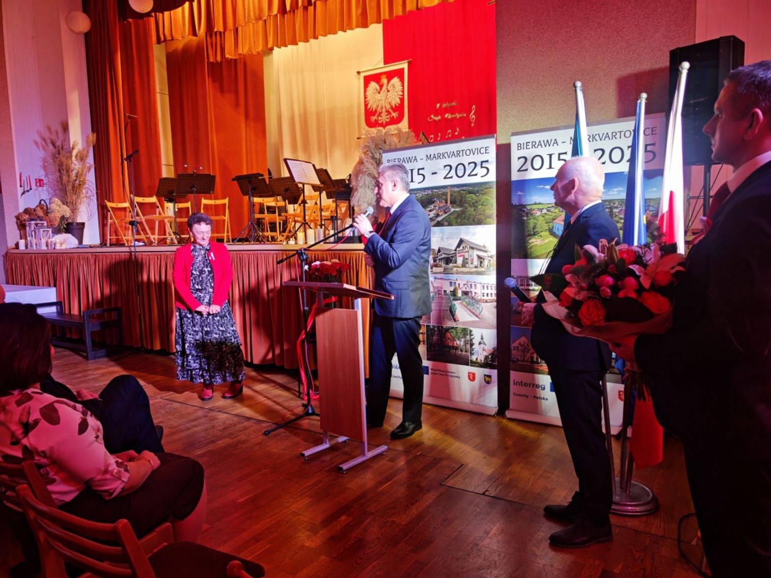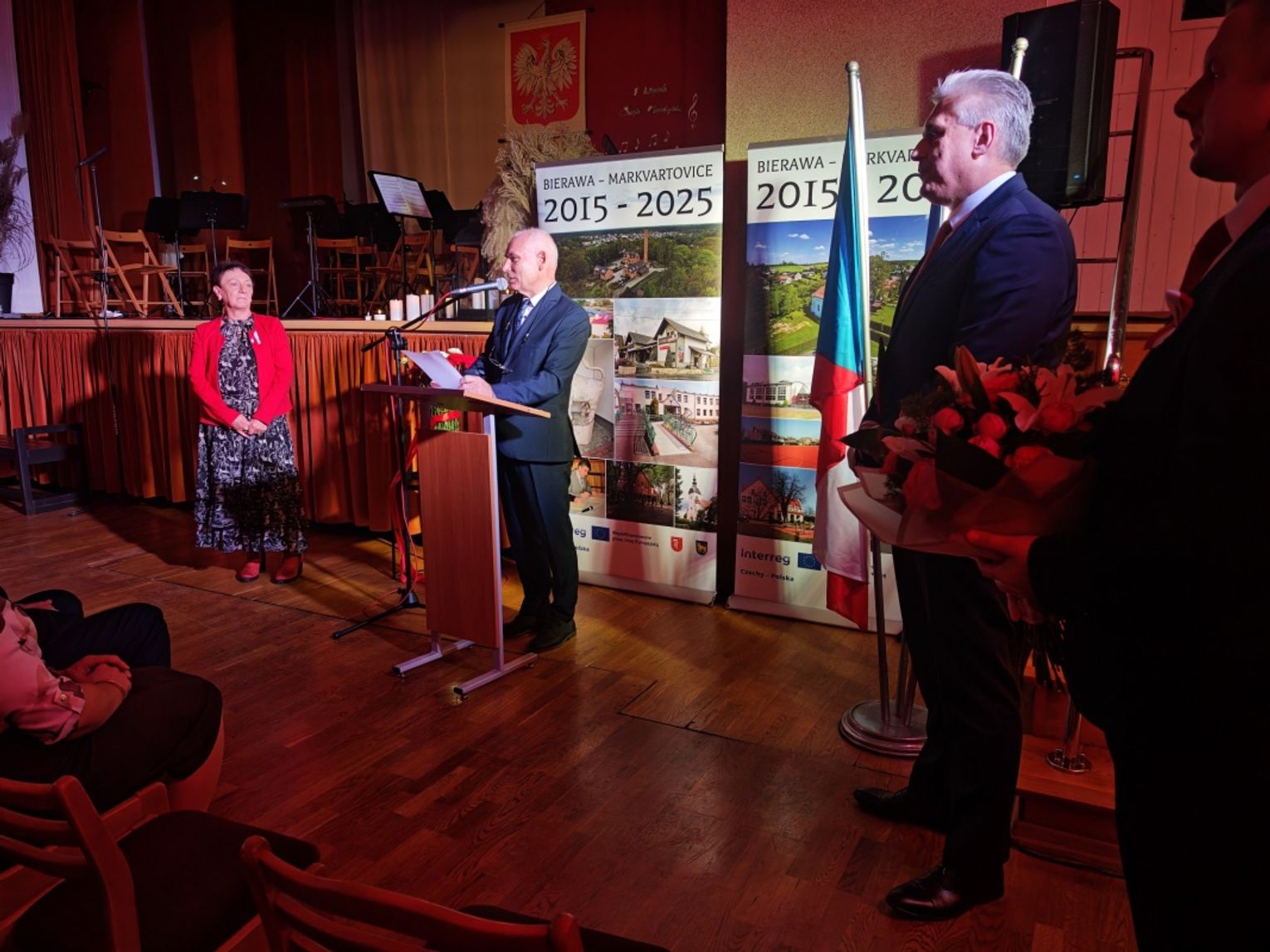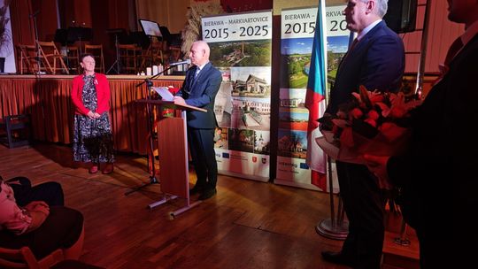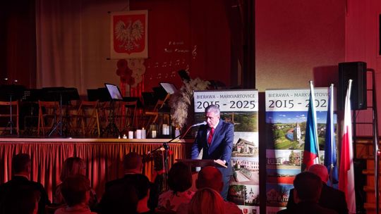Szczególnym akcentem wieczoru było uczczenie 10-lecia partnerstwa gminy Bierawa z czeską gminą Markvartovice. Na scenie pojawili się przedstawiciele zaprzyjaźnionej gminy, ich przemówienia przypomniały o dekadzie wspólnych działań, projektów i spotkań. Jubileuszowe obchody dopełniła wystawa fotografii dokumentująca polsko-czeską współpracę, zrealizowana w ramach projektu dofinansowanego z Funduszu Małych Projektów Euroregionu Pradziad (INTERREG Czechy-Polska 2021-2027).