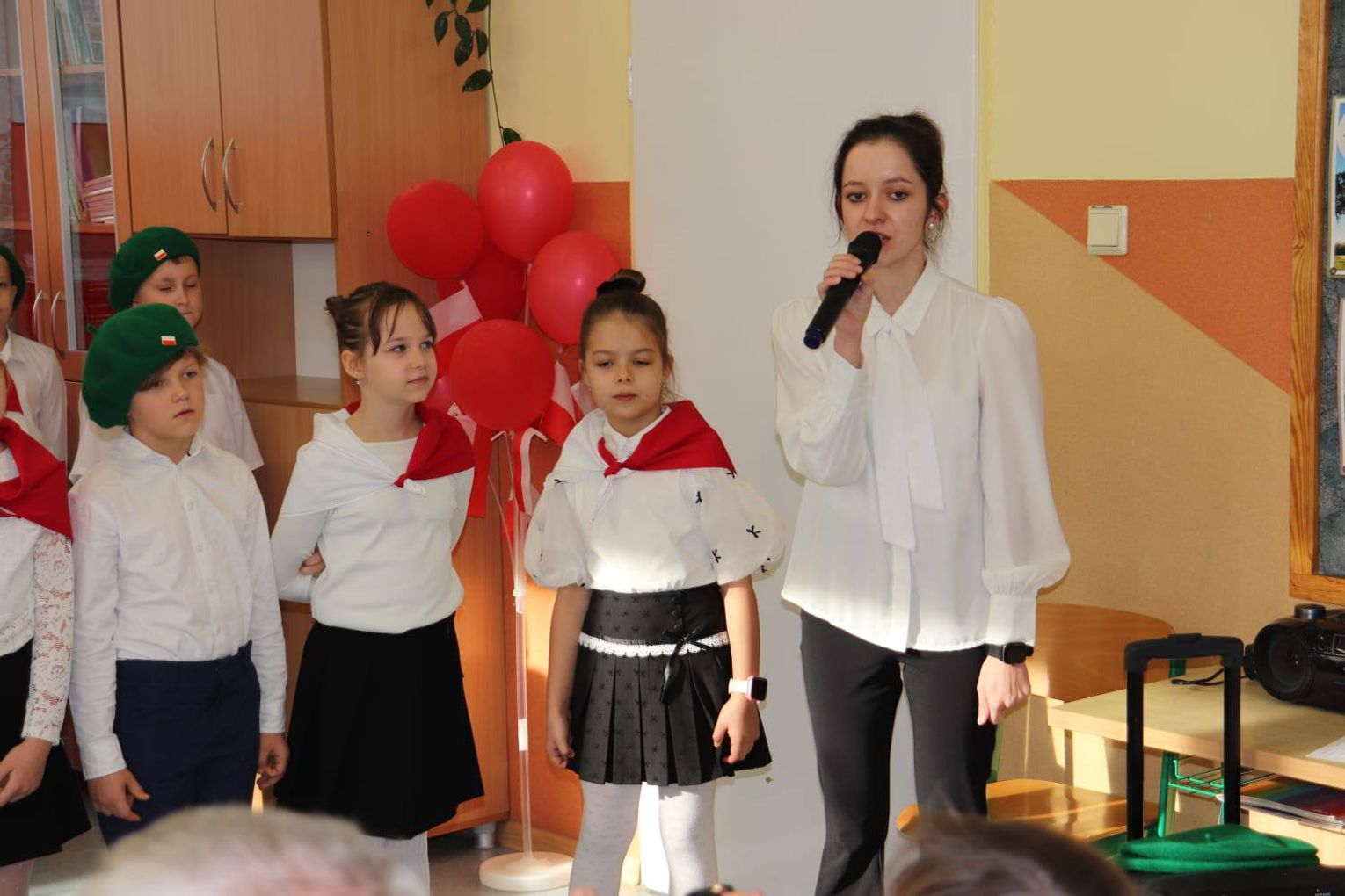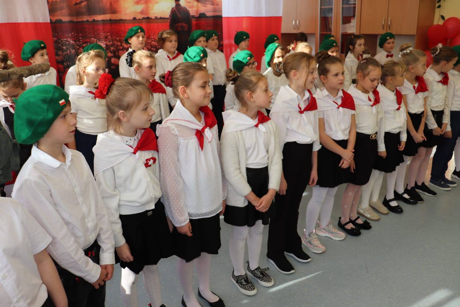 Rodzice, jak zawsze, okazali ogromne wsparcie – przygotowali poczęstunek, na który złożyły się domowe ciasta, owoce i napoje, umilając wspólne świętowanie. Wśród wypieków znalazły się także słodkości upieczone przez panią Agatę i panią Mariolę. W przedsięwzięciu wsparcia udzieliły również nasze niezastąpione absolwentki – Hania z Zespołu Szkół Żeglugi Śródlądowej w Kędzierzynie-Koźlu, która zagrała na werblach, oraz Natalia z I Liceum Ogólnokształcącego, pomagając wychowawcom i uczniom. To był wyjątkowy dzień, pełen emocji, patriotyzmu i wspólnoty. Dziękujemy wszystkim, którzy przyczynili się do stworzenia tak pięknego wydarzenia, a naszym gościom za słodkie upominki dla dzieci - czytamy na facebookowym profilu PSP nr 20.