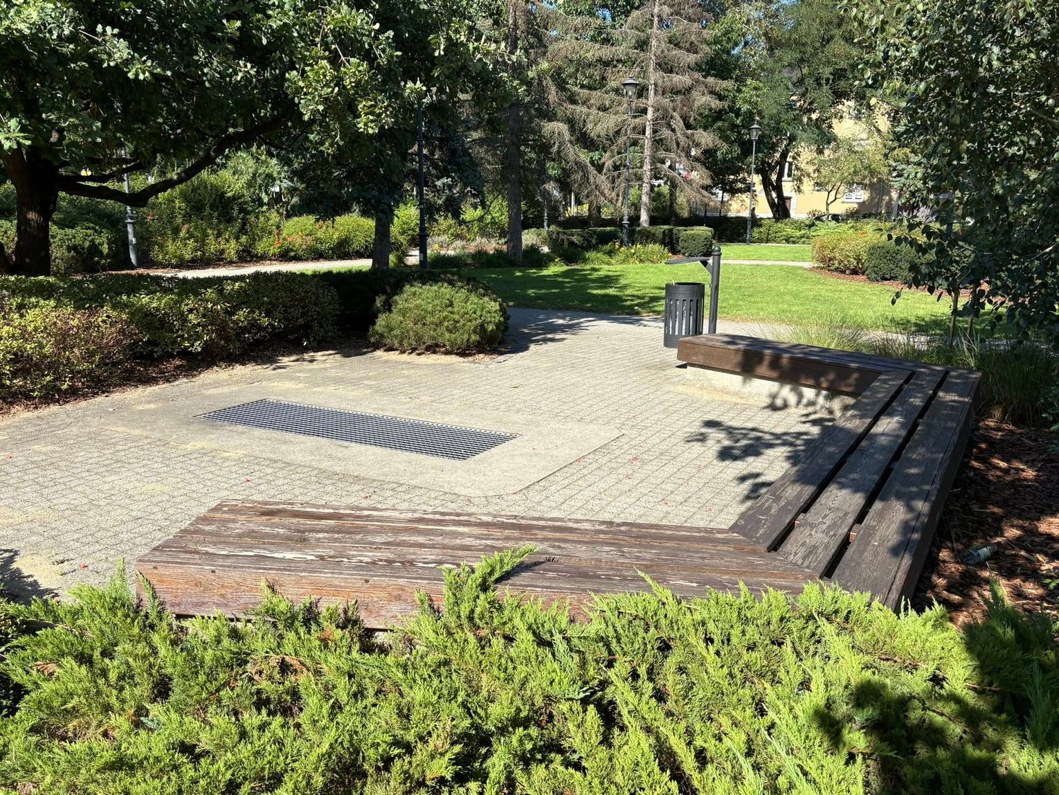 Luftschutz Deckungsgraben, znajdujący się na Placu Wolności, w latach 2007/08 był otwarty. Jak wygląda sytuacja obecnie, tego nie wiem. Obiekt wybudowany najpewniej między jesienią 1943 roku a wiosną/latem 1944, składa się z kilku korytarzy. Całość wybudowana jest z betonowych prostokątnych płyt prefabrykowanych.
