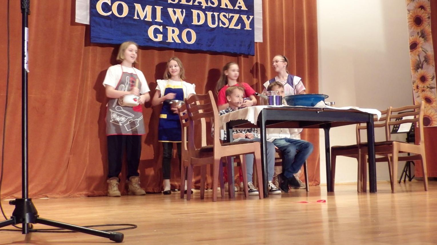 Uczniowie zaśpiewali także piosenkę „Szła dzieweczka do laseczka”, a następnie zaprezentowali jej remix na bum-bum rurkach. Uczennice z klasy 3A wykonały utwór „Jak jo chodził do szkoły”. Potem uczennice klasy 5B, Laura Komander i Iga Janysek, zaśpiewały piosenkę „Z solą”. W Mini Playback Show – „Wodzionka” – wystąpili uczniowie klas 5A i 5B.