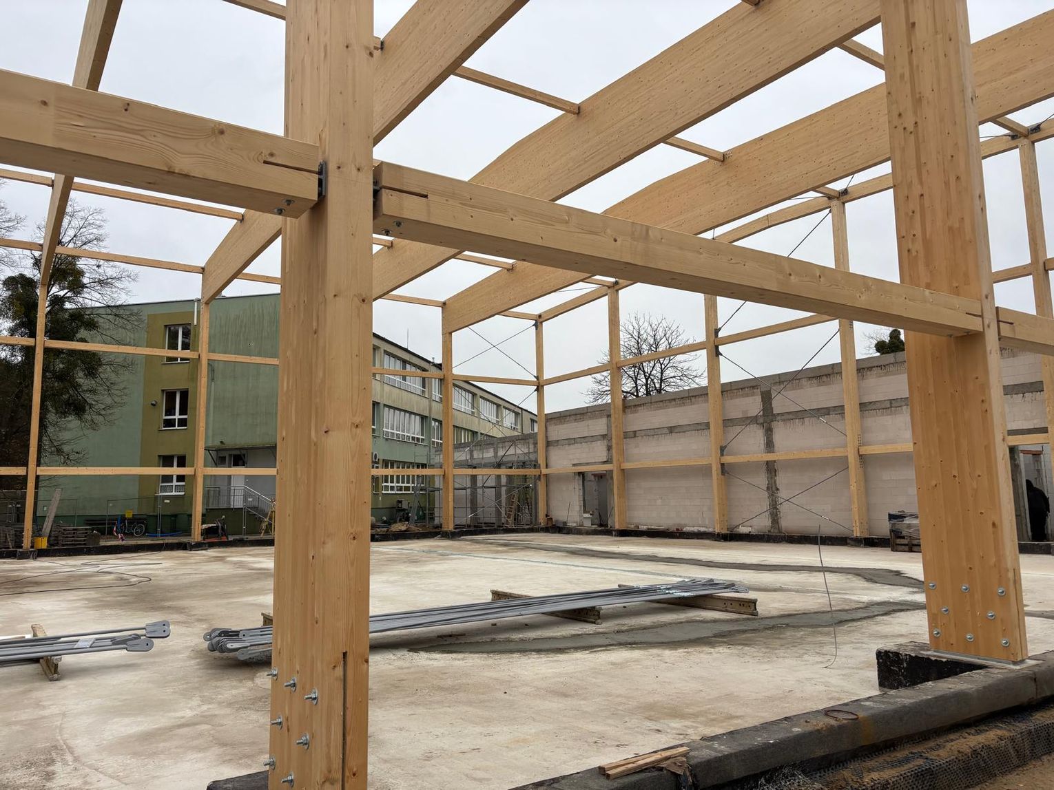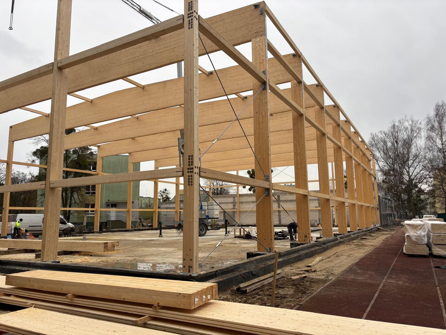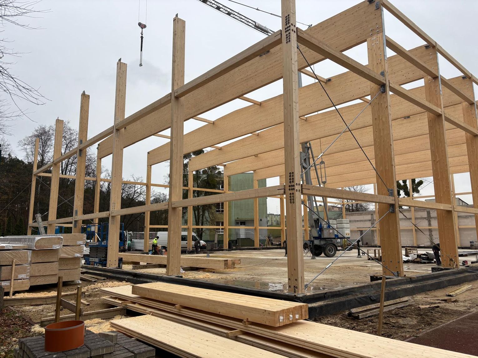 Gotowe są drewniane konstrukcje, a ekipy budowlane wznoszą kolejne ściany. To jednak nie jedyna dobra wiadomość.
