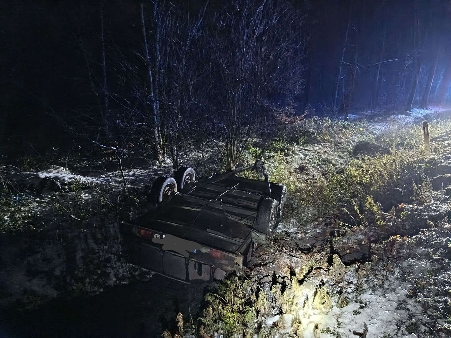 Po dojeździe na miejsce i przeprowadzeniu rozpoznania okazało się, że samochód osobowy ciągnący przyczepkę wypadł z jezdni. W wyniku zdarzenia jedna osoba wymagała pomocy medycznej.