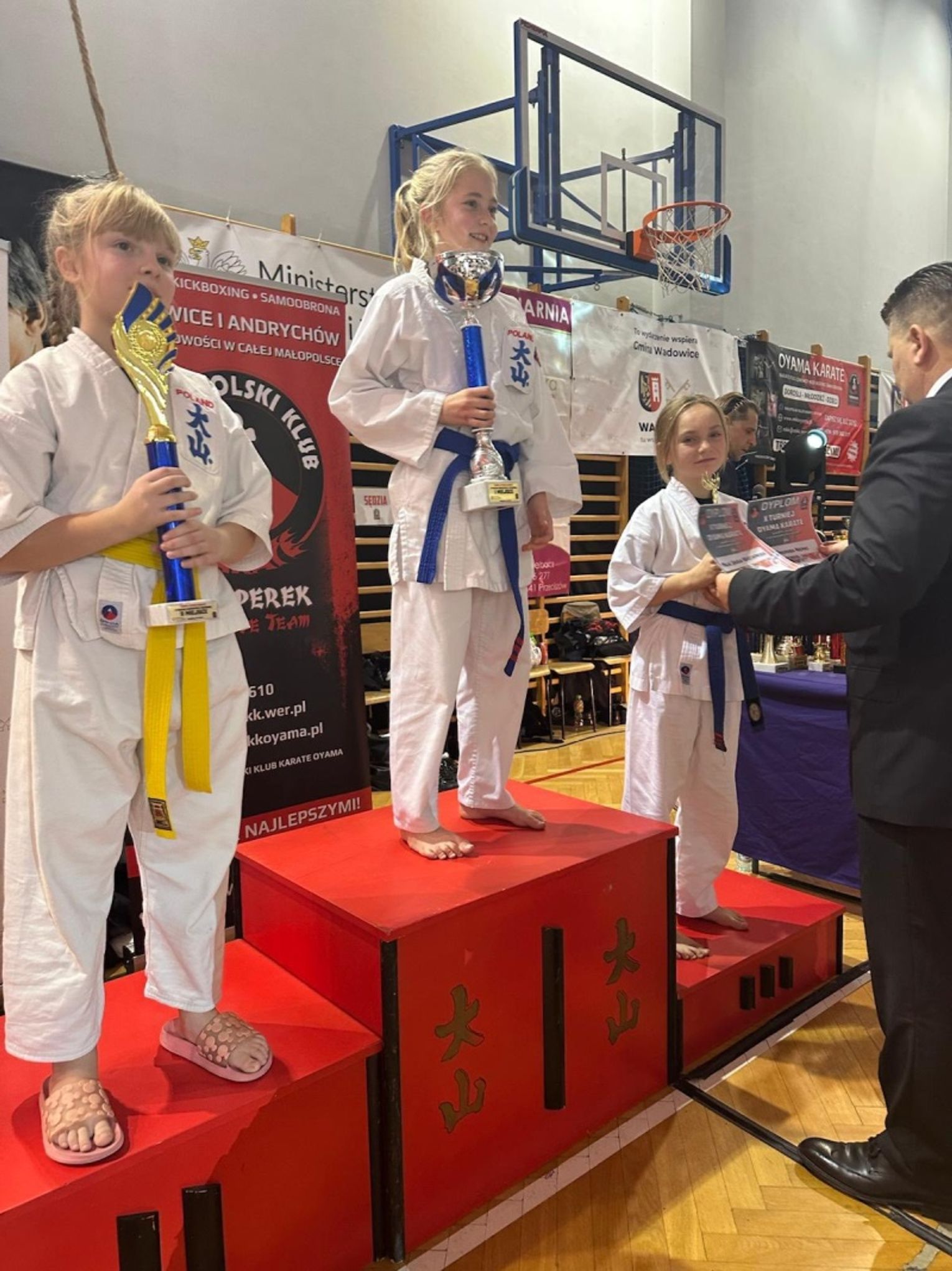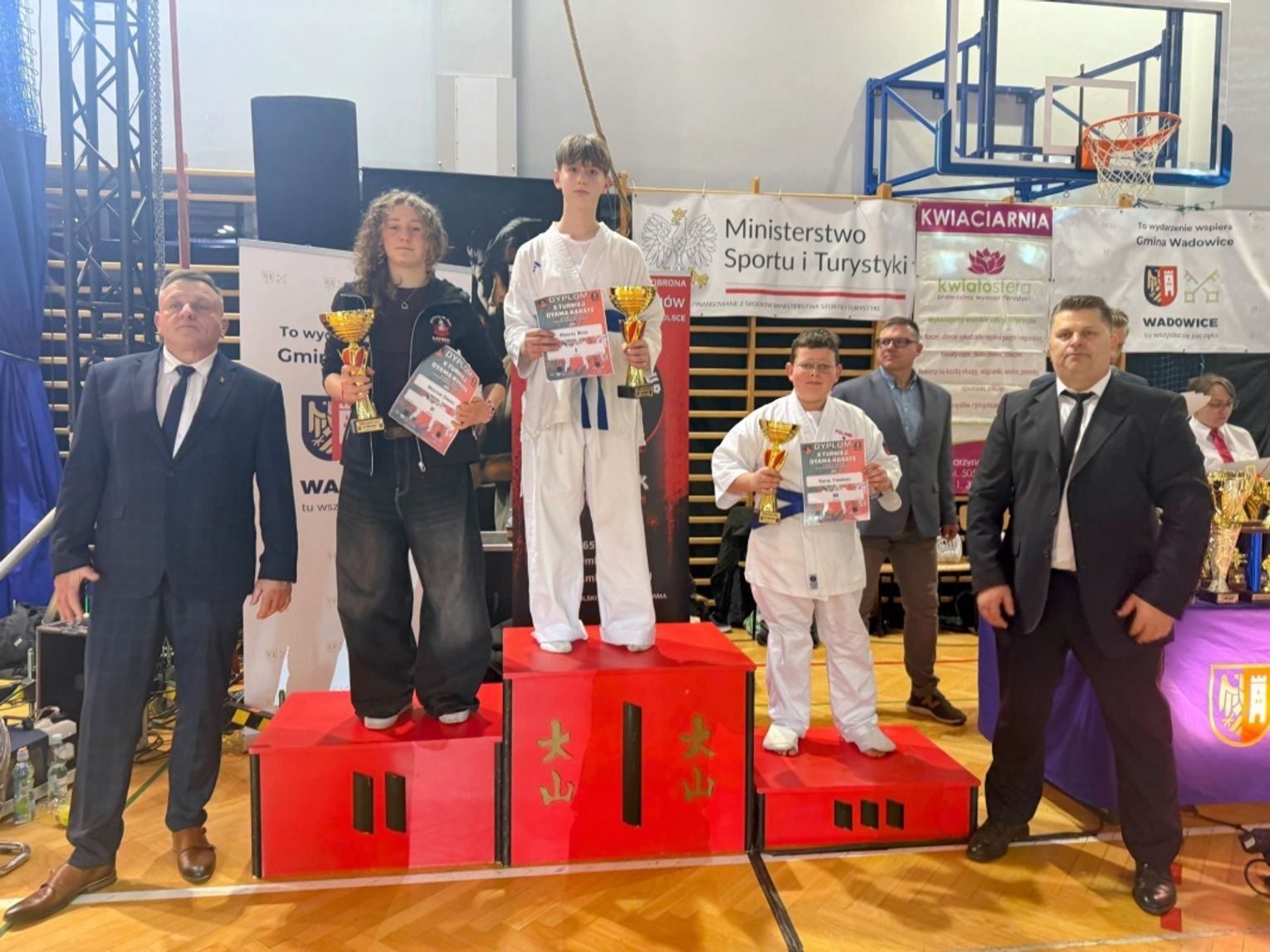 Podopieczni sensei Anny Niemas - zawodnicy Klubu Sportowego Oyama Onyks Błażejowice - zaprezentowali się znakomicie, zdobywając liczne medale i wyróżnienia. W konkurencji Kalaki triumfowali: Maria Ciach, Michalina Witoń, Maksymilian Augustyniak oraz Alex Paczuła, którzy pokazali świetne przygotowanie i determinację.