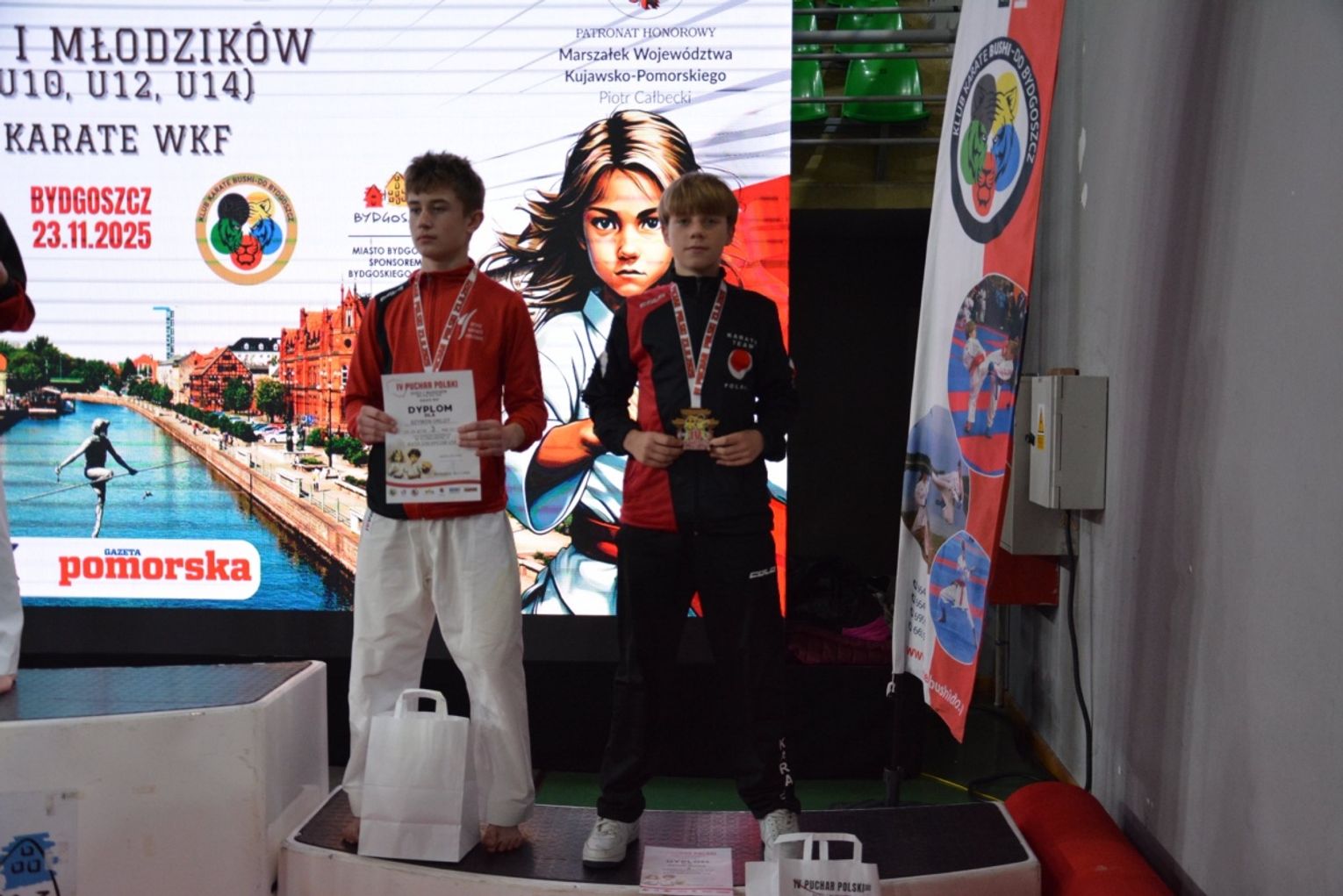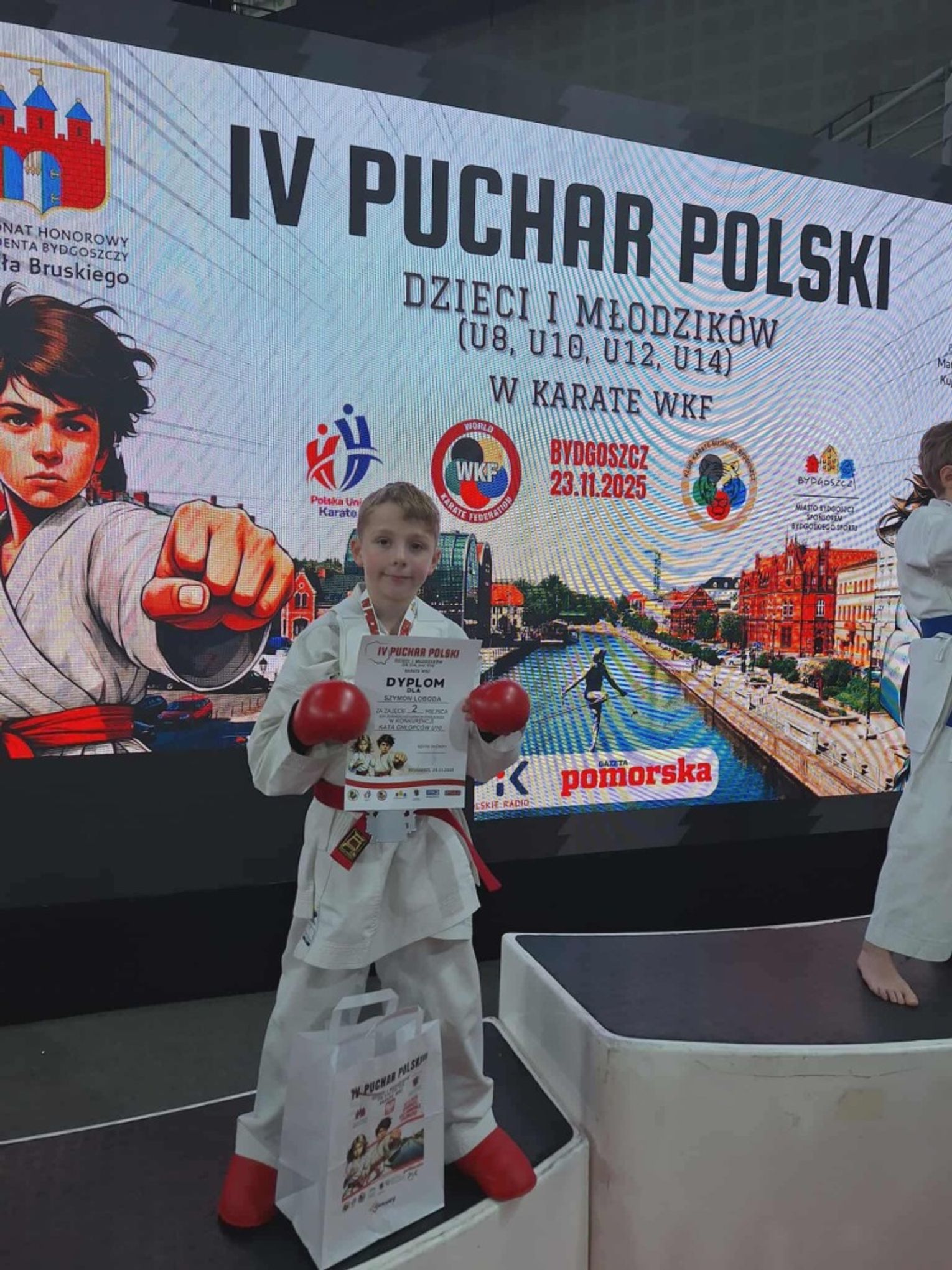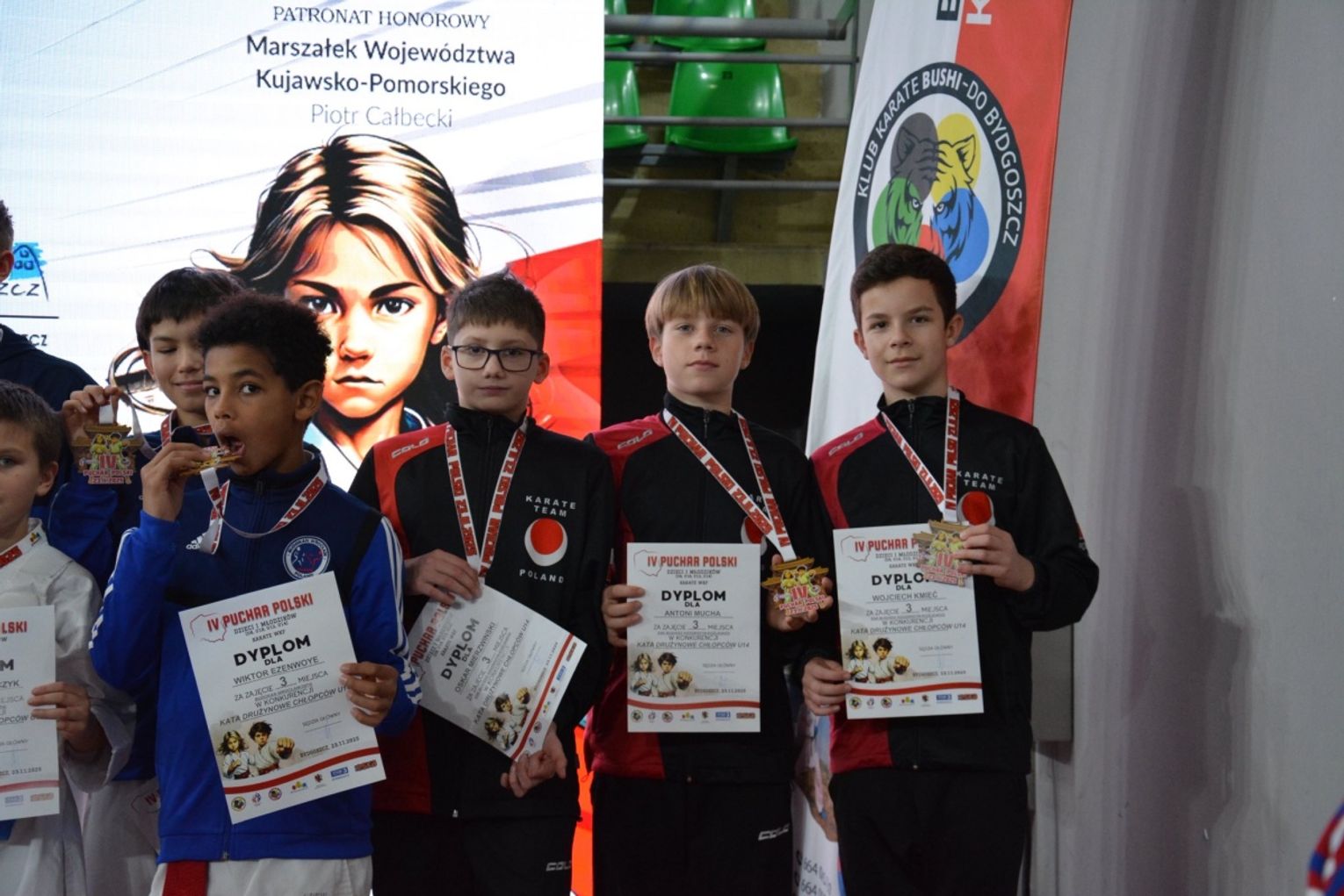 Wyniki naszych zawodników przedstawiają się następująco: Szymon Łoboda - 2. miejsce w kata i 5. miejsce w kumite, Antoni Mucha - 3. miejsce w kata, Oskar Mierzwiński - 5. miejsce w kata i 7. miejsce w kumite, Kamil Nazar - 7. miejsce w kata, Patryk Ciećka - 9. miejsce w kata. Drużyna w składzie: Oskar Mierzwiński, Antoni Mucha i Wojciech Kmieć zajęła 3. miejsce w kata drużynowym.