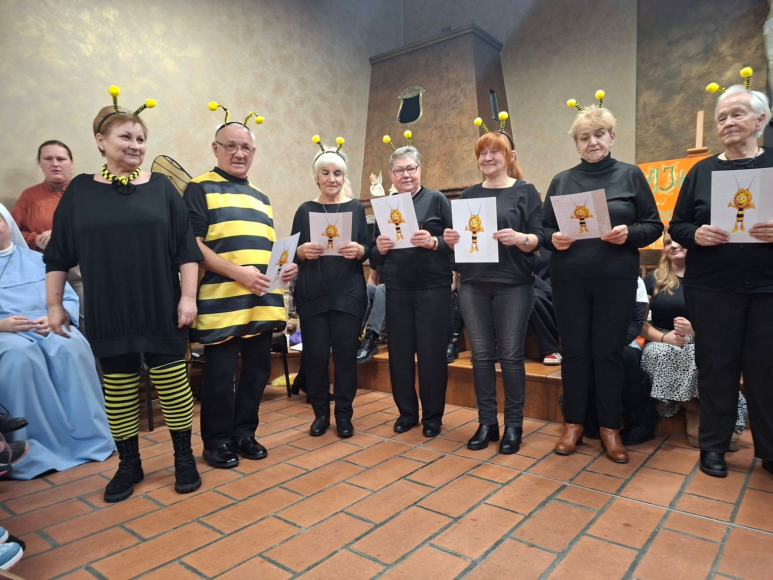 Wszyscy wspólnie przenieśli się w muzyczny, bajkowy świat. Seniorzy z Domu Dziennego Pobytu nr 5 w Kędzierzynie-Koźlu wcielili się na chwilę w rolę pszczółek i zaśpiewali utwór z bajki „Pszczółka Maja”.