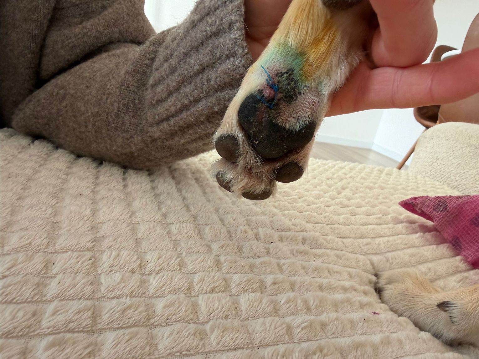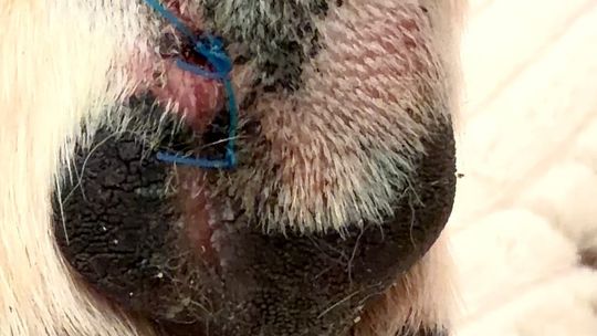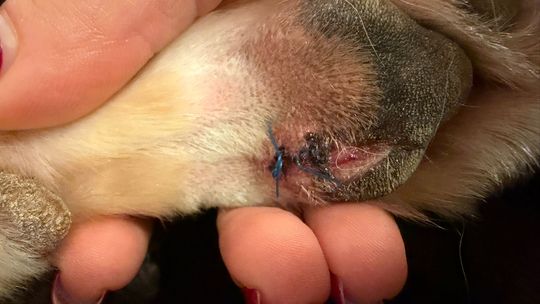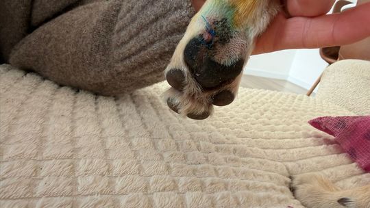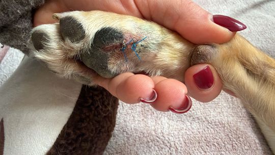 Suczka o imieniu Holly poważnie rozcięła łapę, następując na rozbite szkło pozostawione na terenie wybiegu.