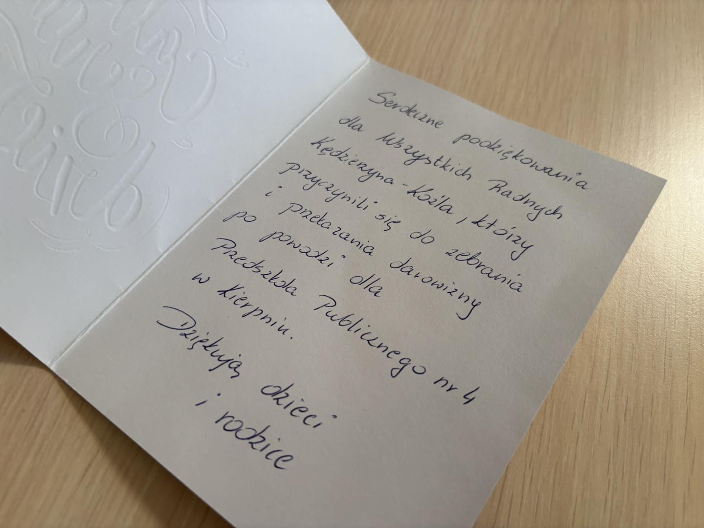 Tym razem były to kartka z podziękowaniami oraz zdjęcia dzieci przesłane przez Publiczne Przedszkole nr 4 z Kierpnia.