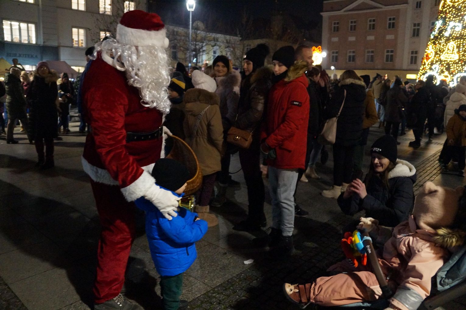 Tej wyjątkowej chwili towarzyszyły setki mieszkańców naszego miasta i powiatu. Każdy miał okazję poczuć magię świąt, podziwiając kramiki ze świątecznymi ozdobami, pachnącymi potrawami i łakociami. Ze sceny na rynku dobiegały m.in. kolędy, pastorałki, ale i inne rytmy. Mikołaje i elfy porywały najmłodszych do tańca, rozdawały też liczne prezenty.