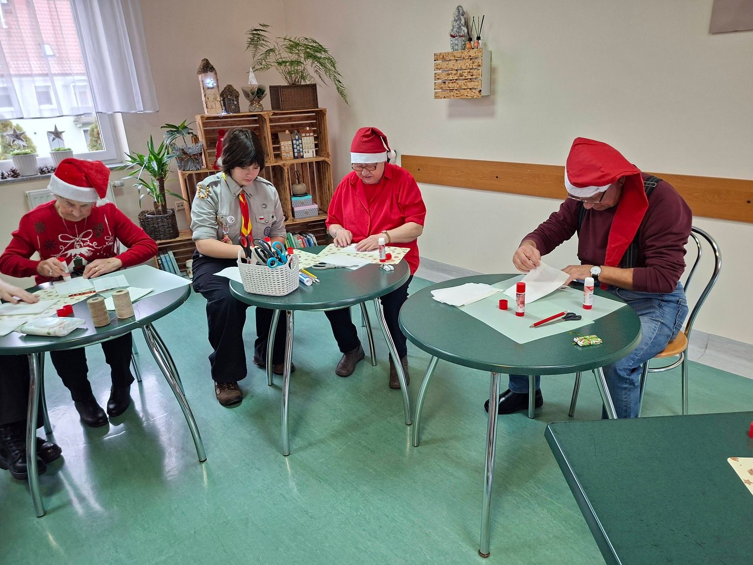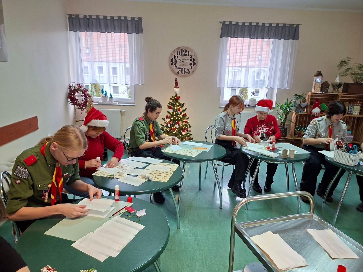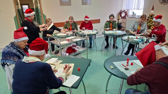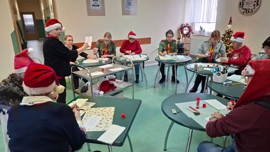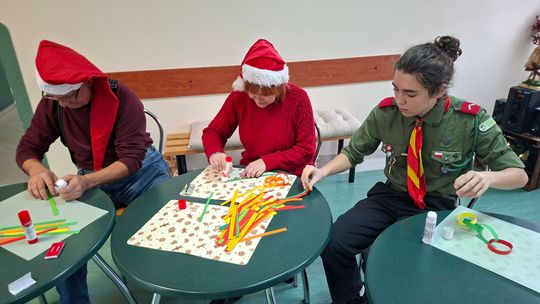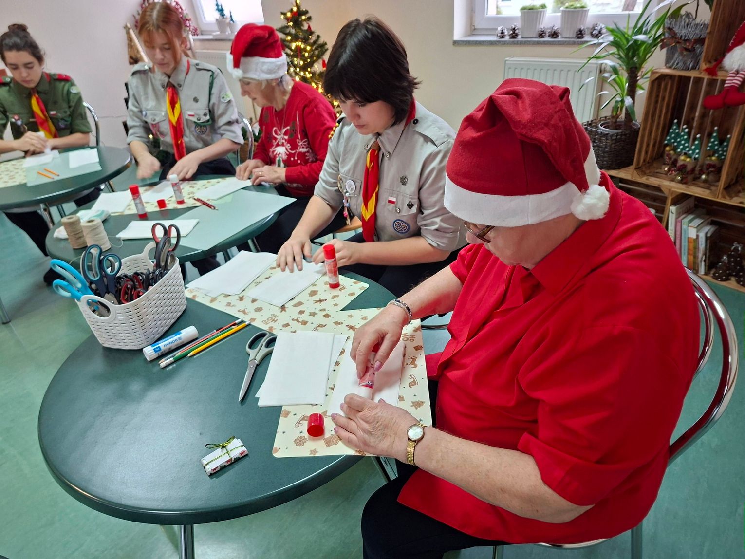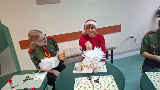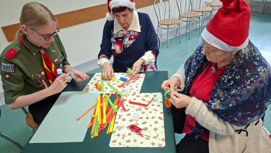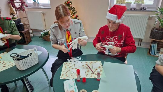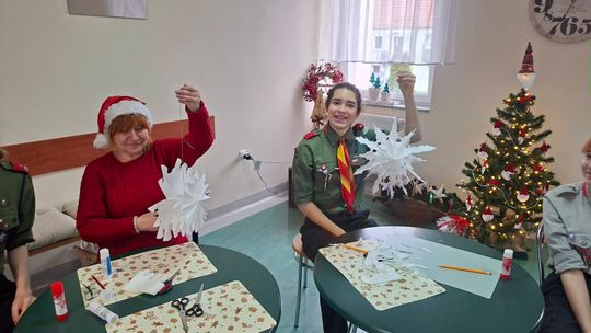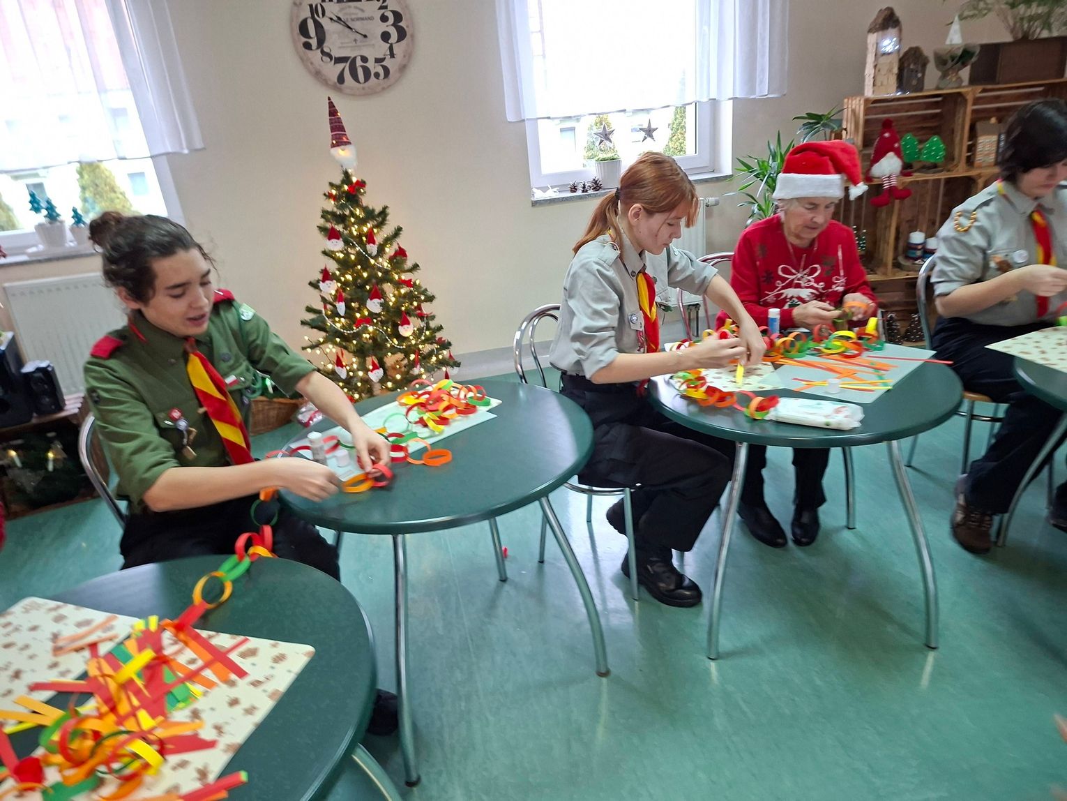 Seniorzy z „Naszego Domu” wspólnie z młodzieżą stworzyli piękne papierowe śnieżynki, a także kolorowy łańcuch na choinkę.