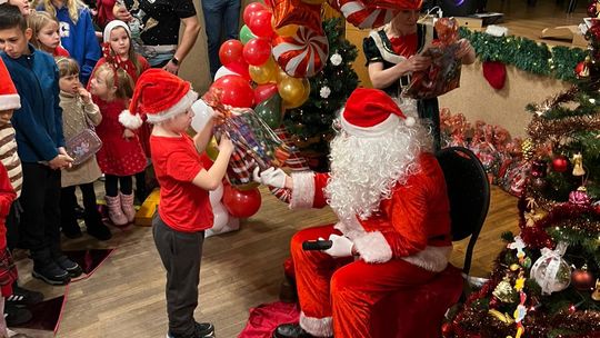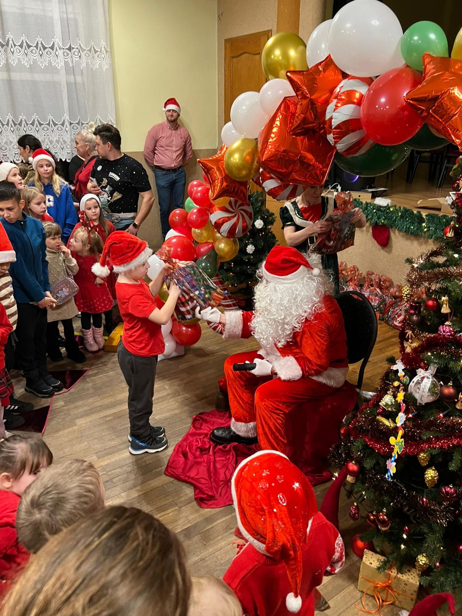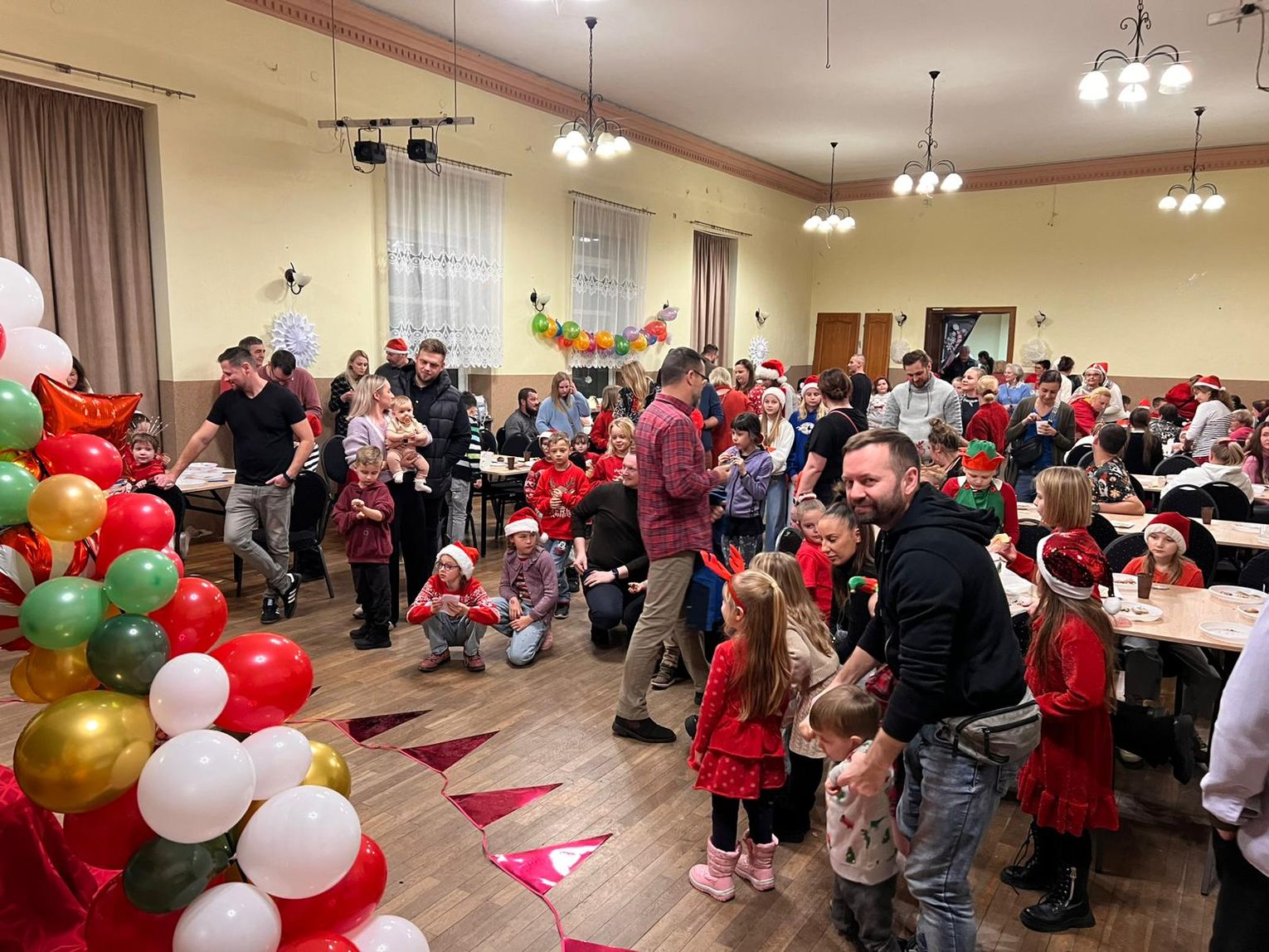 Nie zabrakło również najważniejszego gościa tego dnia – Święty Mikołaj odwiedził Dom Kultury, wręczając najmłodszym prezenty i pozując do pamiątkowych zdjęć.
