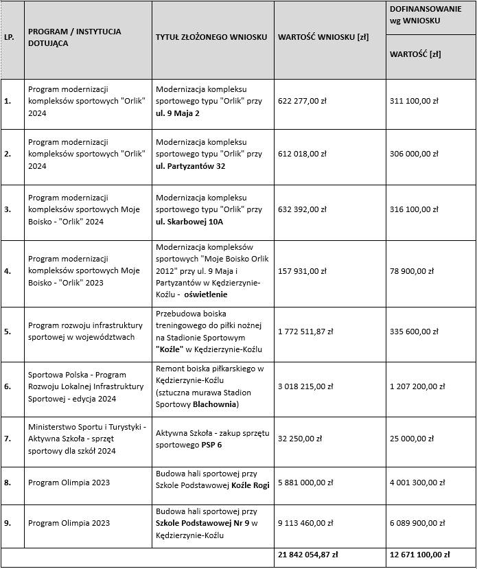Warto jednak podkreślić, że to nie jedyne środki pozyskane przez nasze miasto z Ministerstwa Sportu i Turystyki. Tylko w tym roku gmina zdobyła blisko 12,7 miliona złotych! Dodatkowo dzięki temu zmodernizowano wszystkie miejskie orliki, powstają dwie sale gimnastyczne przy szkołach podstawowych, zakupiono sprzęt sportowy dla placówek oświatowych oraz zabezpieczono środki na remont boiska na stadionie w Blachowni.