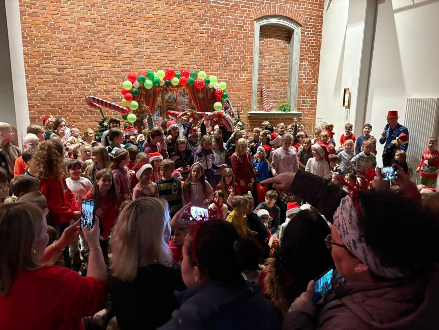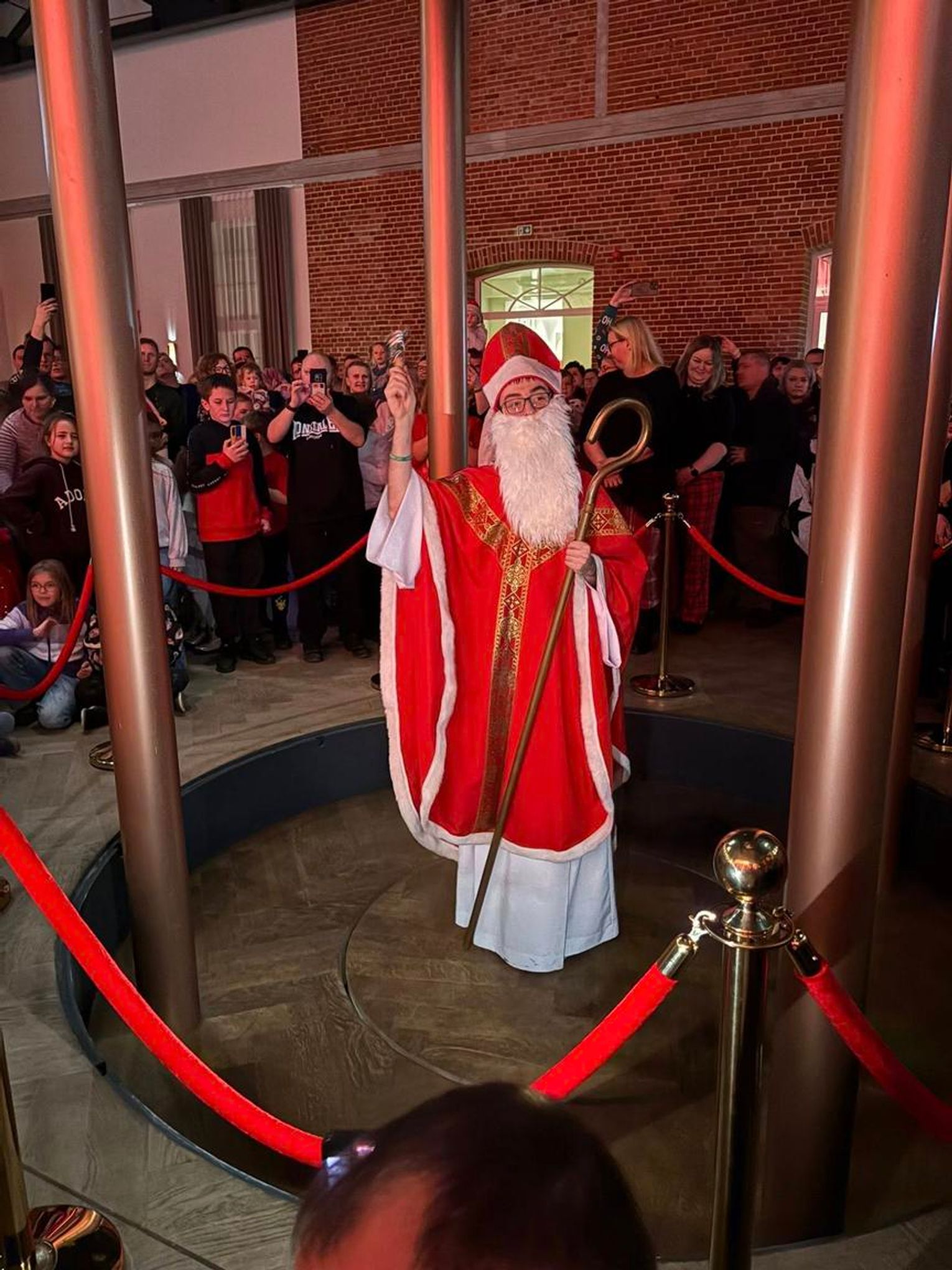 W przepięknie udekorowanej sali Hotelu Hugo elfy zostawiły dla nich paczki, a atmosfera bardzo szybko stała się niezwykle ciepła, głośna i pełna śmiechu. Dzieci podbiegały do Mikołaja jedno po drugim – jedne trochę zawstydzone, inne bardzo śmiałe – ale wszystkie z tym samym, charakterystycznym blaskiem w oczach. Mikołaj dla każdego znalazł chwilę: porozmawiał, wysłuchał marzeń, zapozował do zdjęć i oczywiście wręczył wymarzony prezent.