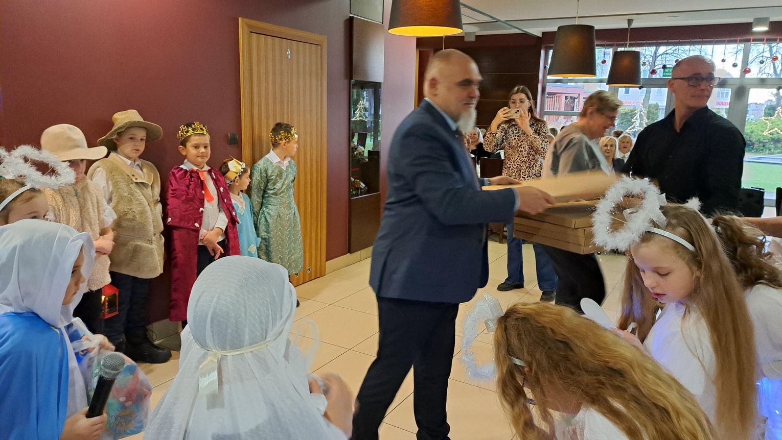 O wyjątkową, bożonarodzeniową oprawę wydarzenia zadbali najmłodsi. Uczniowie klas pierwszych z Publicznej Szkoły Podstawowej nr 1 zaprezentowali wzruszające jasełka, a dzieci z Publicznej Szkoły Podstawowej nr 15 wręczyły gościom drobne, symboliczne upominki, wprowadzając wszystkich w świąteczny nastrój.