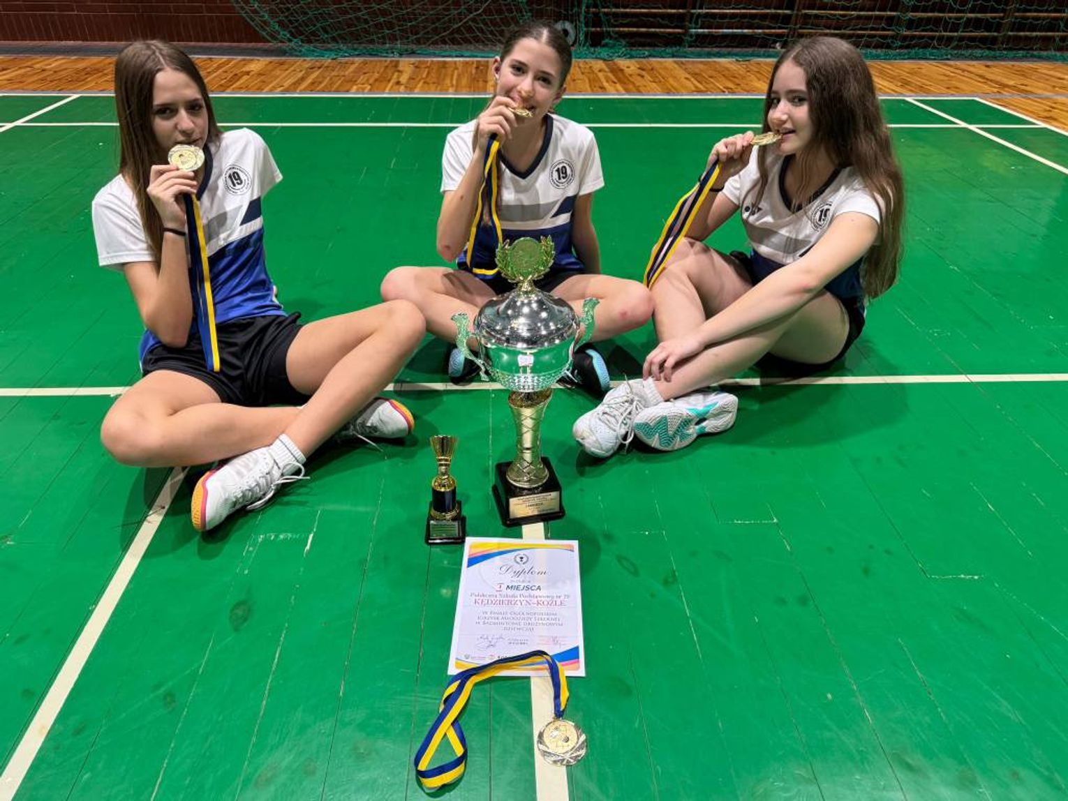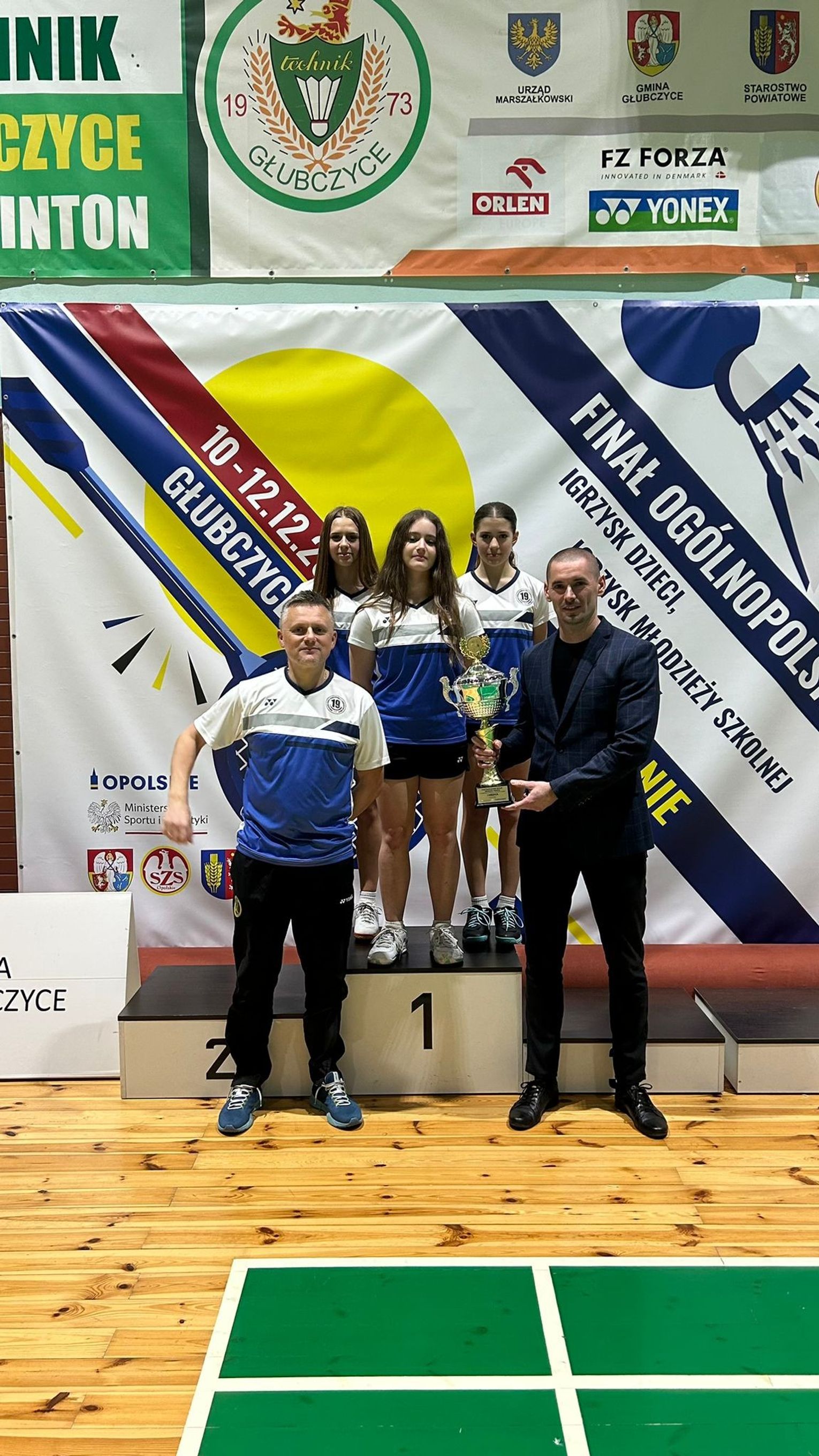 Znakomicie natomiast spisały się zespół dziewcząt w składzie: Lena Maślanka, Antonina Cybulska i Oliwia Żądło. Nasze badmintonistki zaprezentowały doskonałą formę, dominując w każdym meczu i wygrywając wszystkie spotkania, co pozwoliło im sięgnąć po złoty medal. To ogromny sukces i powód do dumy dla całej szkoły. Trenerami badmintonistów z PSP nr 19 są Izabela Gorczyńska-Maślanka i Krzysztof Maślanka.