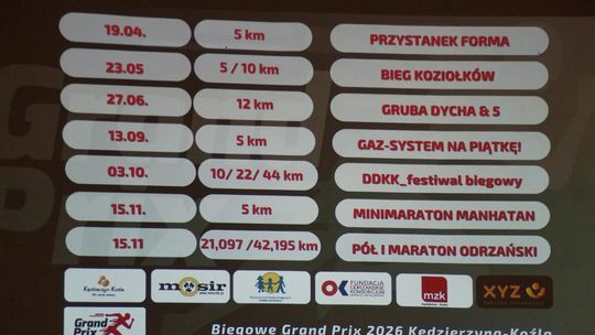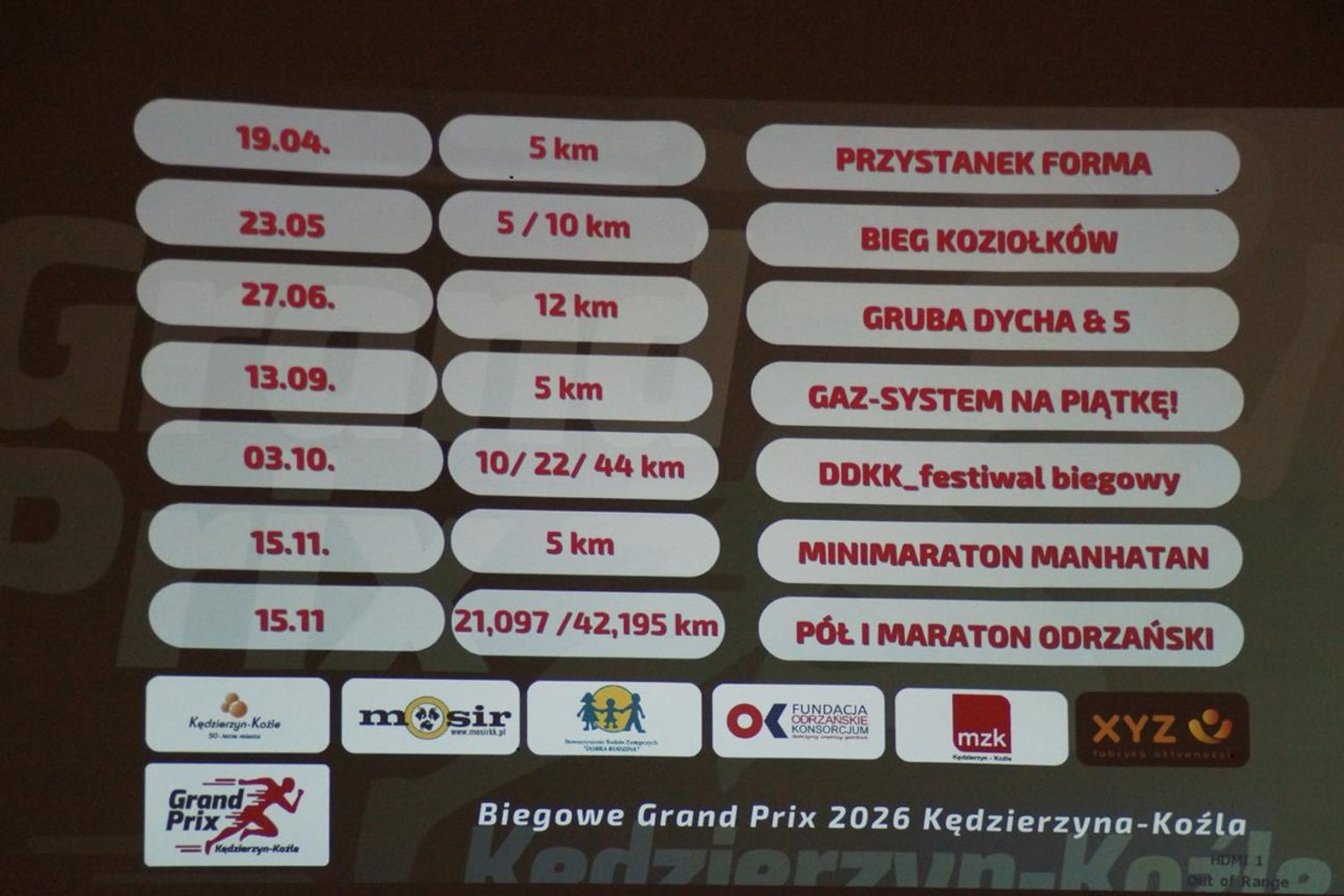 Do Biegowego Grand Prix Kędzierzyna-Koźla 2024, w którym rywalizacja trwała od kwietnia do listopada, zaliczały się wyniki uzyskane podczas następujących imprez: Minimaraton Manhatan (4,2 km), Przystanek Forma (5 km), Bieg Koziołków (5 lub 10 km), Gruba Dycha (6 lub 12 km), Dzień Dobry Kędzierzyn-Koźle (10, 22 lub 44 km) oraz Maraton i Półmaraton Odrzański (42,195 lub 21,097 km). Wystartowały w nich 902 osoby, które przebiegły łącznie blisko 30000 kilometrów. Za miejsca zajęte w poszczególnych zawodach uczestnicy otrzymywali punkty, a ich suma zdecydowała o końcowej klasyfikacji. Aby znaleźć się w rankingu Grand Prix 2025, trzeba było ukończyć pięć z sześciu biegów. Natomiast aby otrzymać tytuł Super Grand Prix, należało ukończyć sześć imprez, w tym maraton indywidualnie. Sklasyfikowano kilkudziesięciu uczestników, a wyników osiągniętych w jednym rankingu nie nagradzano w drugim.
