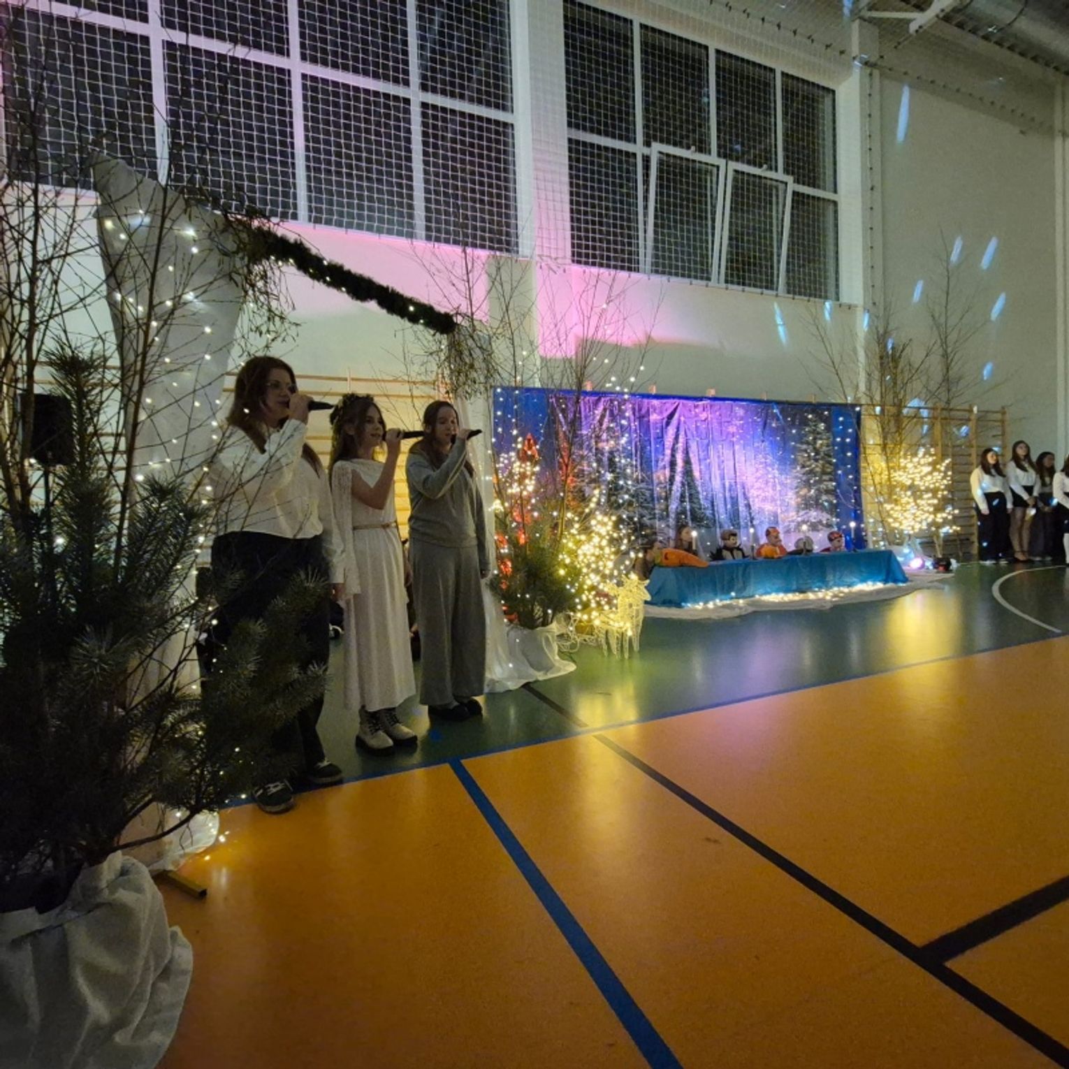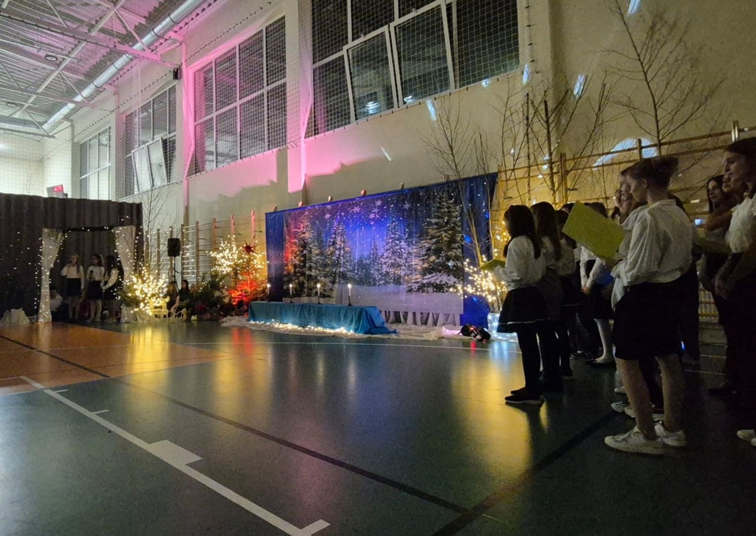 Najważniejszym punktem wieczoru był występ przygotowany przez uczniów. Młodzi artyści zaprezentowali program, który wprowadził publiczność w świąteczny nastrój. Starannie przygotowane role, muzyka i scenografia stworzyły wyjątkowy klimat. To właśnie ta część spotkania sprawiła, że sala na chwilę zamieniła się w miejsce, gdzie każdy mógł poczuć prawdziwą bliskość i wspólnotę.