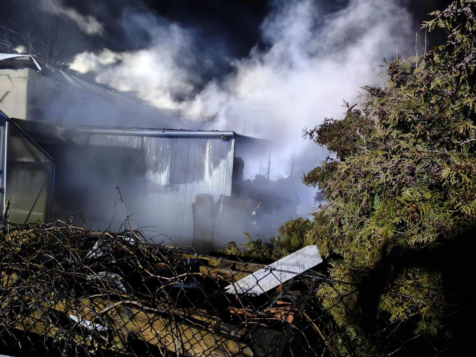 Pożar garażu w Dziergowicach. Ogień stwarzał zagrożenie dla sąsiedniego budynku gospodarczego