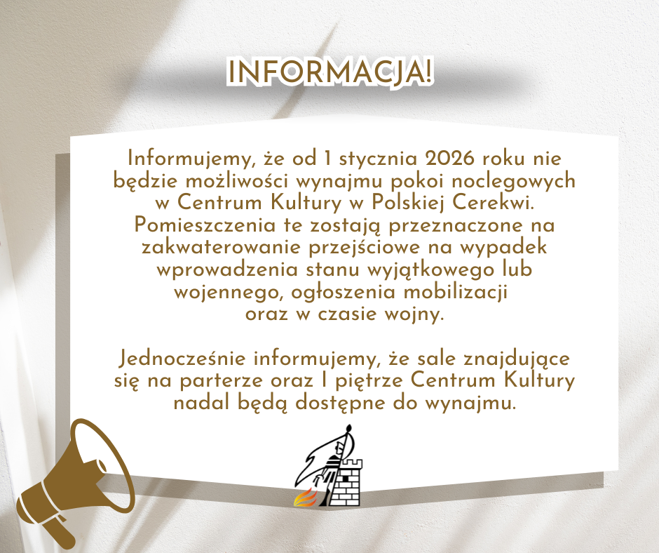 Co z resztą budynku? Sale znajdujące się na parterze i pierwszym piętrze nadal będą dostępne do wynajmu - zarówno na wydarzenia kulturalne, jak i spotkania lokalne. Zmiana dotyczy wyłącznie części noclegowej.