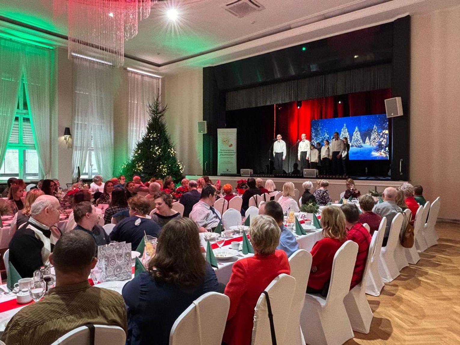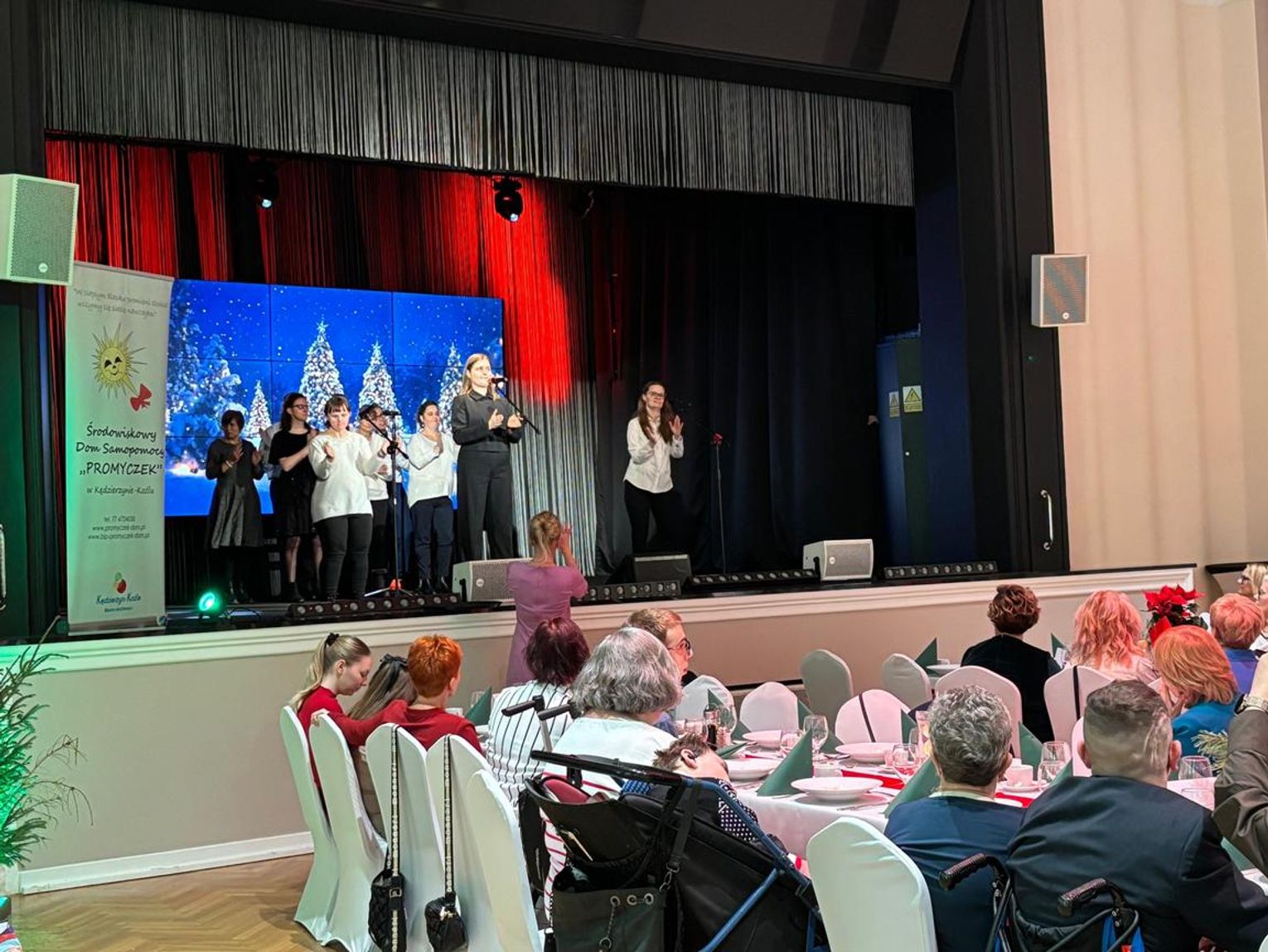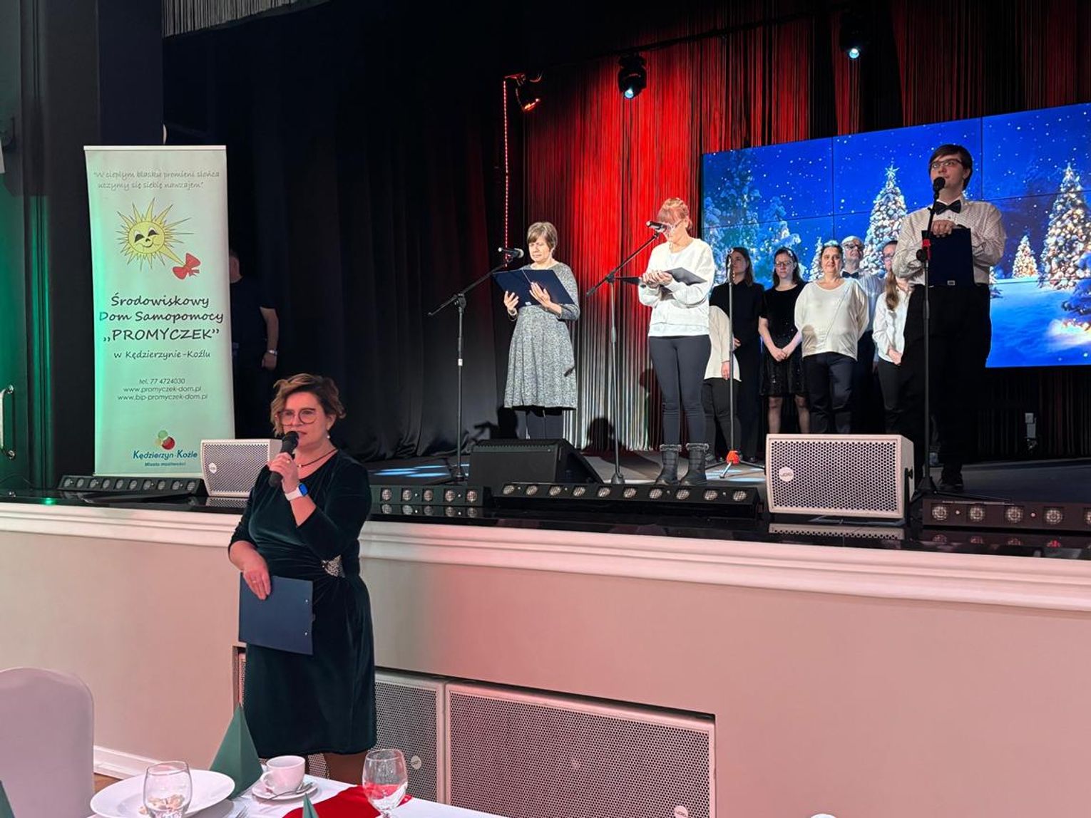 W ciepłej, świątecznej oprawie Hotelu „Solidaris” na scenie pojawili się podopieczni placówki, wnosząc wiele radości i wzruszeń. Ten nastrój dopełniały szczere słowa, życzliwość oraz uśmiechy – widoczne zarówno wśród gospodarzy spotkania, jak i wśród licznie zgromadzonych gości. Wśród nich obecna była również skarbnik miasta Joanna Hariasz oraz przedstawiciele zaprzyjaźnionych instytucji, którzy swoją obecnością podkreślili, jak ważna jest wspólnota i wzajemne wsparcie.