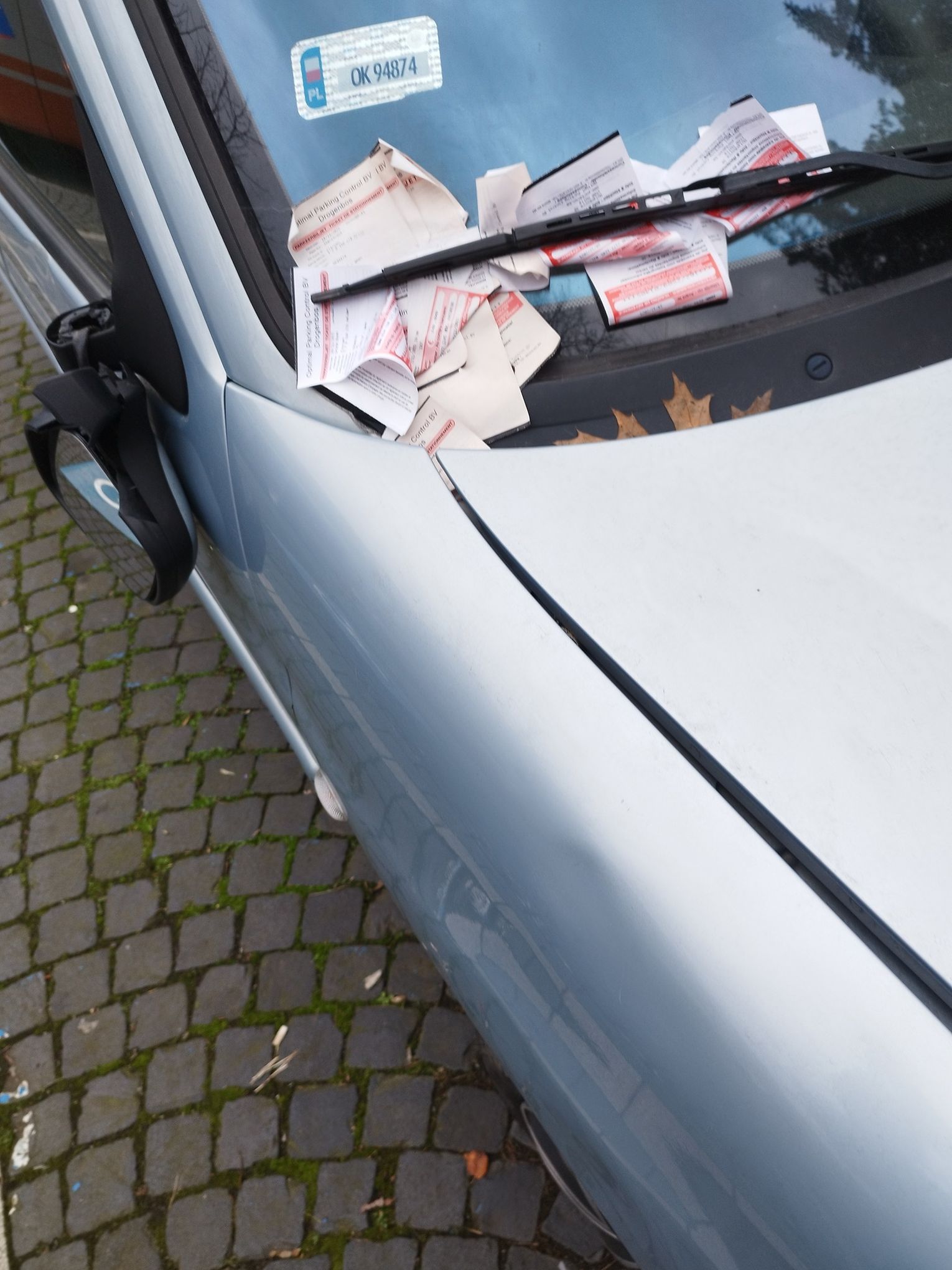 Na zdjęciach widać auto stojące na brukowanym parkingu, a jego szyba jest obłożona belgijskimi mandatami. Nie wiadomo, czy właściciel pojazdu przebywa w Belgii, ani czy ma świadomość sytuacji, która wzbudziła zainteresowanie tamtejszej społeczności.