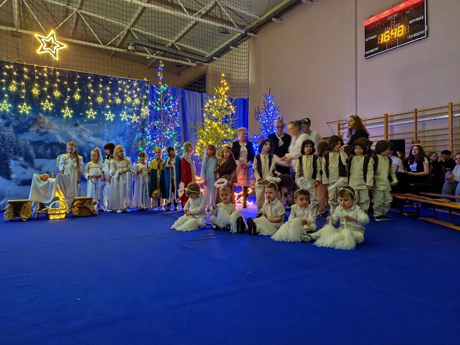 Mali artyści z ogromnym zaangażowaniem wcielili się w role bohaterów betlejemskiej opowieści. Przedstawienie pełne muzyki, śpiewu i tańca wprowadziło wszystkich w prawdziwie świąteczny nastrój. Z entuzjazmem odgrywane sceny narodzin Jezusa, radosne głosy i szczere uśmiechy przedszkolaków poruszyły serca zebranych, wywołując wiele wzruszeń. Ważnym elementem spotkania był także kiermasz bożonarodzeniowy. Uczestnicy mogli nabyć piękne ozdoby przygotowane przez rodziców oraz skosztować i kupić pyszne wypieki wykonane przez pracowników przedszkola.