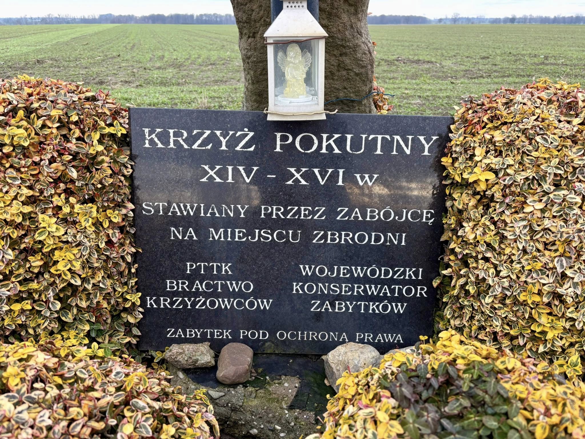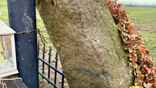 - Przejeżdżając często drogą numer 40 z Kędzierzyna-Koźla w kierunku autostrady, widziałem krzyż znajdujący się tuż przy drodze, położony między skrzyżowaniem dróg na Chechło-Rudziniec i Łanami – opisuje Sławomir Wilkowski, twórca kanału historycznego Bunker King. - Wiedziałem że przy tym krzyżu jest kamień który kiedyś miał być krzyżem pokutnym, a przynajmniej tak wynika z opisu na tablicy znajdującej się w tym miejscu. Kilka dni temu postanowiłem się zatrzymać by zrobić zdjęcia. Co ciekawe na kamieniu widać ślady rycia i być może są to jakieś znaki, litery, bądź też rysunek. Może komuś uda się to odczytać?