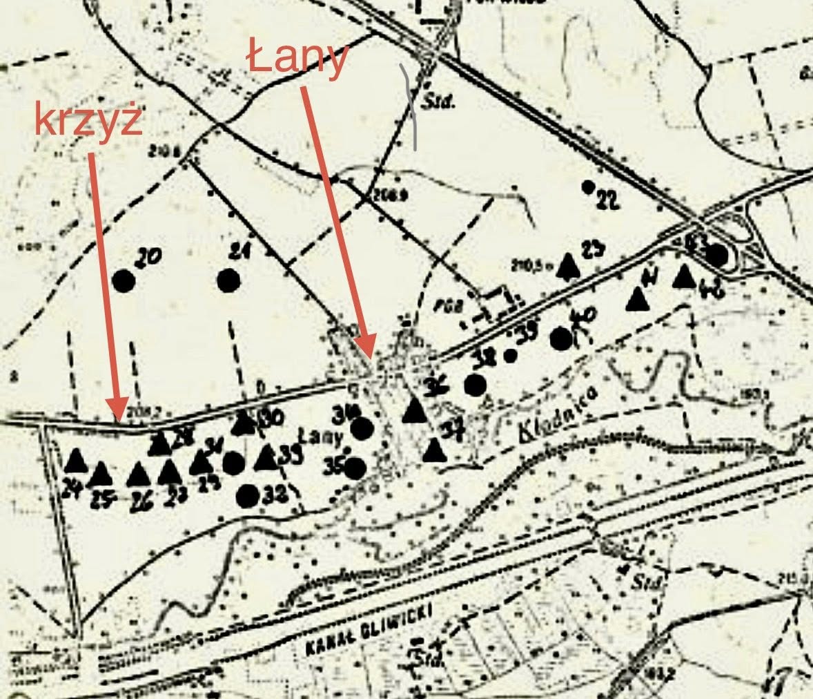 Dziś na mapie świetnie widać zaznaczone stanowiska archeologiczne położone tuż przy prawej stronie drogi, patrząc od strony Ujazdu w kierunku Łanów i autostrady.