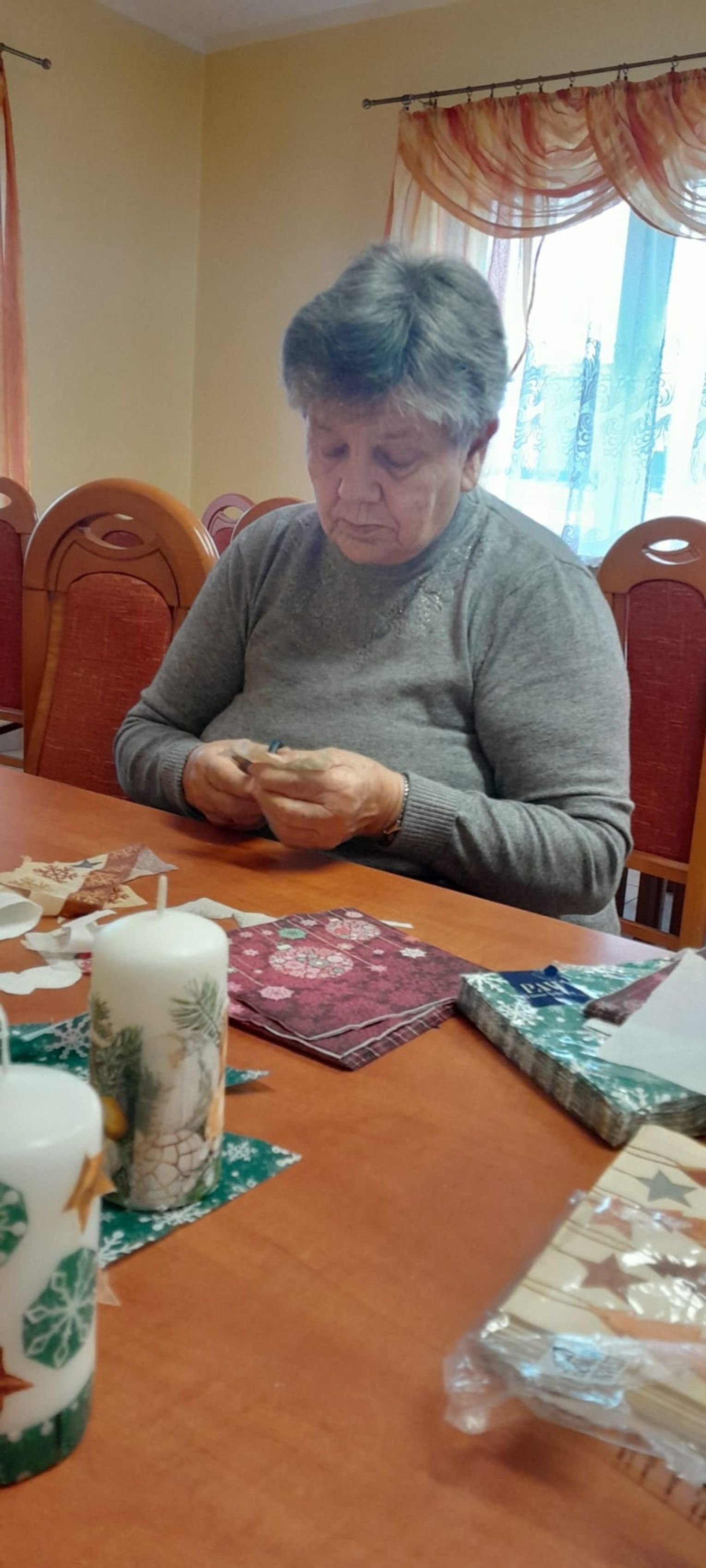 Seniorki przygotowywały własne kompozycje, korzystając z naturalnych materiałów, ozdób i form, które pozwalały stworzyć zarówno klasyczne, jak i bardziej nowoczesne dekoracje. Każdy projekt był inny, a gotowe świeczniki i świece trafią teraz na świąteczne stoły lub zostaną podarowane bliskim.
