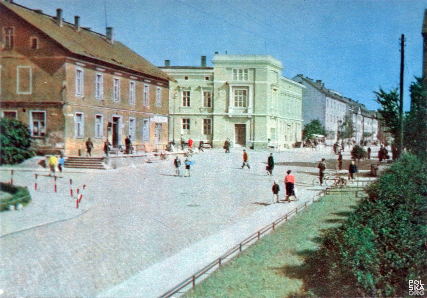 Dziś w jego miejscu znajduje się rondo oraz centrum przesiadkowe. Tuż obok - w narożnej piętrowej kamienicy - prosperowała jedyna w mieście apteka.