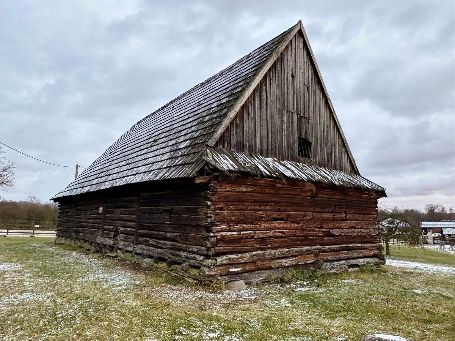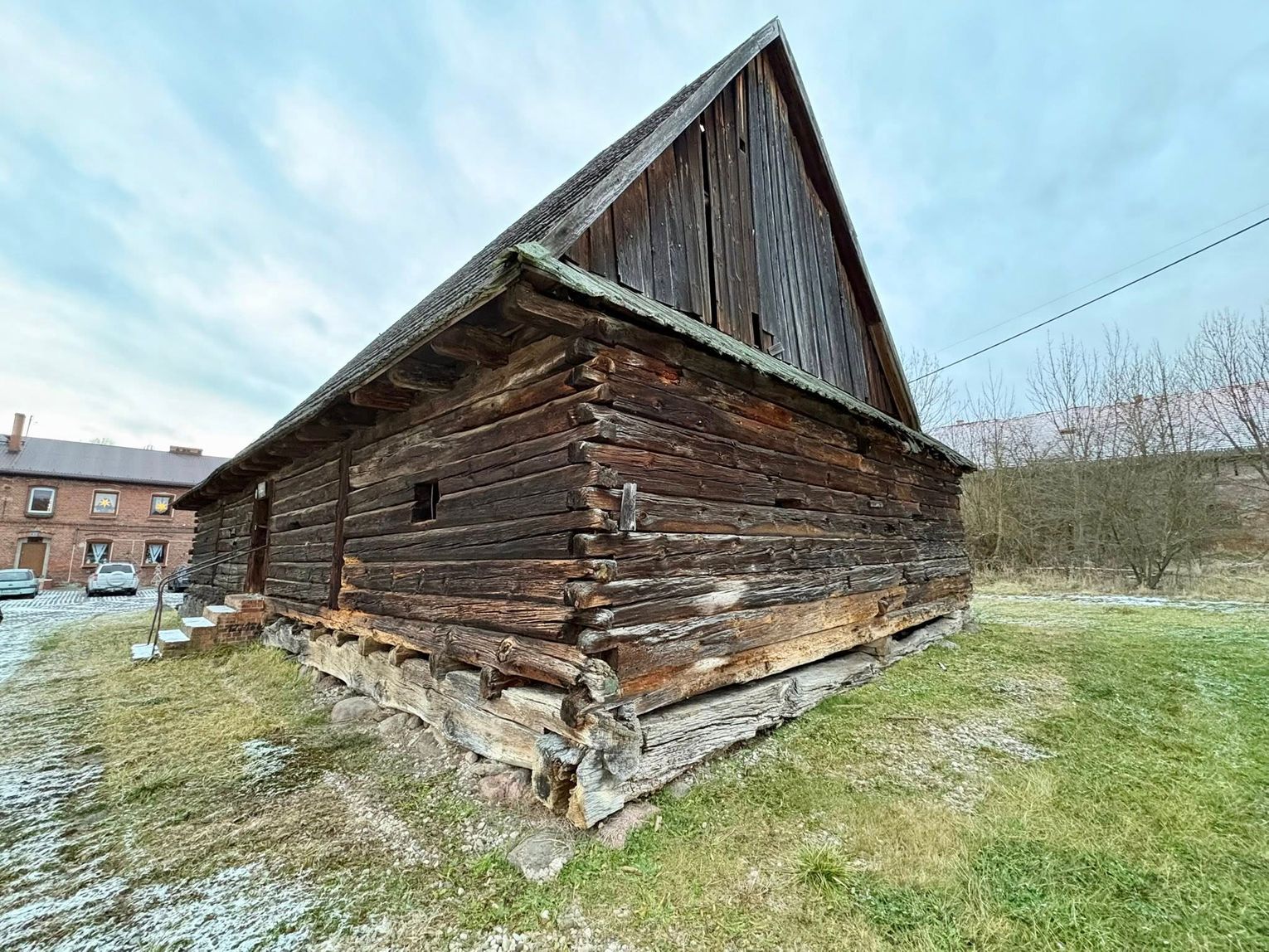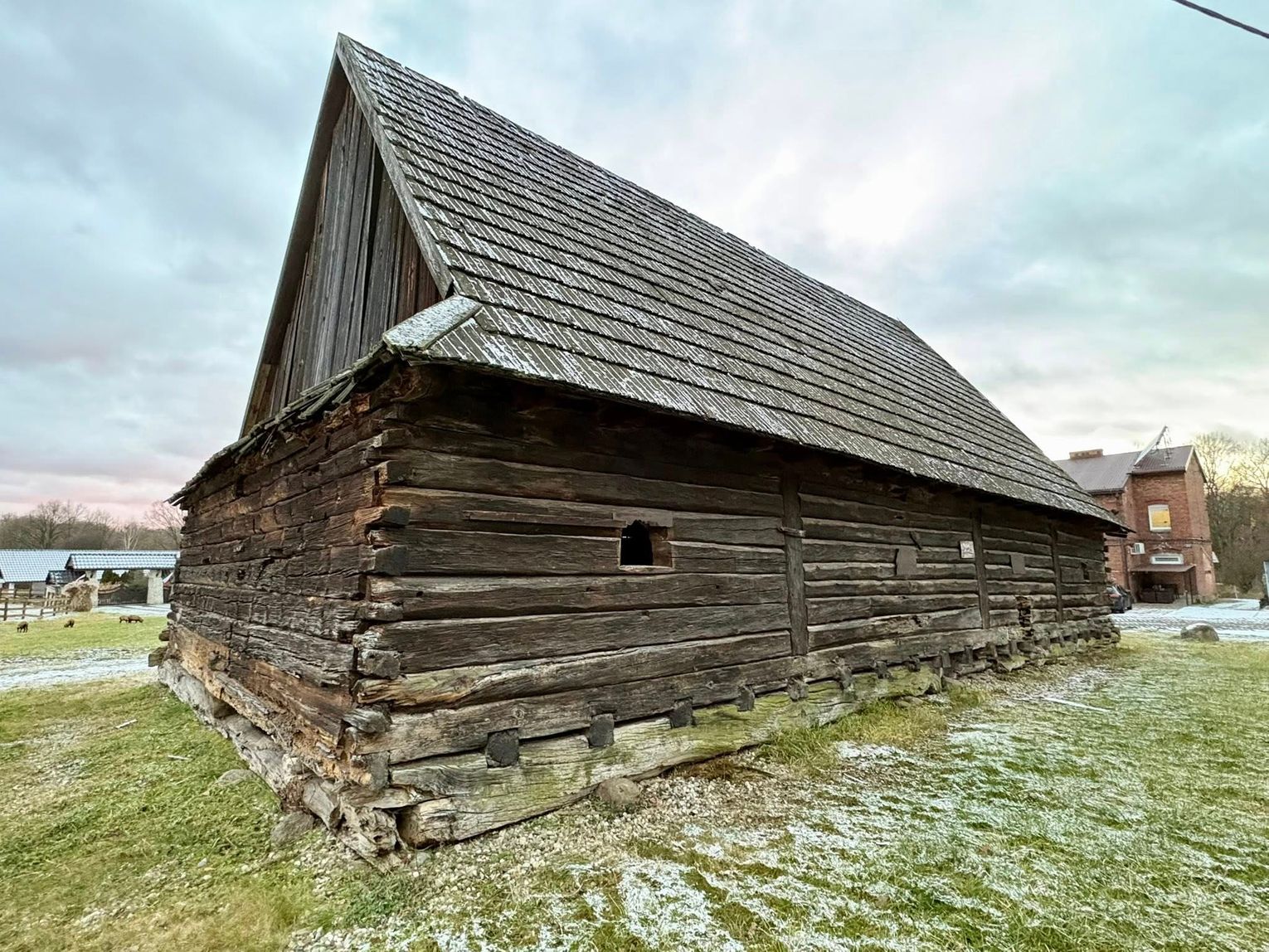 W elewacji pd. znajduje się otwór wejściowy poprzedzony murowanymi schodami oraz niewielkie otwory okienne, tzw. okna szczelinowe, wycięte w grubości belek zrębu. Analogiczne otwory szczelinowe występują w pozostałych elewacjach. Wnętrze obiektu składa się z kondygnacji przyziemnej oraz dwóch kondygnacji w obrębie dachu. Przestrzeń przyziemia podzielona jest za pomocą rozmieszczonego na osi rzędu słupów podtrzymujących konstrukcję stropu belkowego. Przestrzeń środkowej kondygnacji podzielona jest z kolei za pomocą dwóch rzędów słupów, stanowiących zarazem ramy podłużne konstrukcji dachu. Poszczególne kondygnacje skomunikowane są za pomocą jednobiegowej klatki schodowej. Obiekt jest dostępny i można go oglądać” - czytamy na stronie Narodowego Instytutu Dziedzictwa.