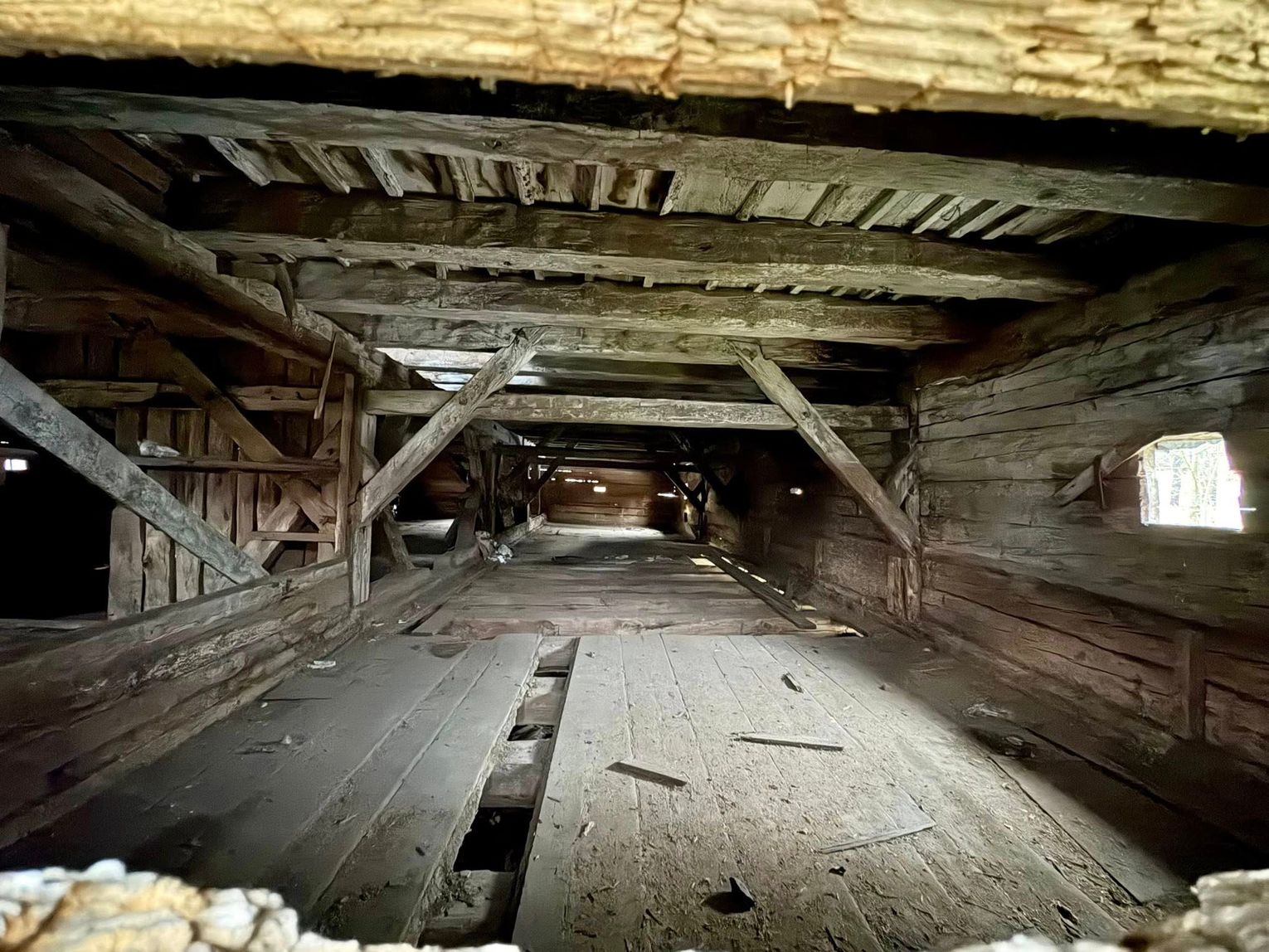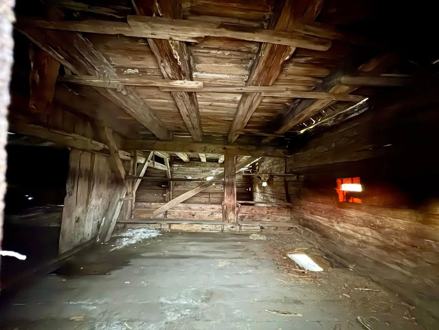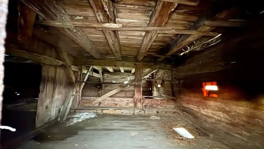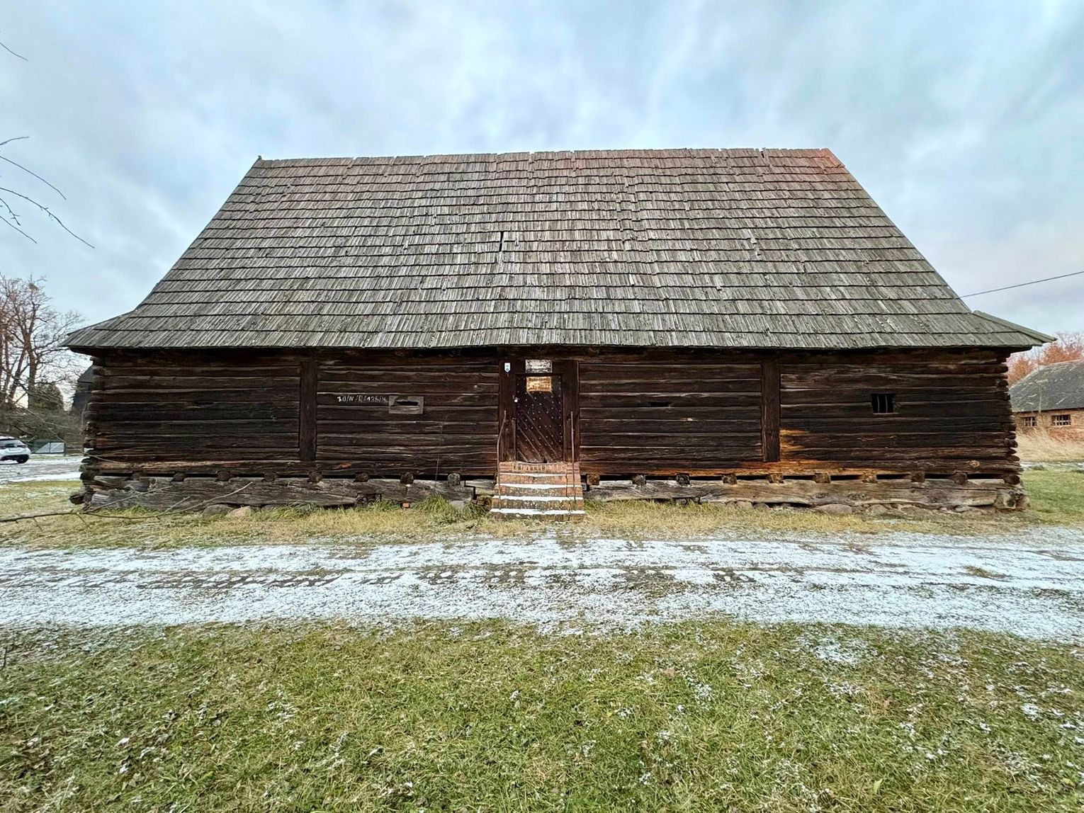 W elewacji pd. znajduje się otwór wejściowy poprzedzony murowanymi schodami oraz niewielkie otwory okienne, tzw. okna szczelinowe, wycięte w grubości belek zrębu. Analogiczne otwory szczelinowe występują w pozostałych elewacjach. Wnętrze obiektu składa się z kondygnacji przyziemnej oraz dwóch kondygnacji w obrębie dachu. Przestrzeń przyziemia podzielona jest za pomocą rozmieszczonego na osi rzędu słupów podtrzymujących konstrukcję stropu belkowego. Przestrzeń środkowej kondygnacji podzielona jest z kolei za pomocą dwóch rzędów słupów, stanowiących zarazem ramy podłużne konstrukcji dachu. Poszczególne kondygnacje skomunikowane są za pomocą jednobiegowej klatki schodowej. Obiekt jest dostępny i można go oglądać” - czytamy na stronie Narodowego Instytutu Dziedzictwa.