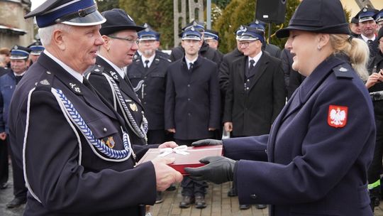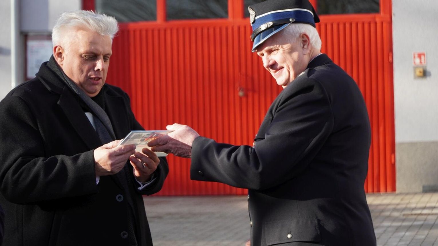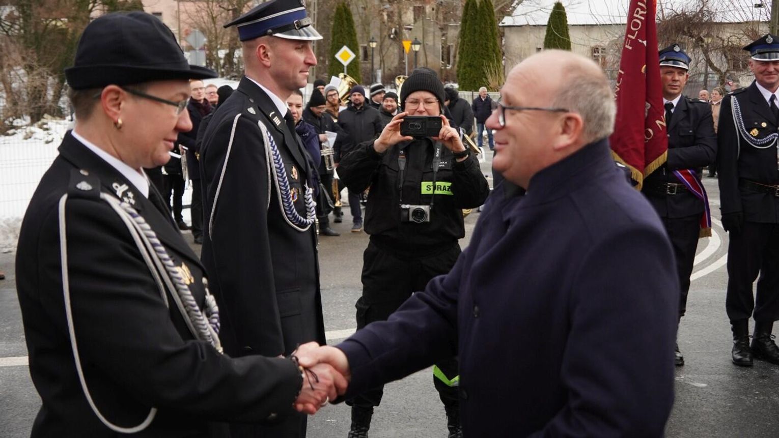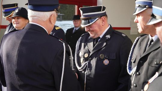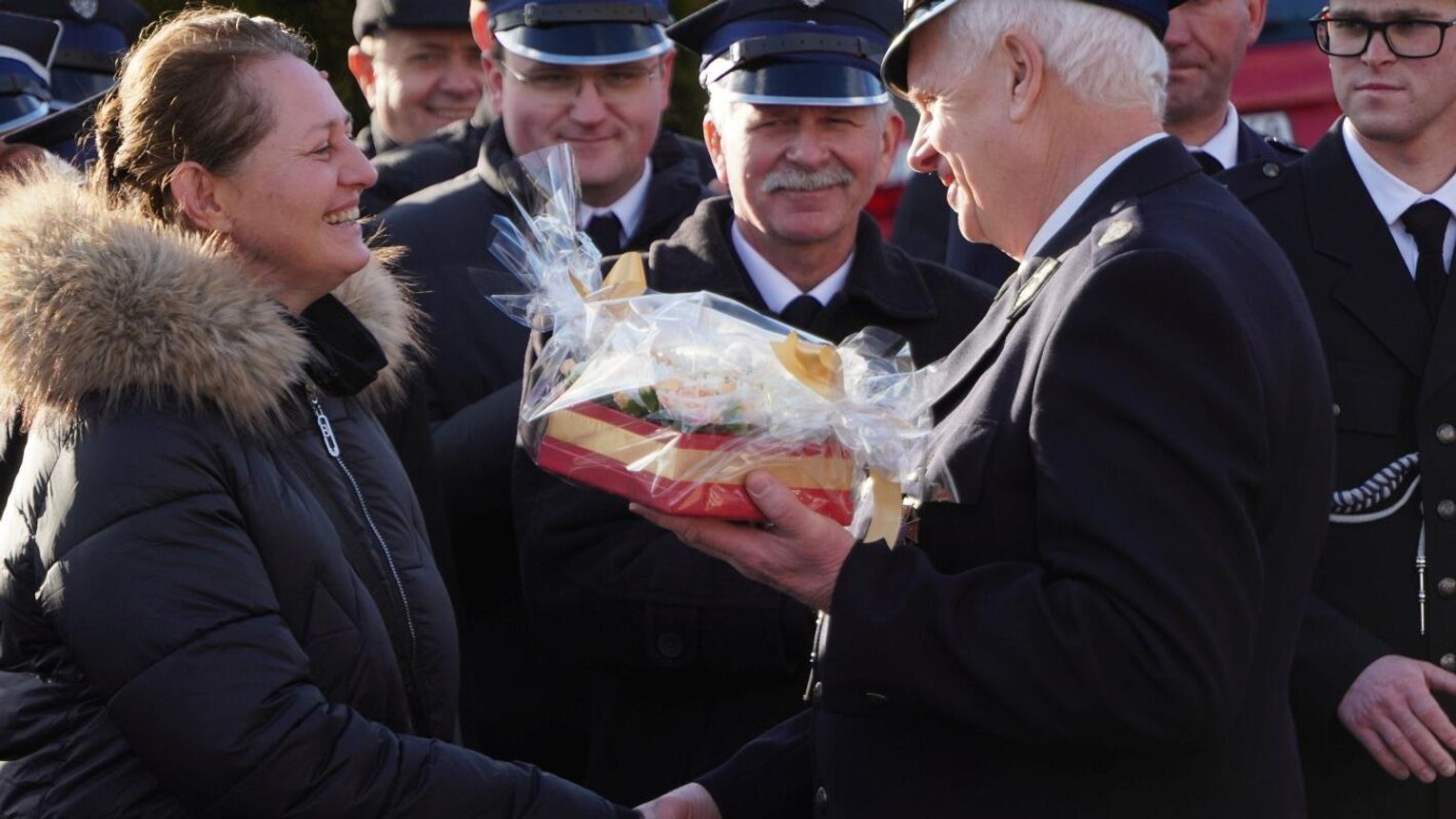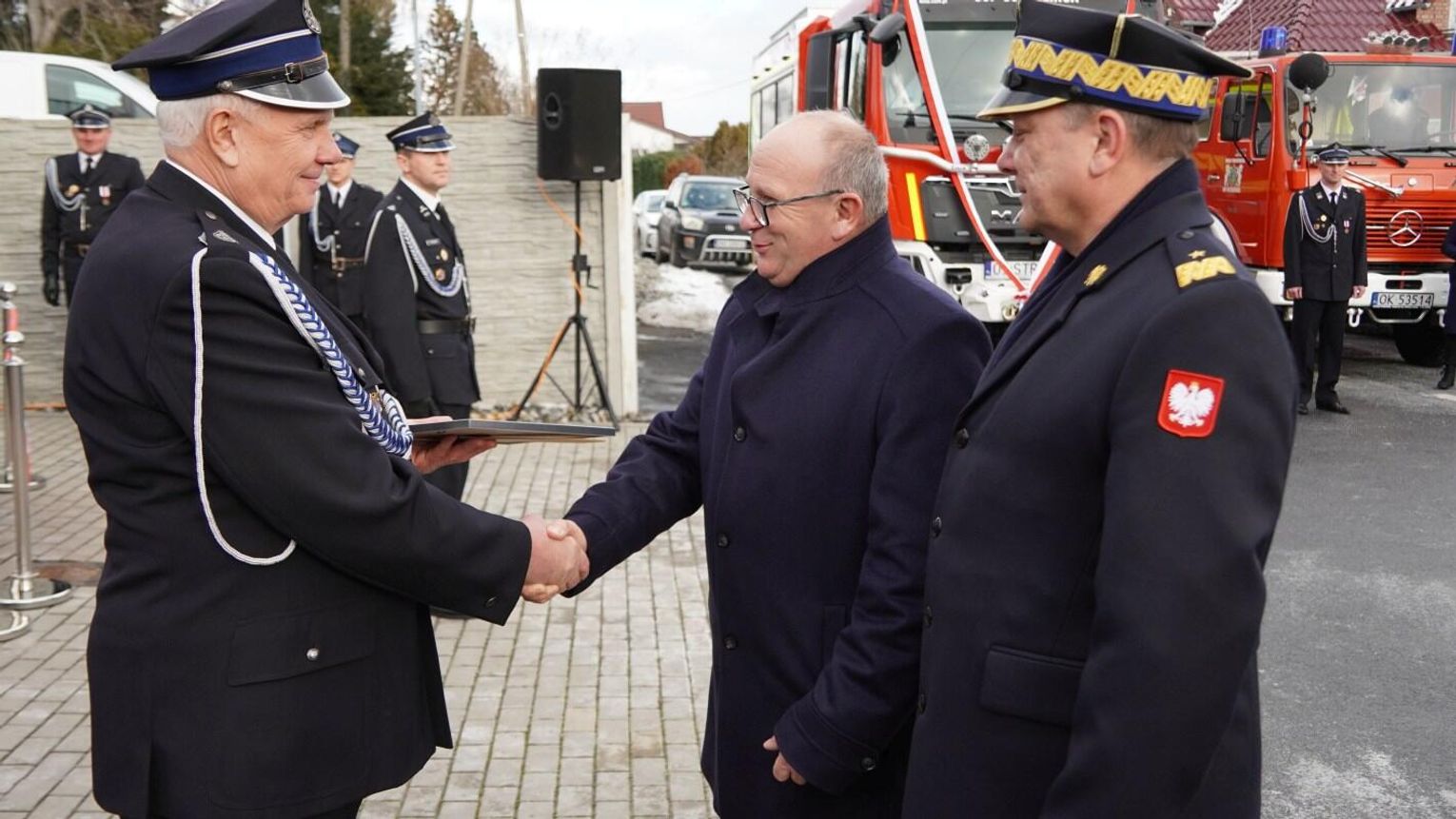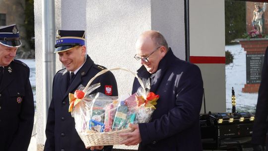 Wójt gminy Pawłowiczki Jerzy Treffon podkreślił, że zależało mu, aby w tej części uroczystości szczególnie wyróżnić osoby i podmioty, dzięki którym możliwe było sfinansowanie zadania wartego niemal 1,3 mln zł. Styczniowe spotkanie miało więc charakter oficjalnego przekazania pojazdu, domknięcia całego procesu oraz wyrażenia wdzięczności wszystkim zaangażowanym w pozyskanie nowego wozu dla jednostki.