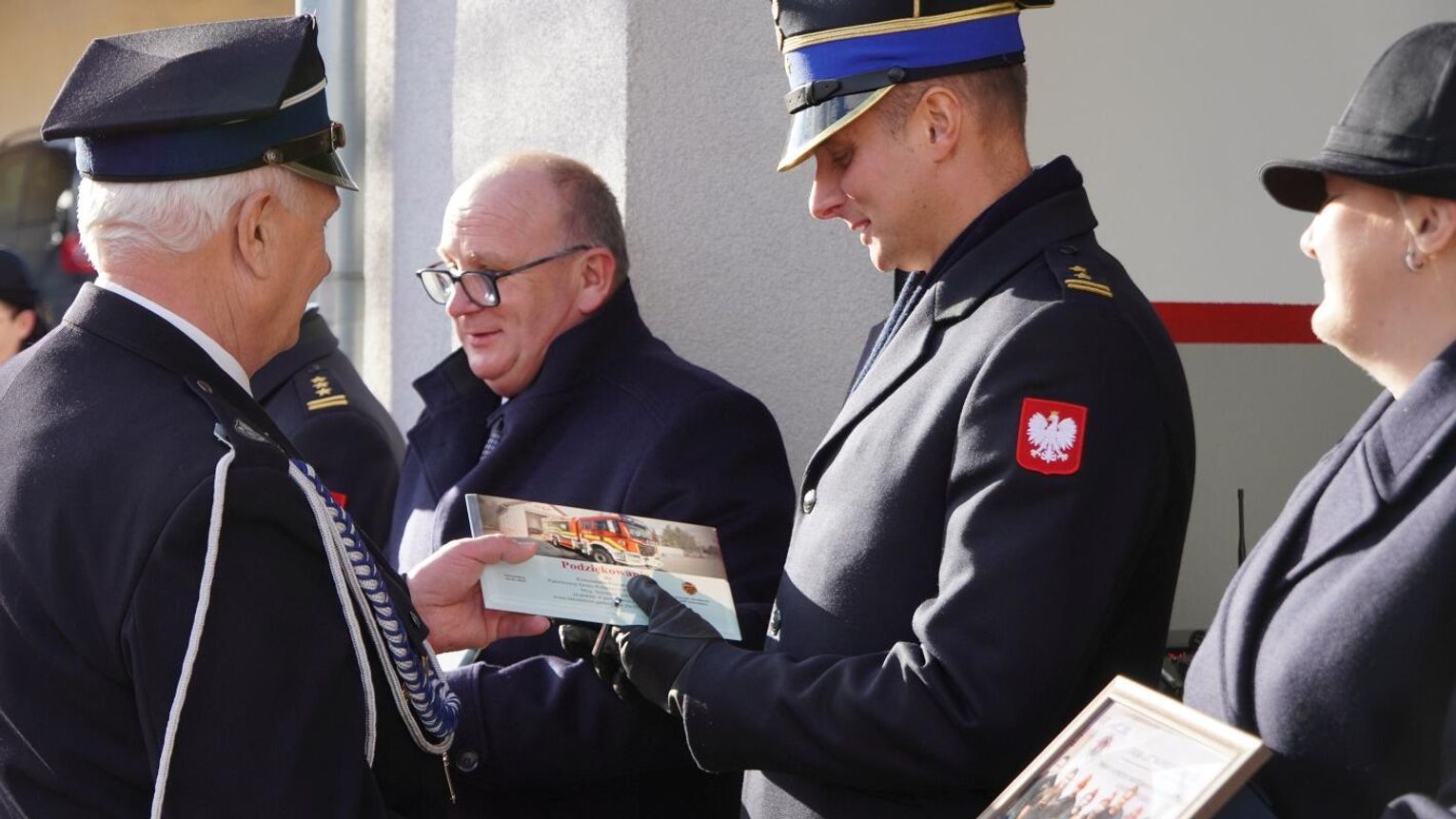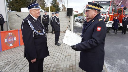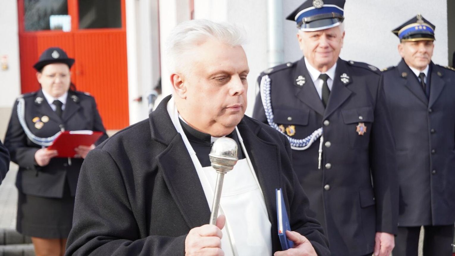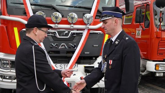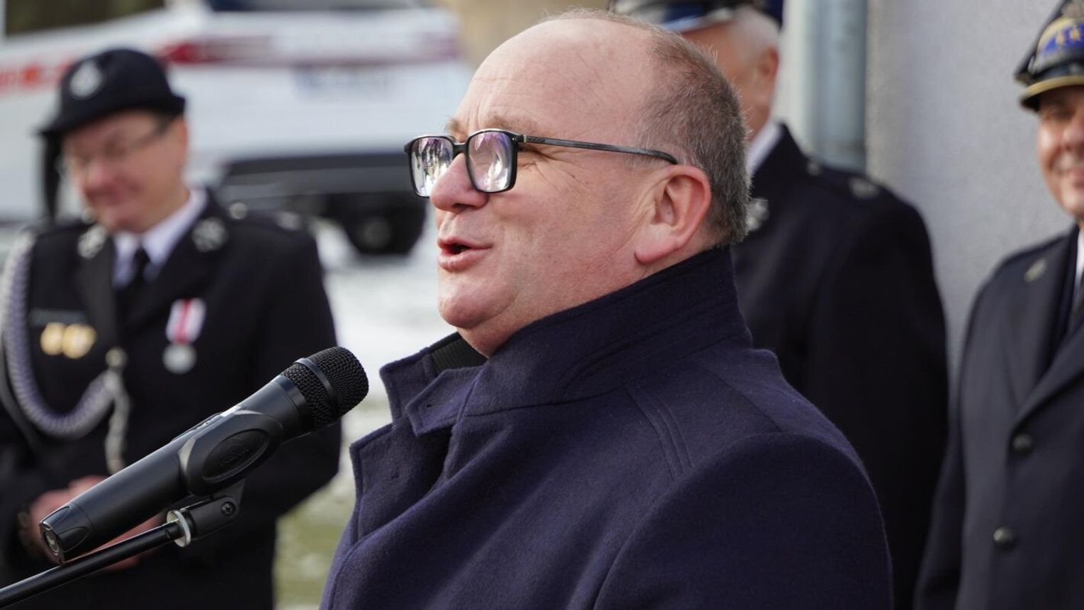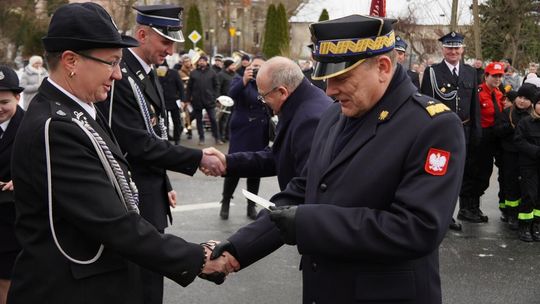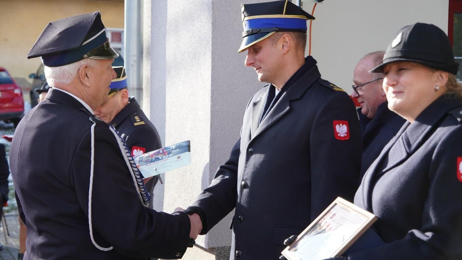Wójt gminy Pawłowiczki Jerzy Treffon podkreślił, że zależało mu, aby w tej części uroczystości szczególnie wyróżnić osoby i podmioty, dzięki którym możliwe było sfinansowanie zadania wartego niemal 1,3 mln zł. Styczniowe spotkanie miało więc charakter oficjalnego przekazania pojazdu, domknięcia całego procesu oraz wyrażenia wdzięczności wszystkim zaangażowanym w pozyskanie nowego wozu dla jednostki.