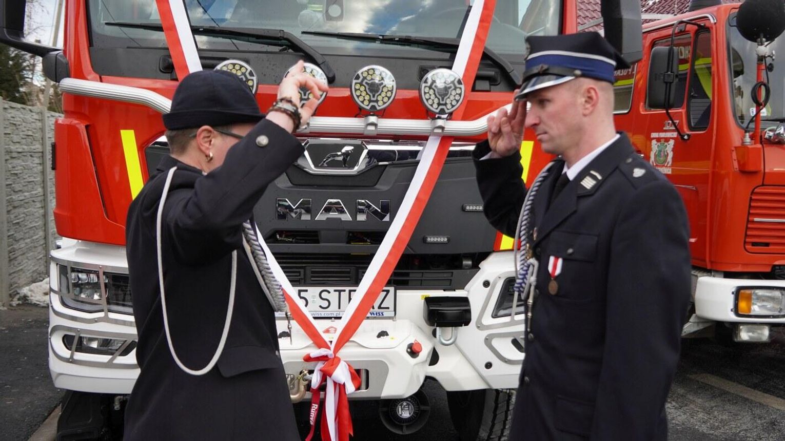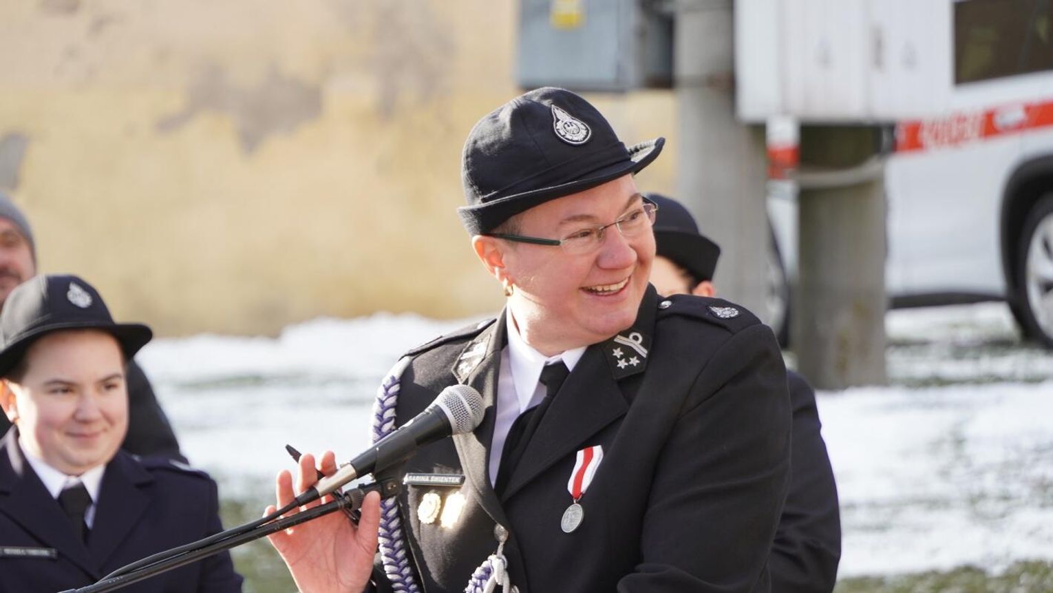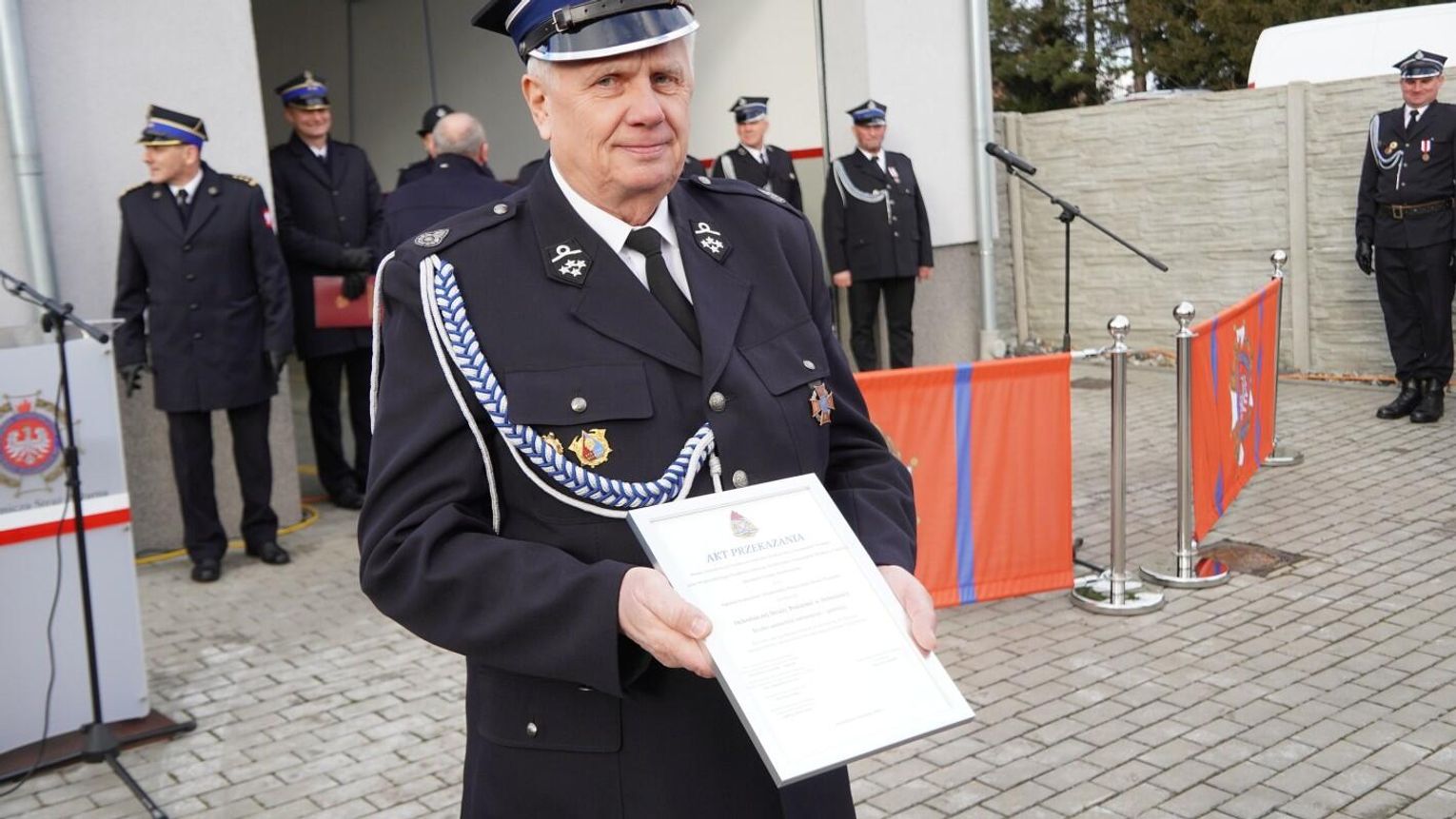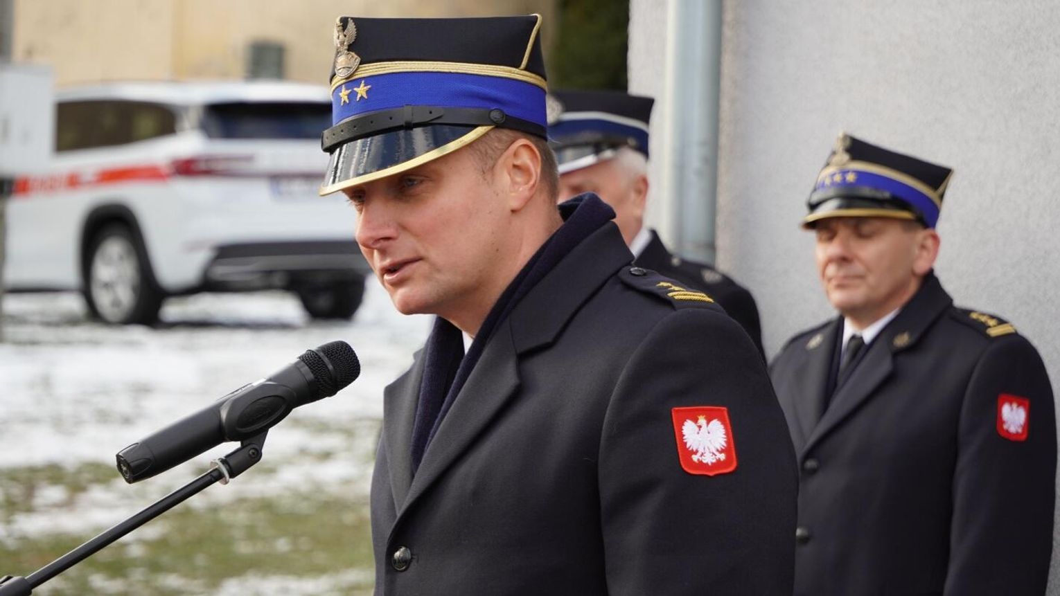 Wójt gminy Pawłowiczki Jerzy Treffon podkreślił, że zależało mu, aby w tej części uroczystości szczególnie wyróżnić osoby i podmioty, dzięki którym możliwe było sfinansowanie zadania wartego niemal 1,3 mln zł. Styczniowe spotkanie miało więc charakter oficjalnego przekazania pojazdu, domknięcia całego procesu oraz wyrażenia wdzięczności wszystkim zaangażowanym w pozyskanie nowego wozu dla jednostki.